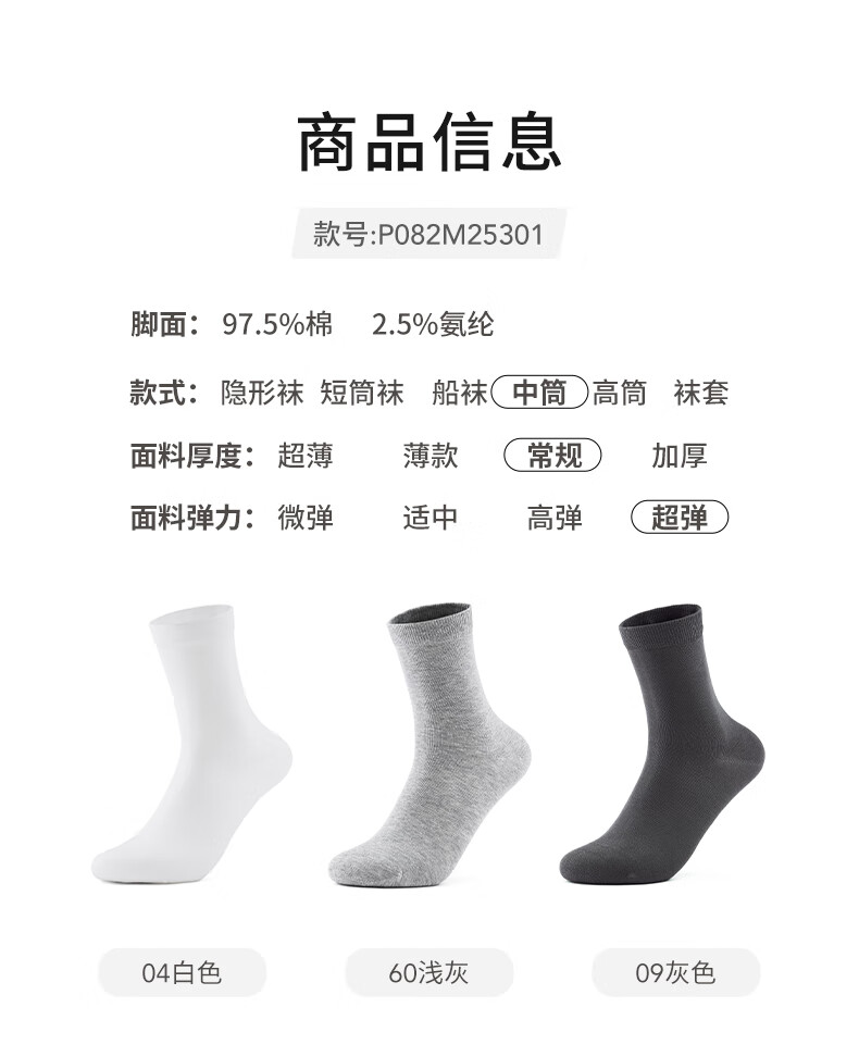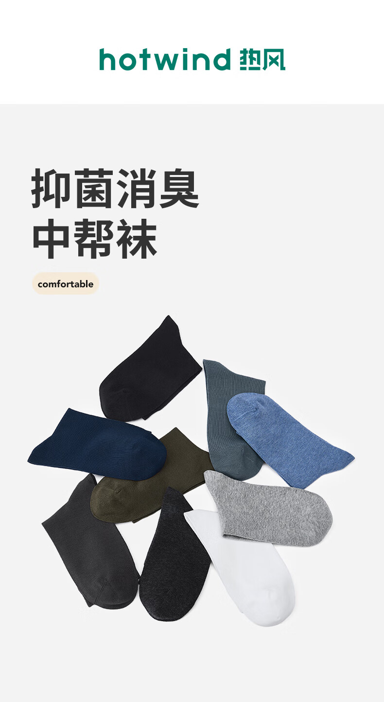 热风男士中筒袜2025年秋季新款抑菌消臭中帮袜纯色弹力舒适棉袜子 52深灰 1双 均码