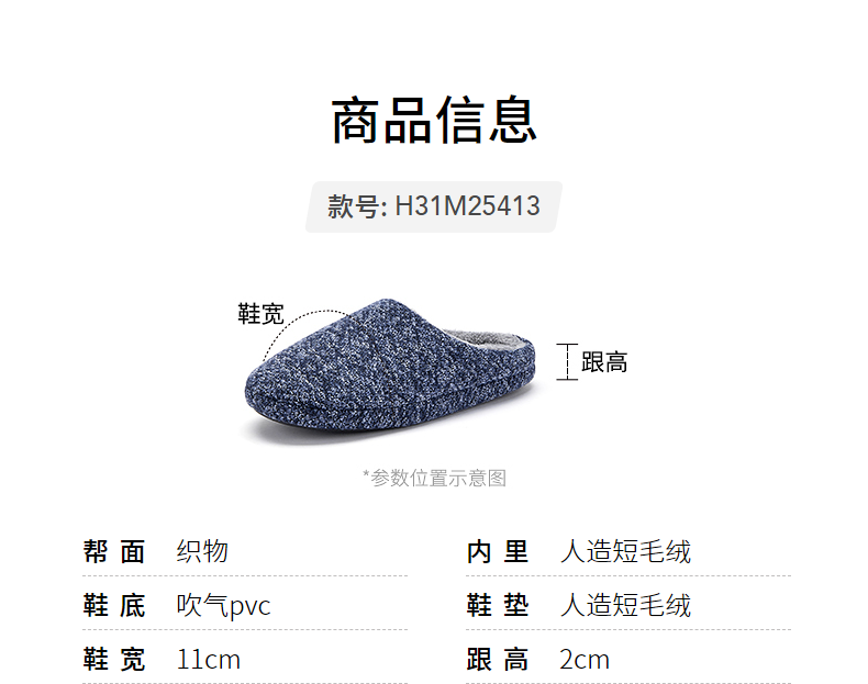 热风男鞋2025年冬季新款男士时尚家居鞋休闲鞋子舒适百搭包头棉鞋 06兰色 40-41 40-41