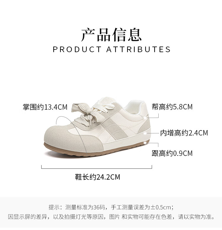 大东休闲德训鞋2025夏季新款可爱时尚百搭潮流圆头平底女鞋0121 米色 37