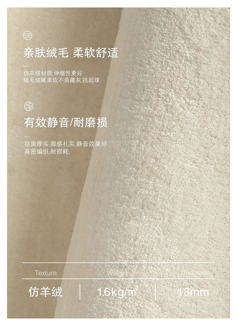 KAYE床边地毯卧室房间客厅日式侘寂风沙发仿羊绒飘窗垫长条衣帽间地毯 FYR-极简T1 50x140 cm