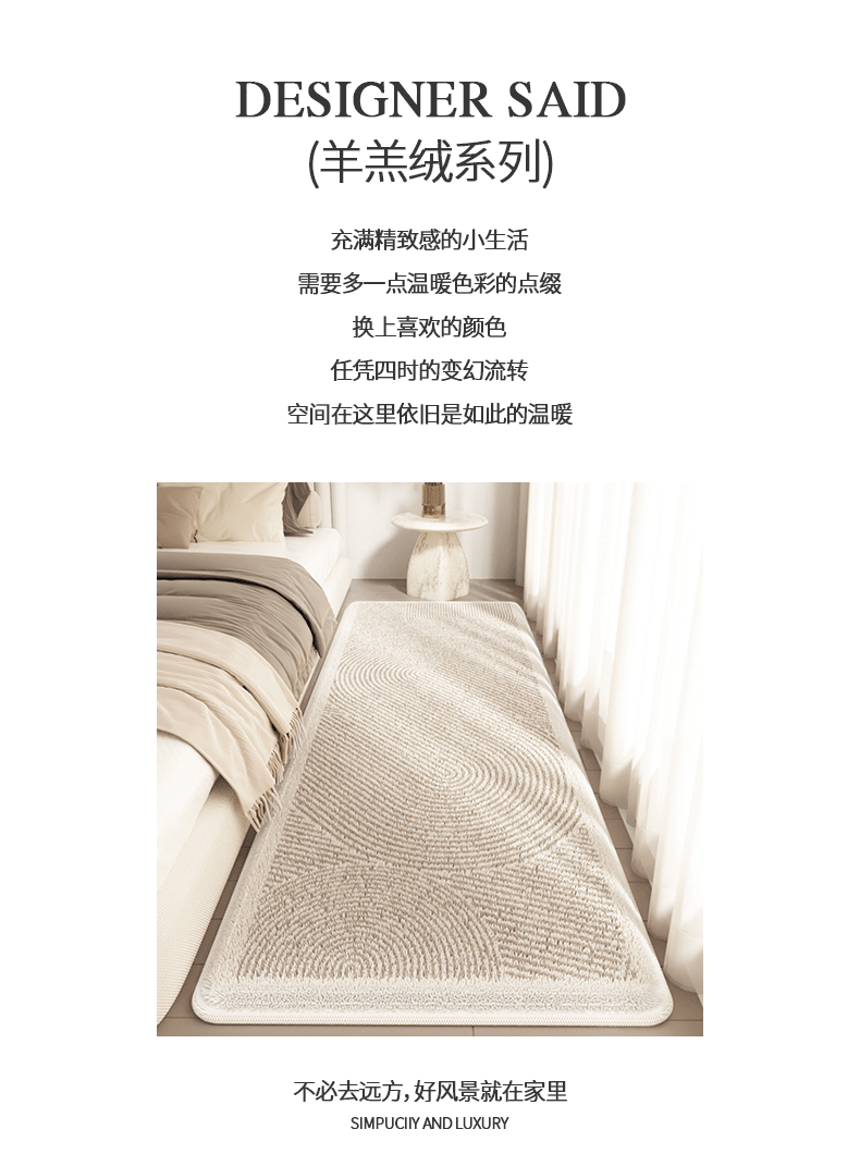 尚锐卧室床边毯客厅加厚地毯ins地毯高级轻奢简约防水防污易打理 慕沙 80*200[隔凉生暖 柔软亲肤]
