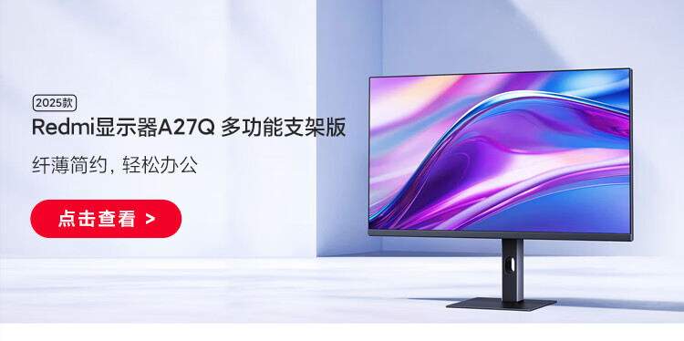 小米Redmi 27英寸2K显示器 A27Q 2025款 IPS技术 100Hz 低蓝光爱眼 广色域电脑办公显示器