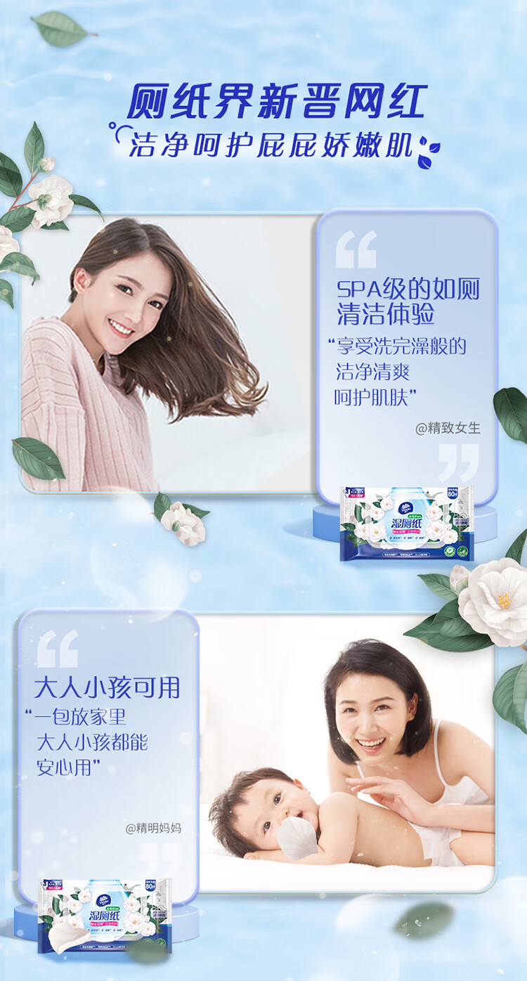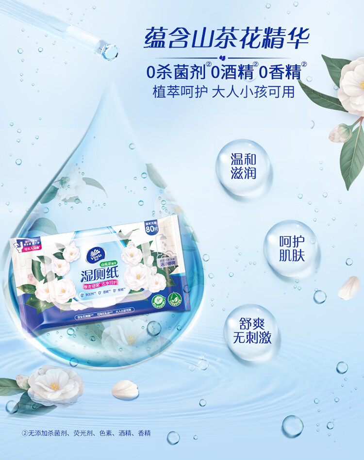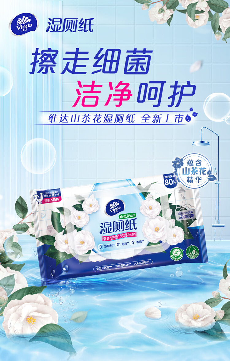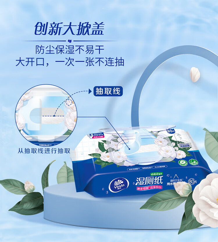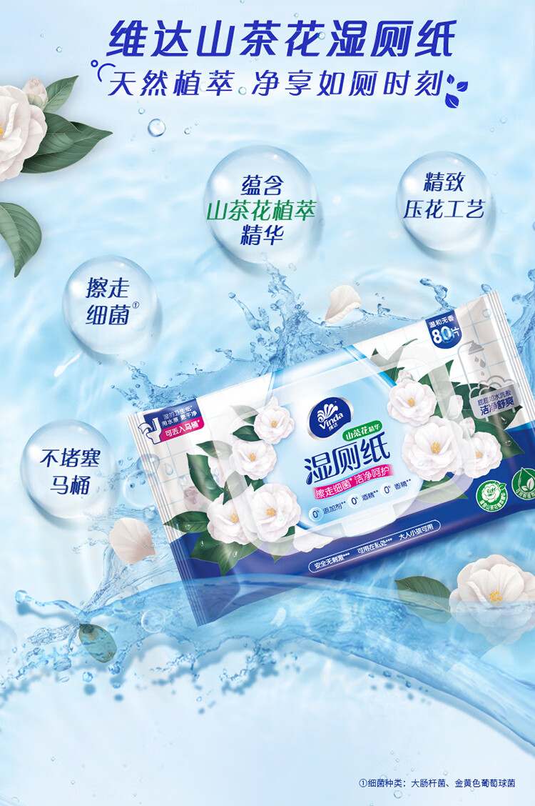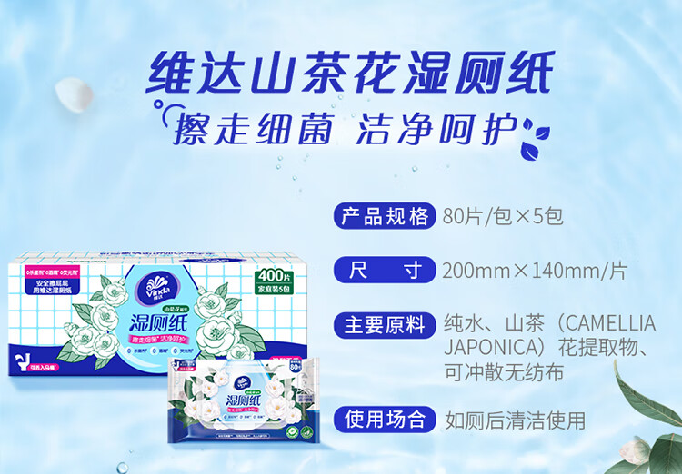 维达(Vinda)湿厕纸 家庭装80片*5包 山茶花精华 加厚洁厕湿纸巾湿纸巾可冲散
