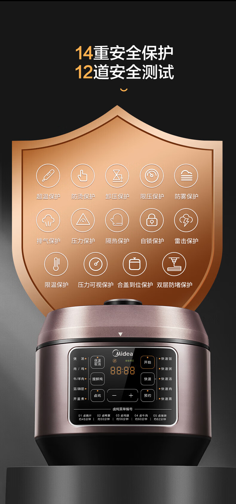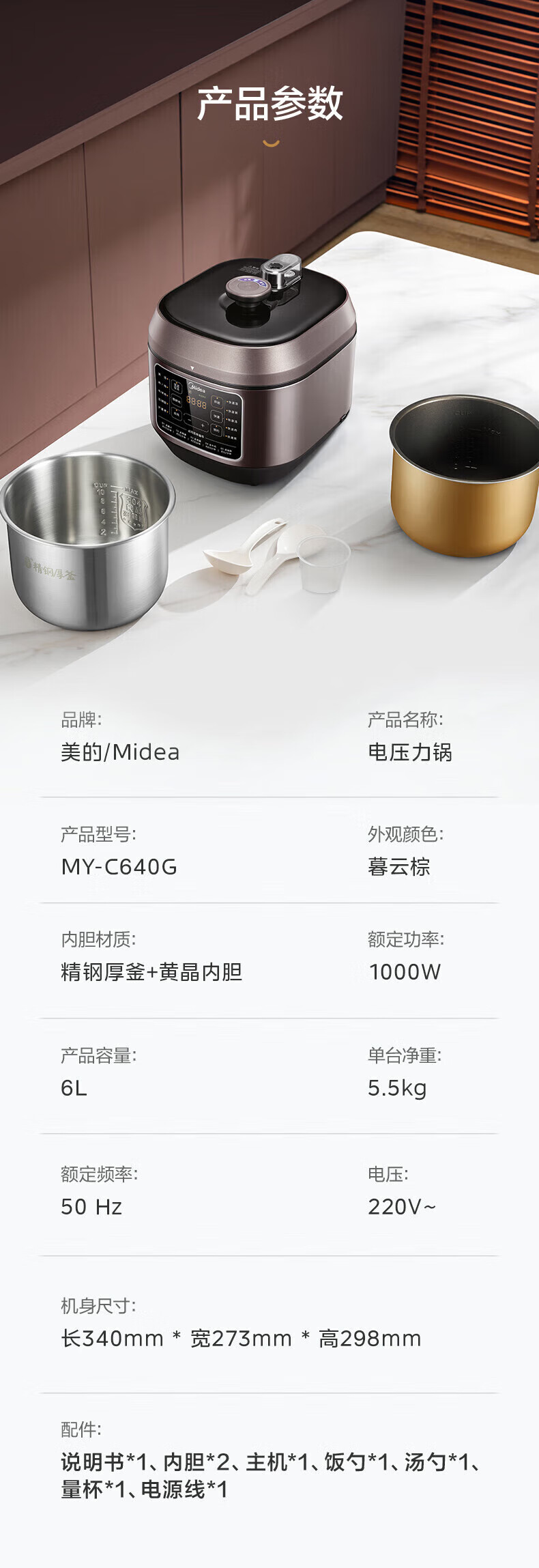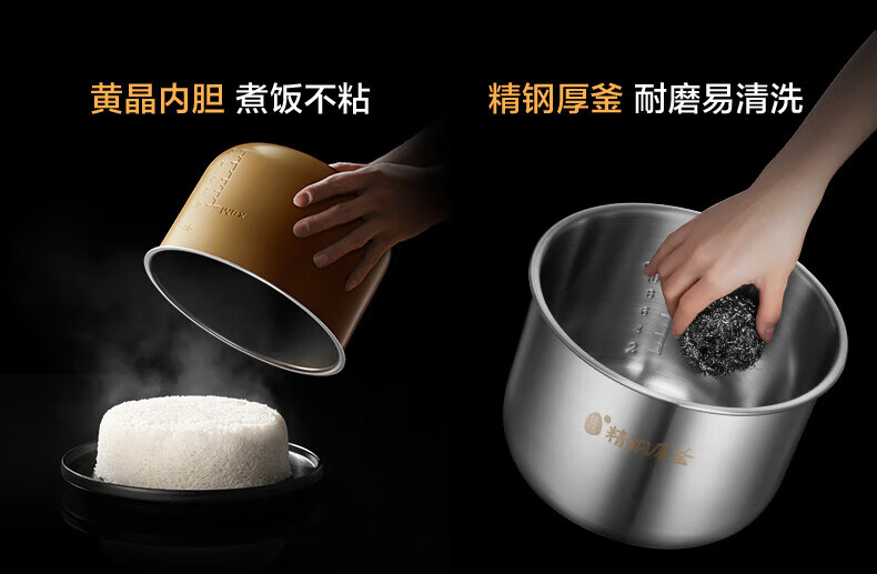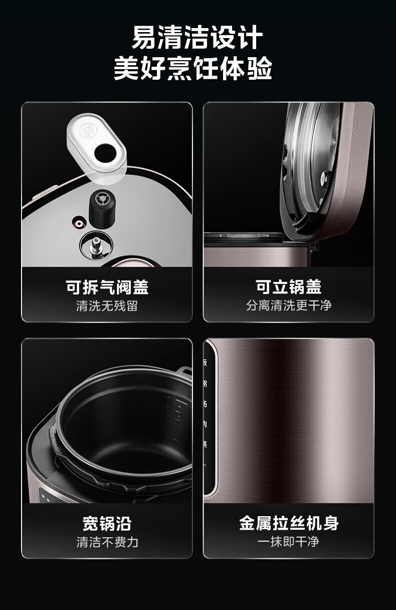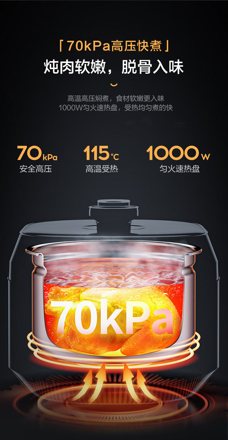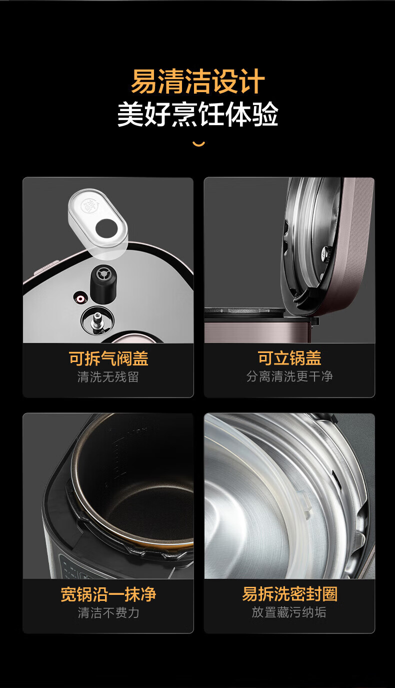 美的电压力锅高压锅 高压电饭锅 自动电饭煲压力锅 不锈钢内胆 0涂层系列 【0涂层内胆+黑晶内胆】MY-C540- 5L