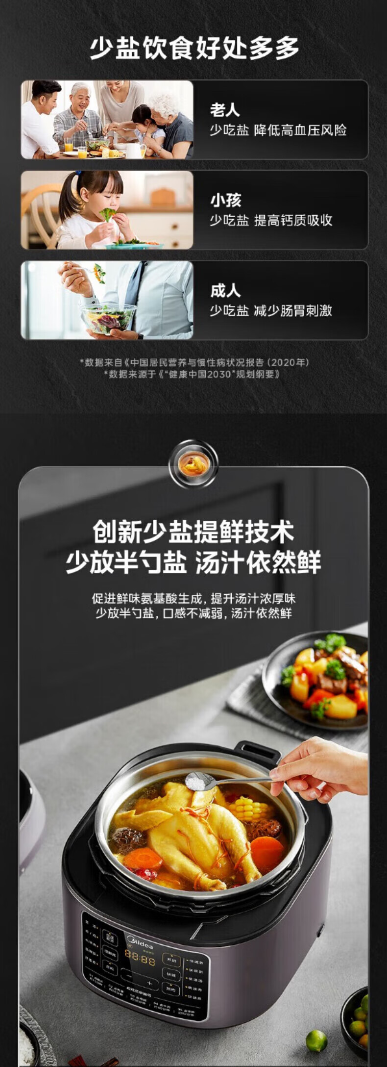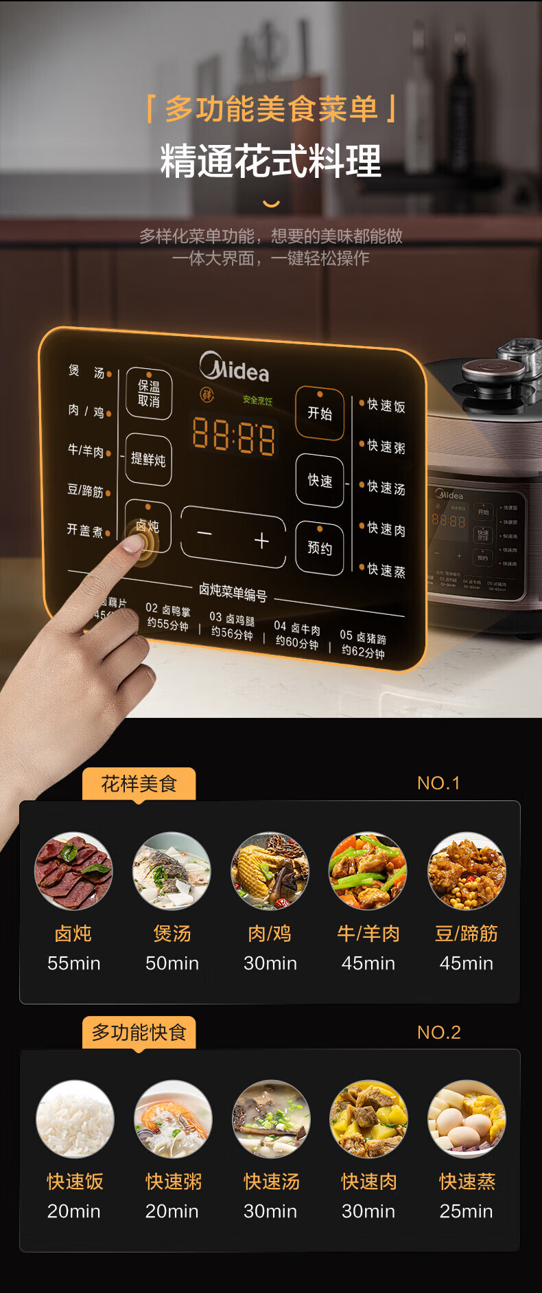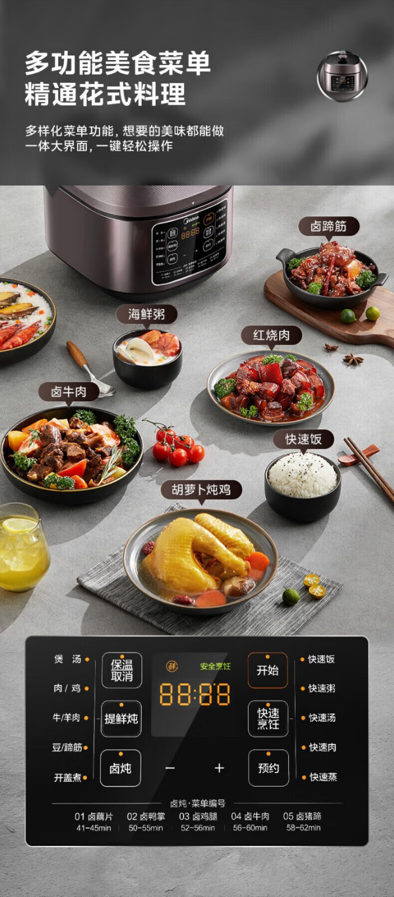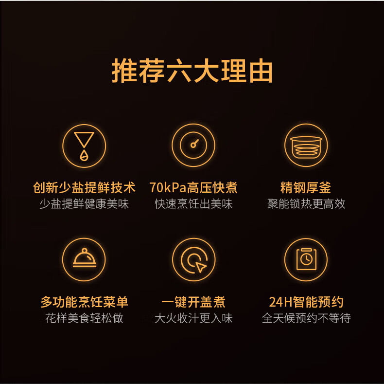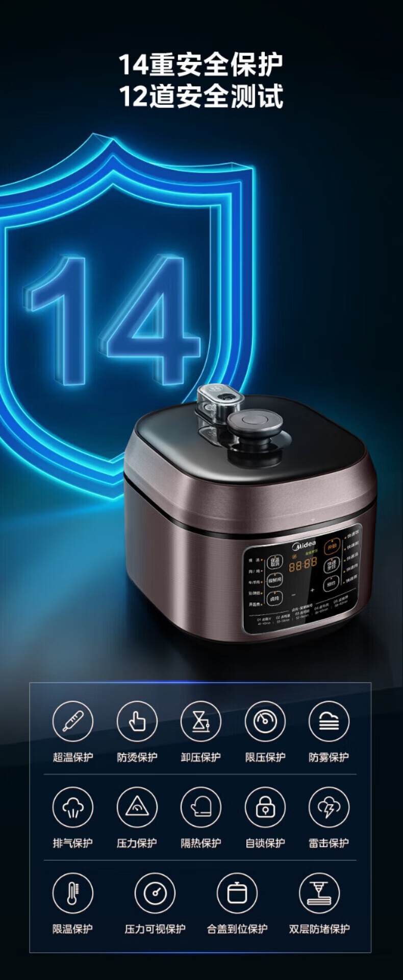 美的电压力锅高压锅 高压电饭锅 自动电饭煲压力锅 不锈钢内胆 0涂层系列 【0涂层内胆+黑晶内胆】MY-C540- 5L