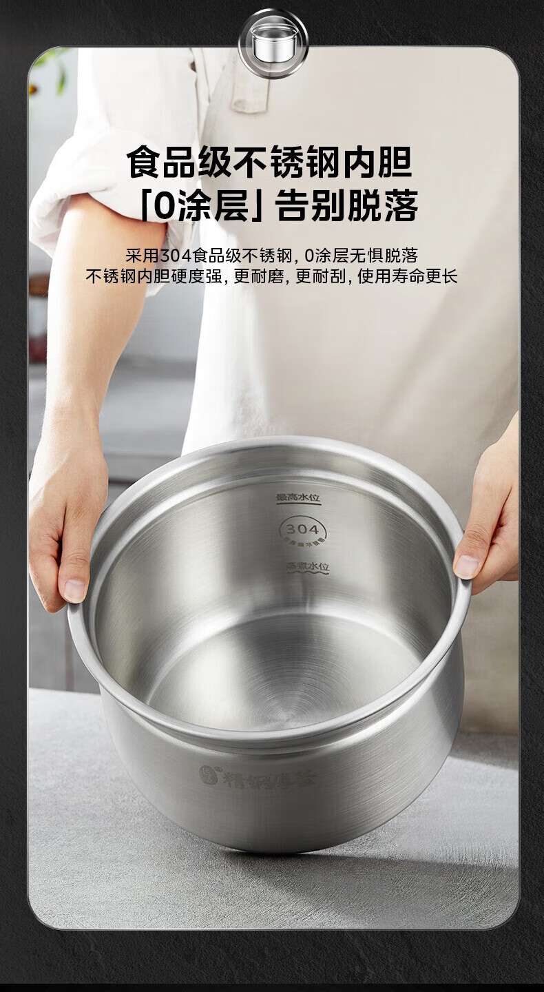 LOTOR电蒸锅电煮锅炖蒸煮一体0涂层304不锈钢多功能锅大容量电锅上蒸下煮电热火锅自动断电家用蒸锅 17L 大容量【0涂层304不锈钢】
