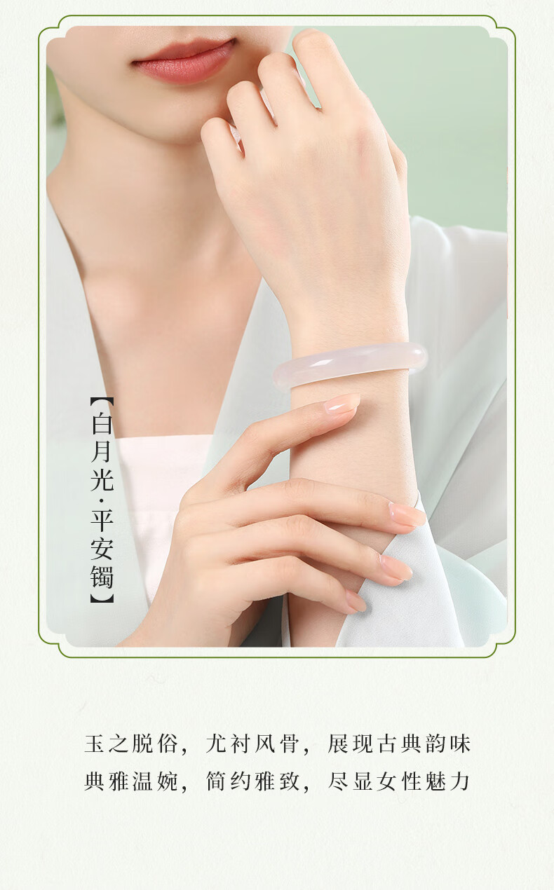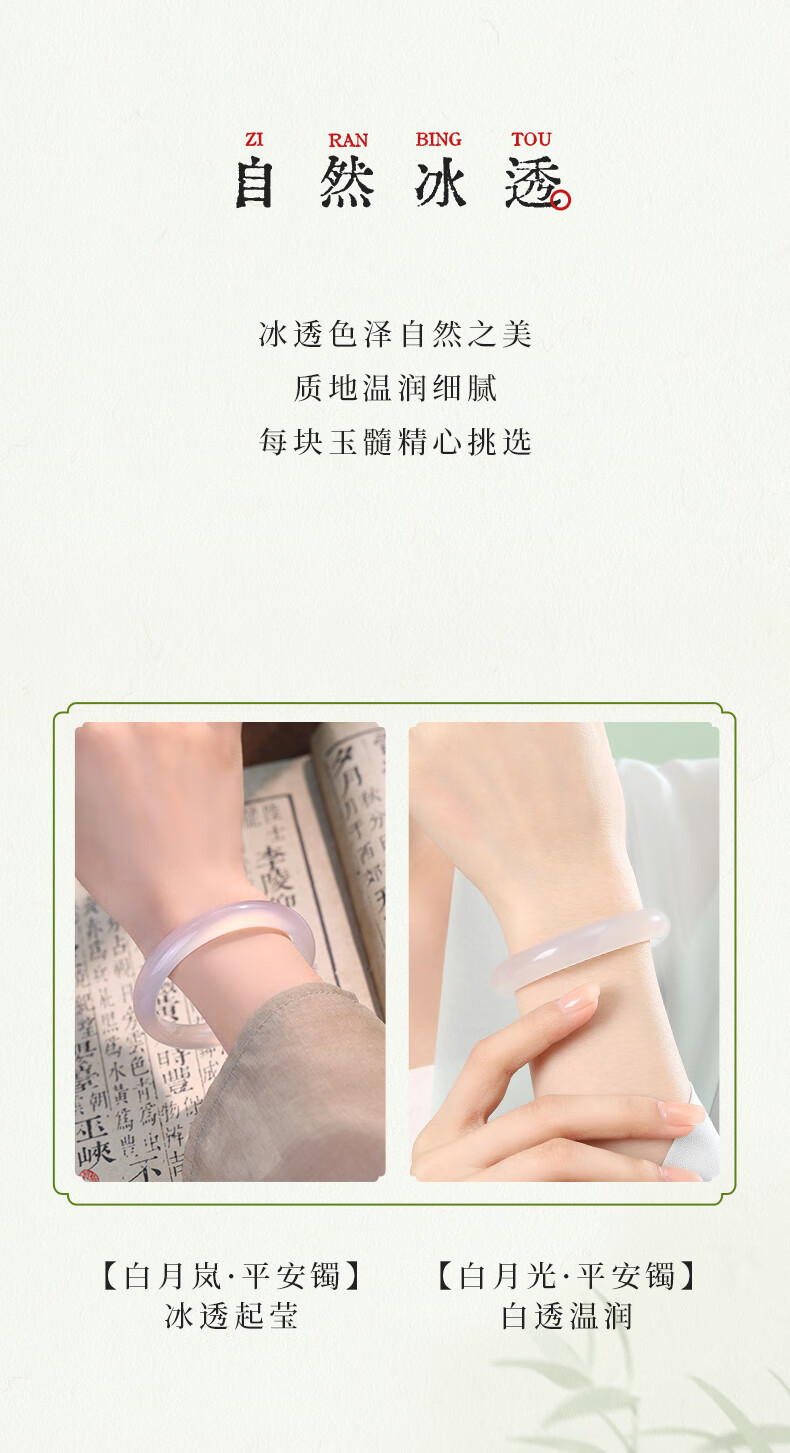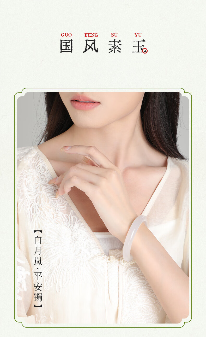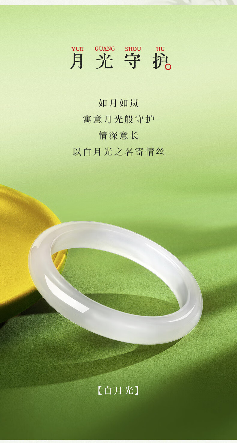 周大生白月光玉髓手镯子白透温润新中式国风玉镯生日礼物送女友妈妈