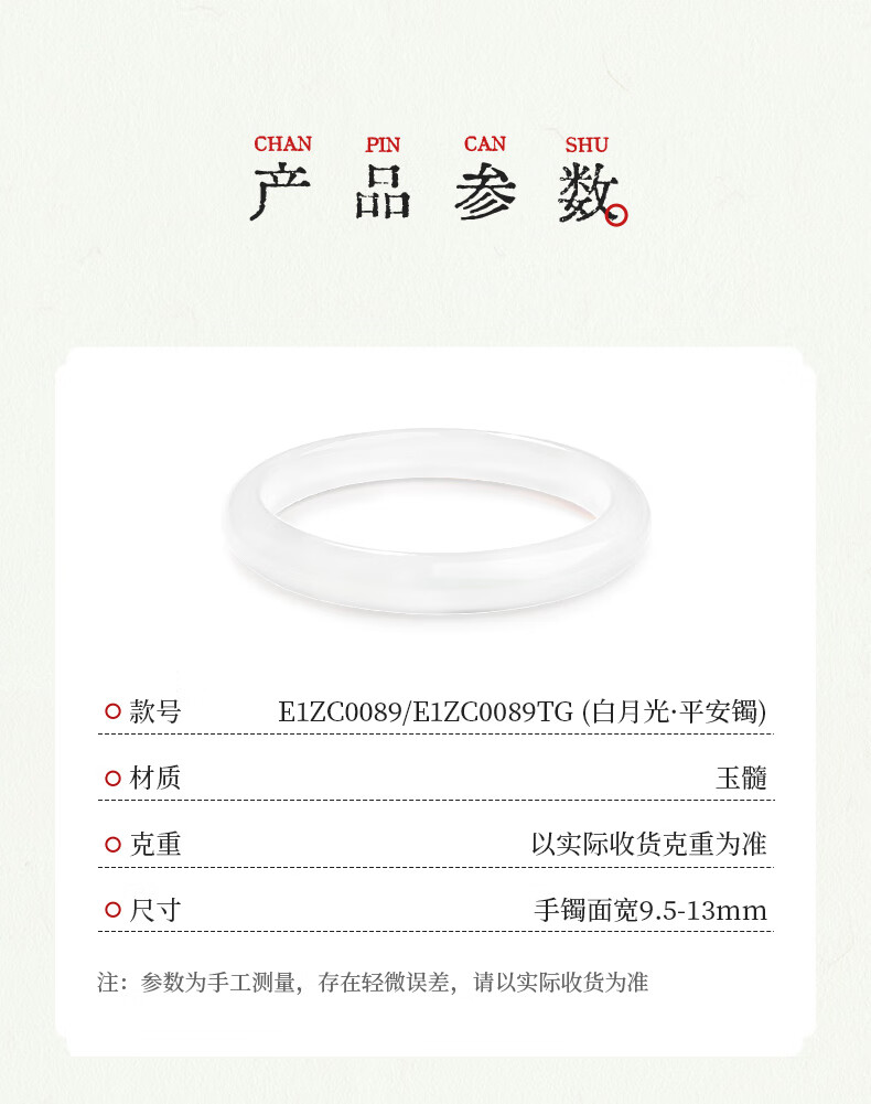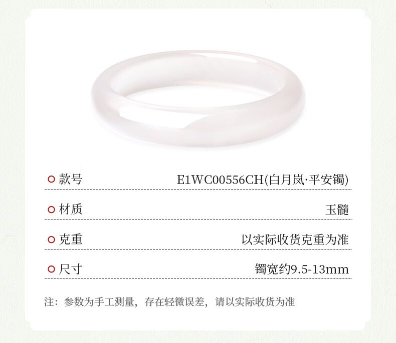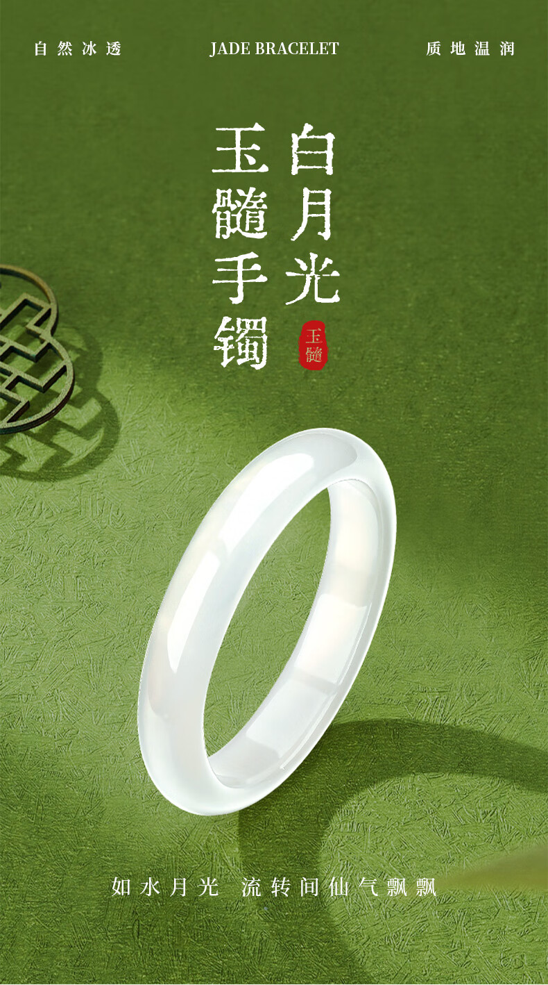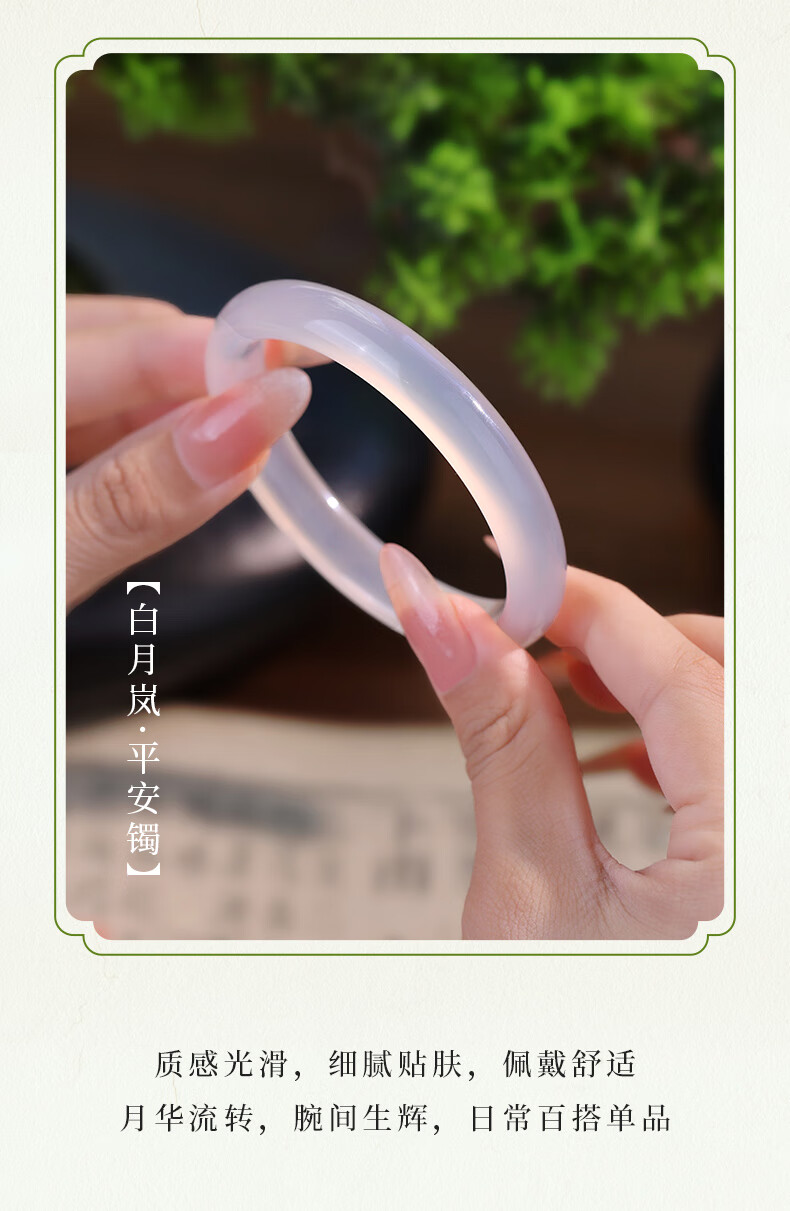 周大生白月光玉髓手镯子白透温润新中式国风玉镯生日礼物送女友妈妈