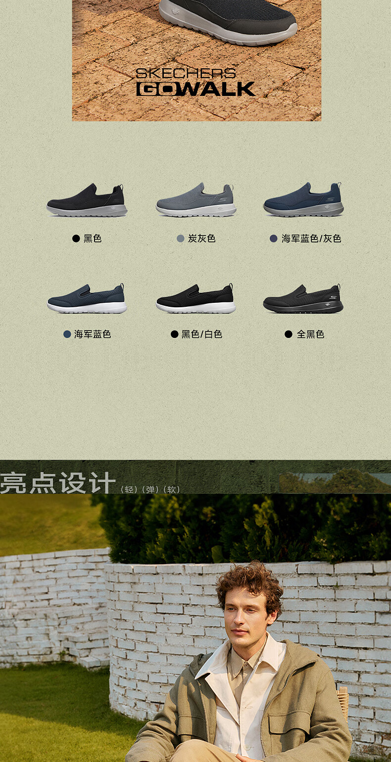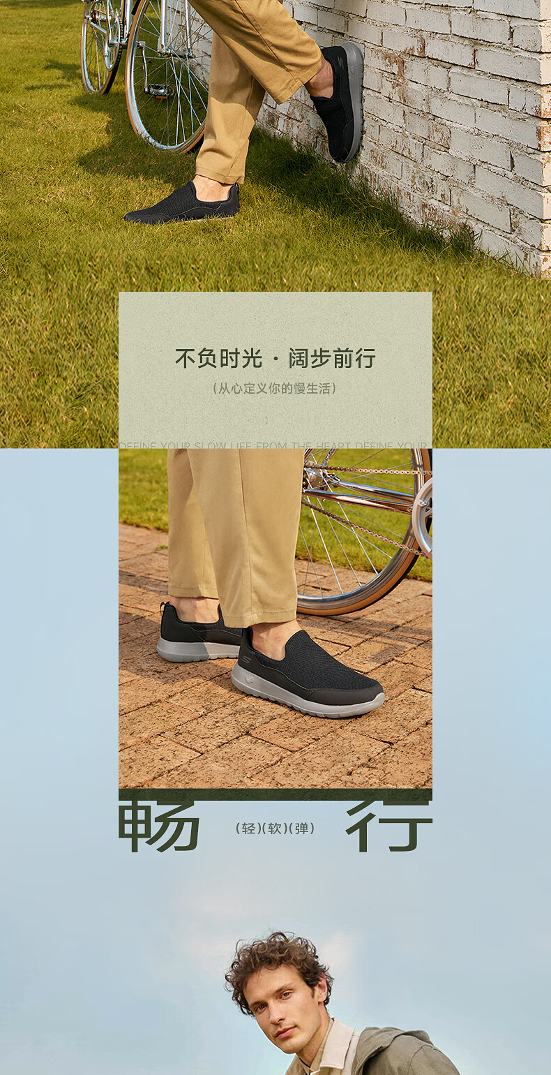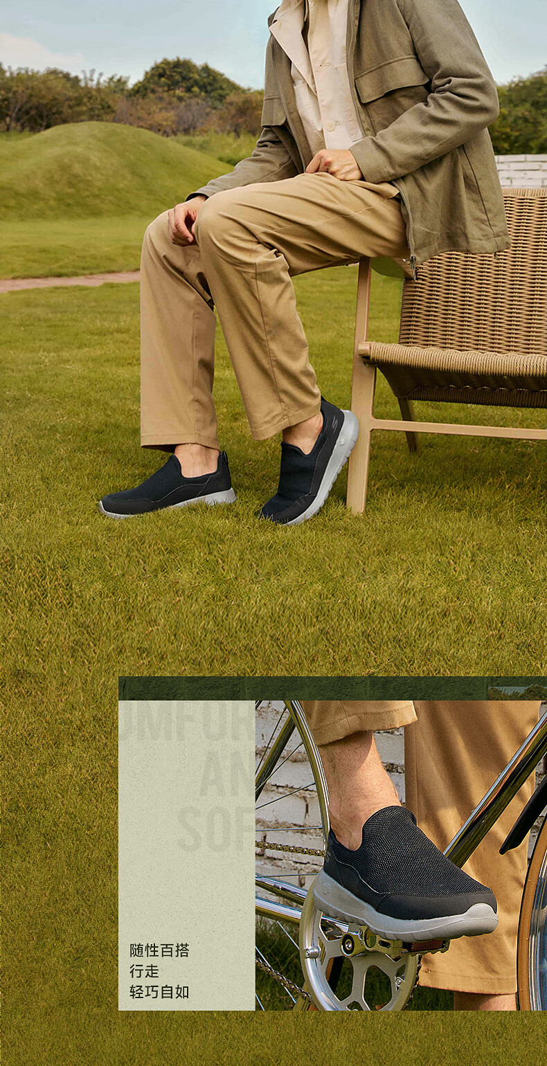斯凯奇(Skechers)男鞋秋季一脚蹬健步鞋软底网面休闲运动鞋54626