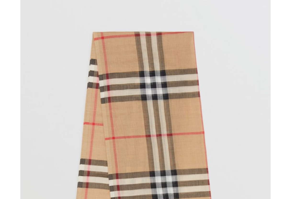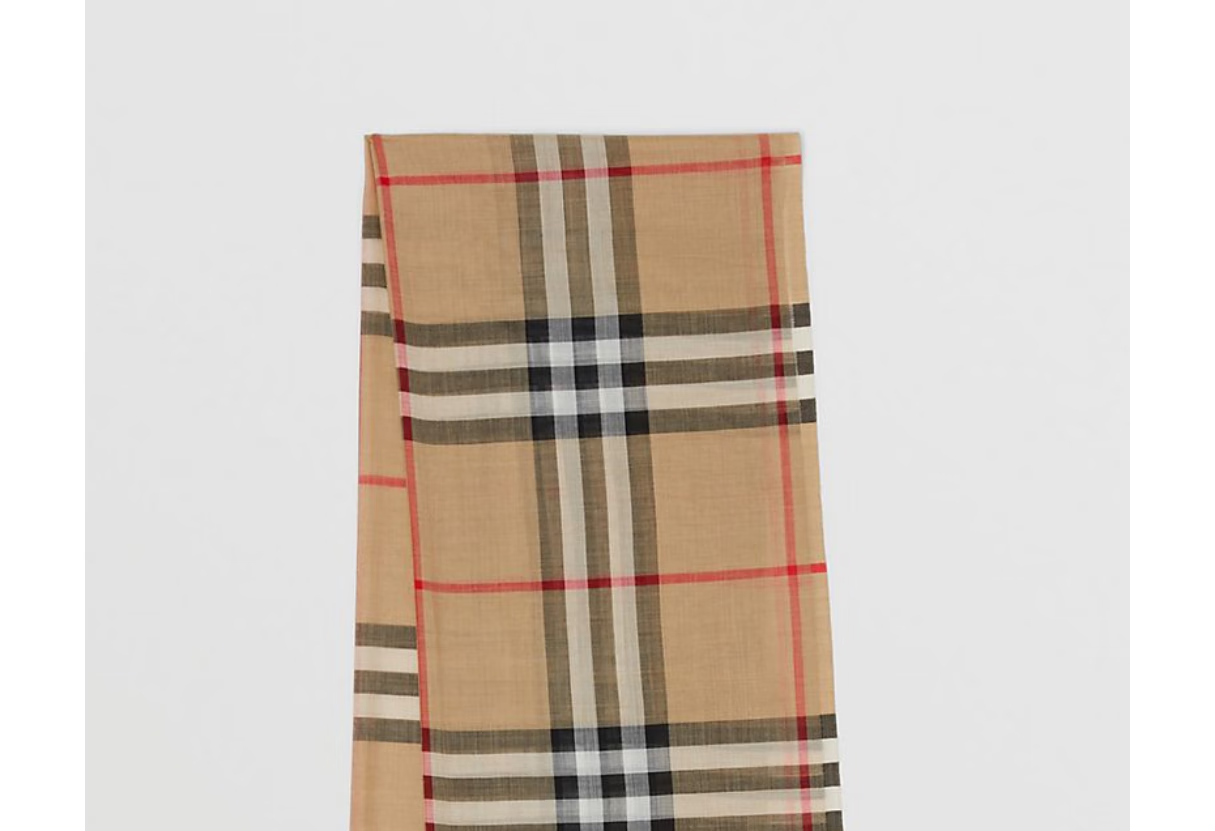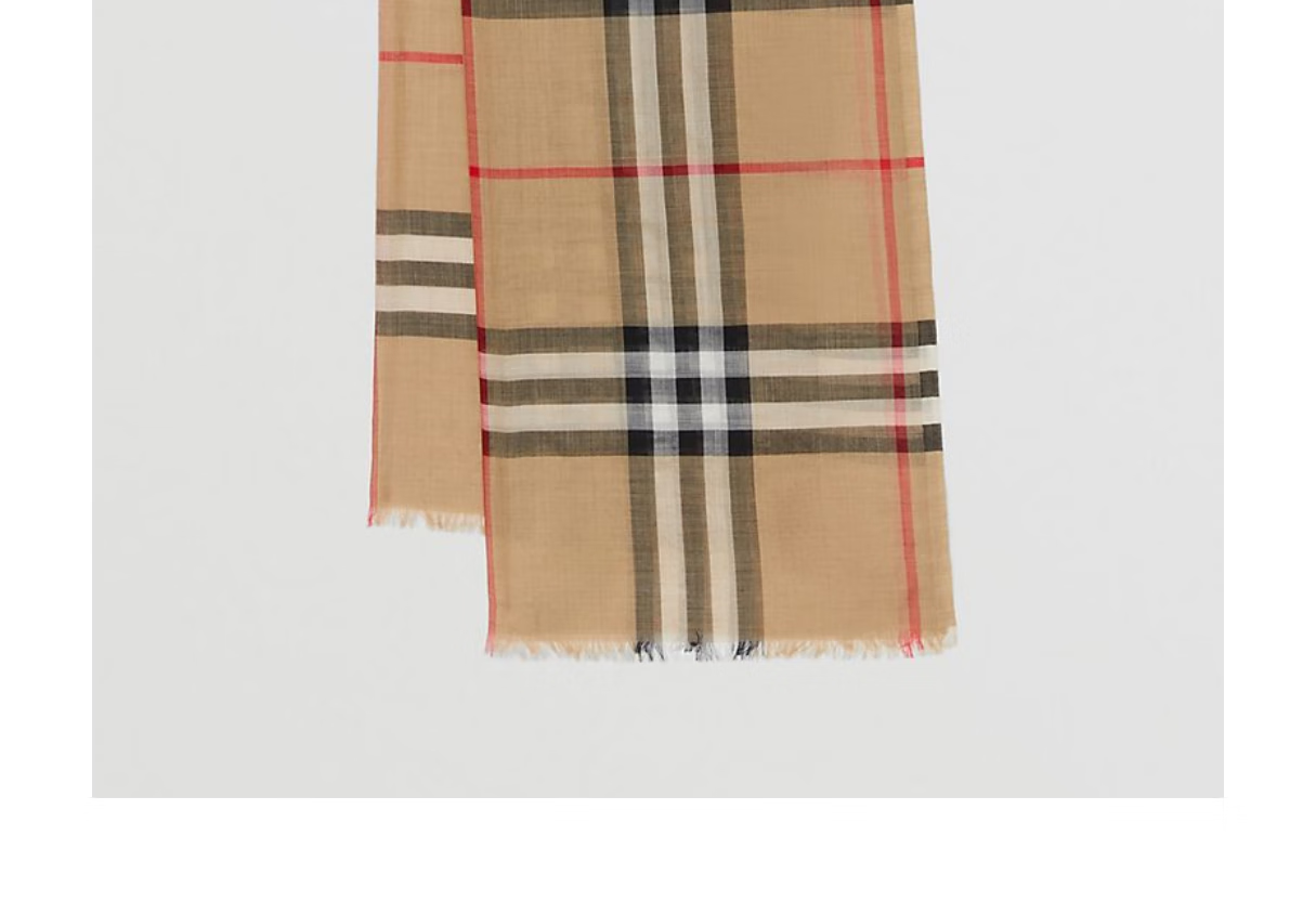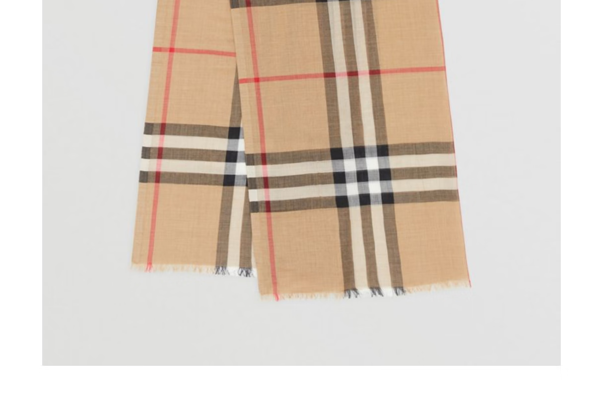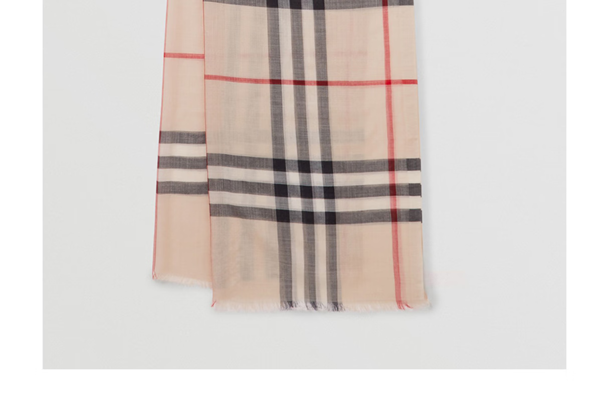 博柏利(BURBERRY)【礼物】围巾男女 格纹轻盈丝毛混纺围巾 典藏米色