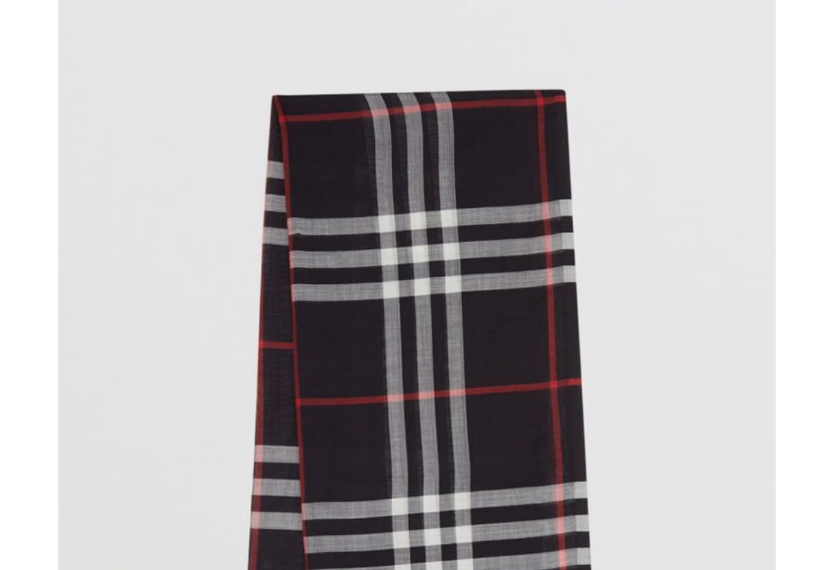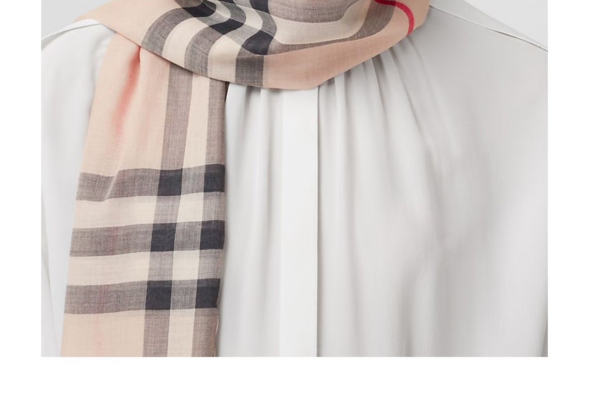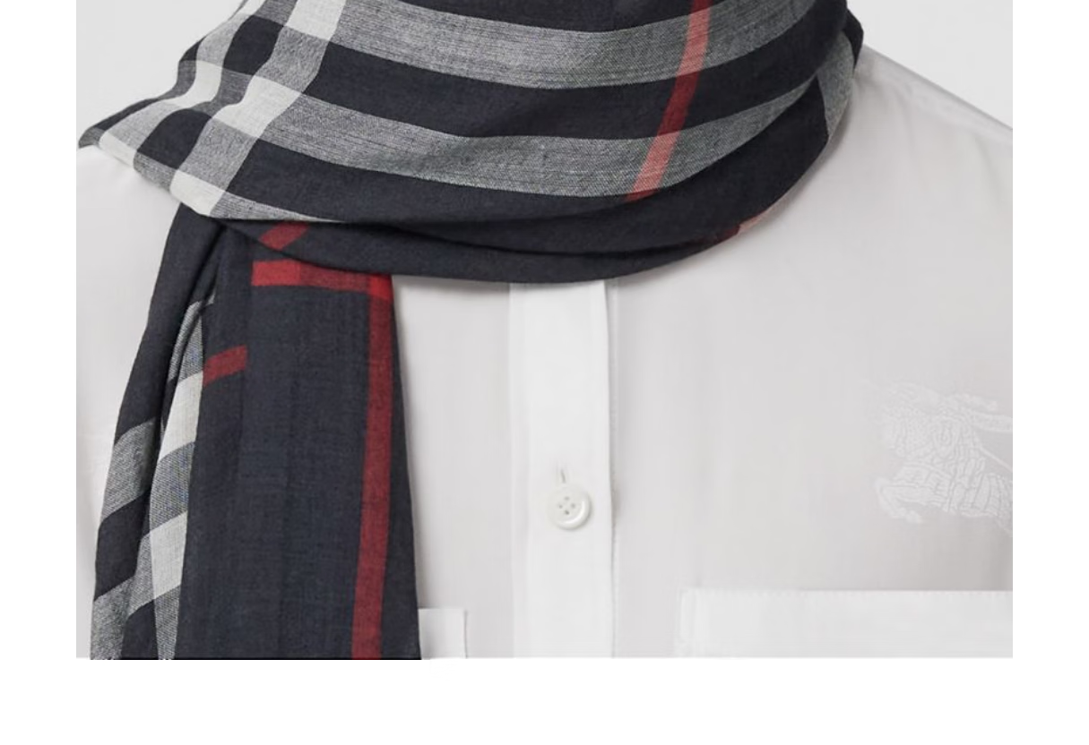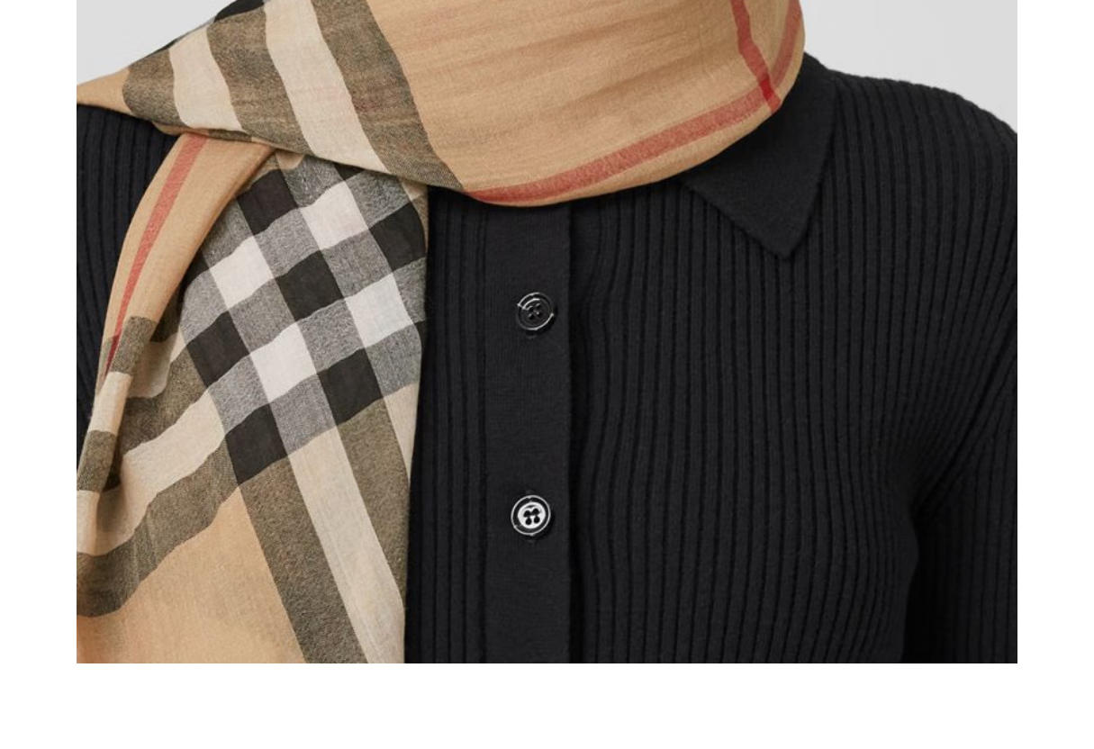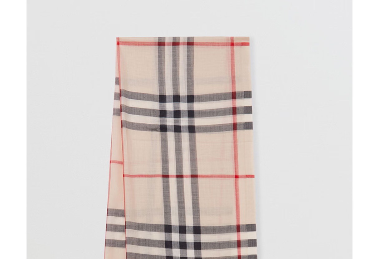 博柏利(BURBERRY)【礼物】围巾男女 格纹轻盈丝毛混纺围巾 典藏米色