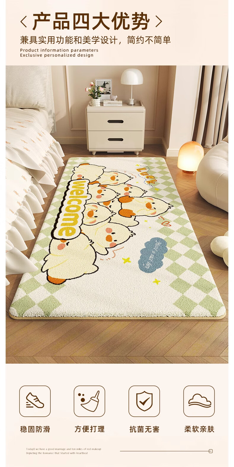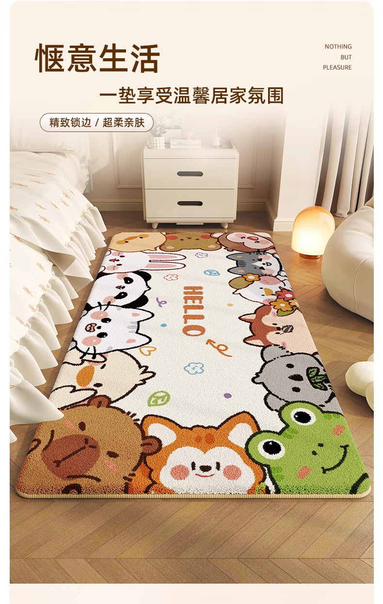 KAYE儿童房床边毯卧室公主房间衣帽间垫子仿羊绒床前床下床尾加厚地毯 FYR-森友联欢会 50X140cm