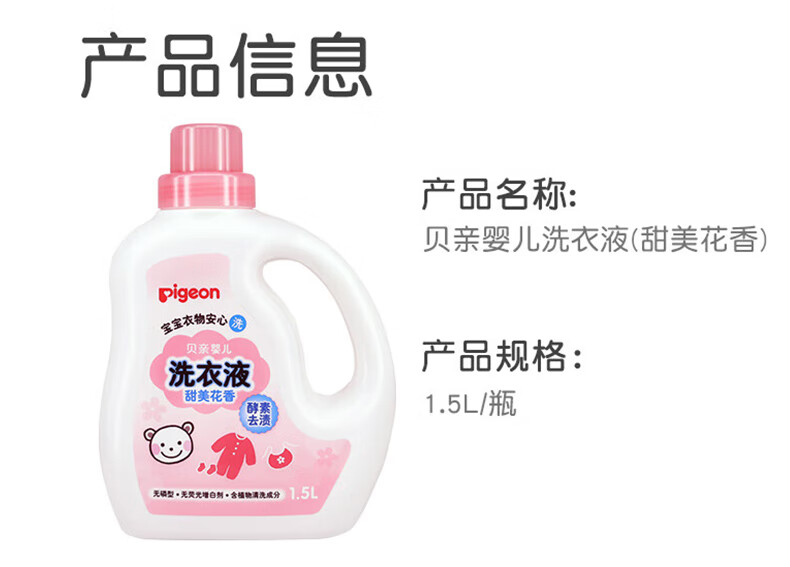 贝亲(Pigeon)婴儿宝宝儿童专用酵素去污洗衣液温和植萃(甜美花香)1.5L实惠装