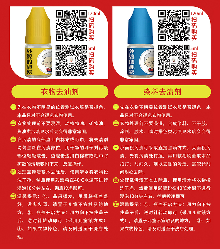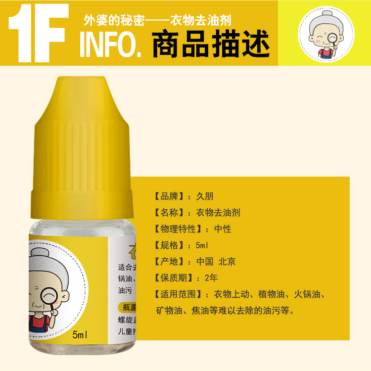 久朋 衣物去油剂去除衣物上动植物油火锅油矿物油焦油等油污(外婆的秘密) 衣物去油剂120ml