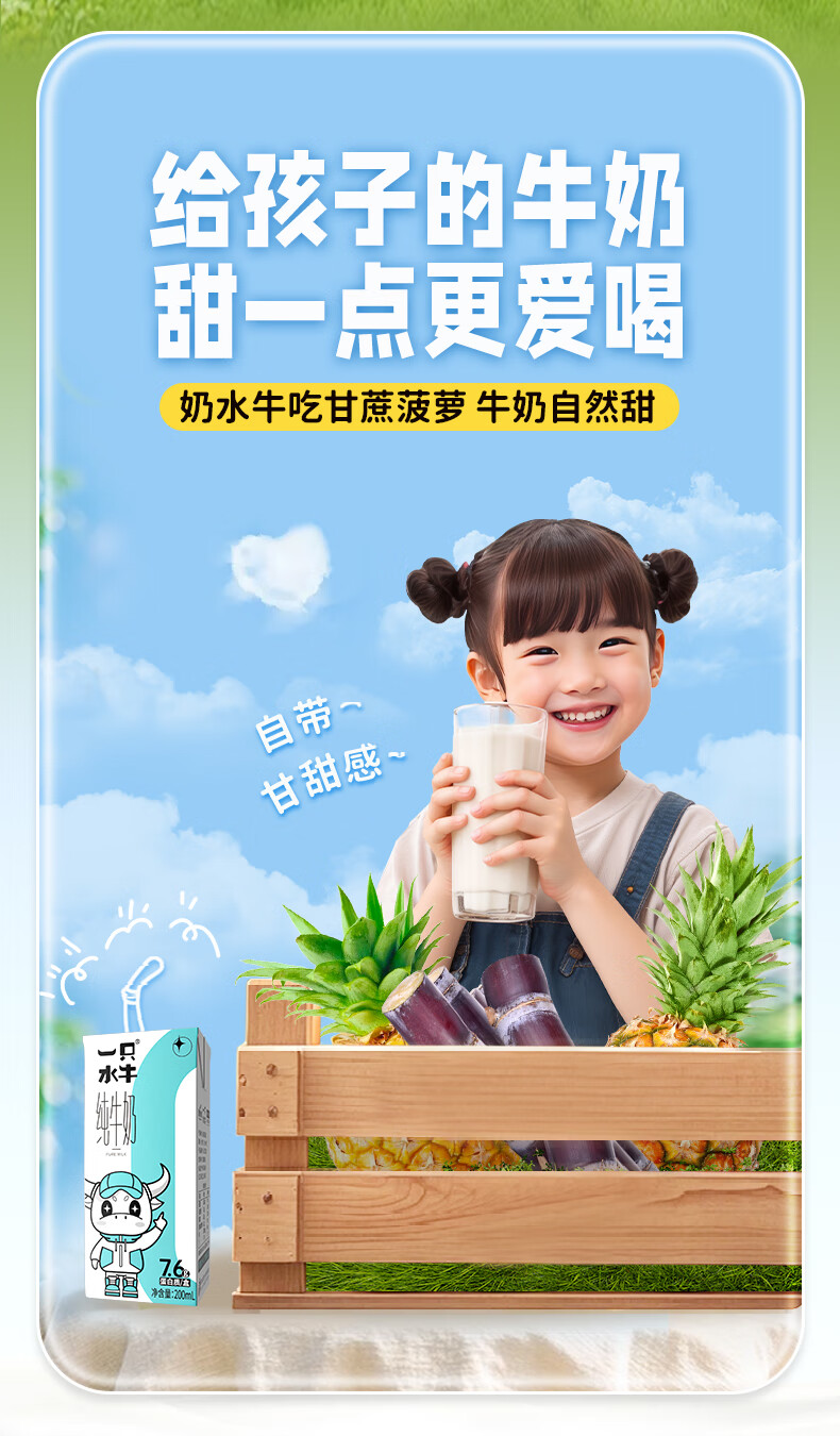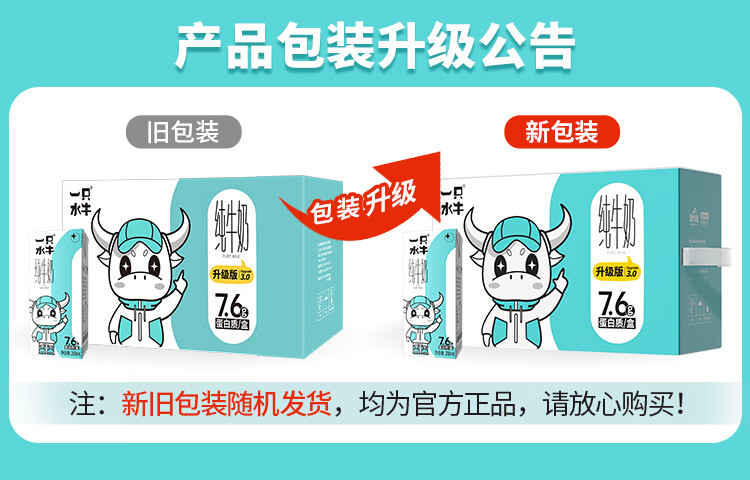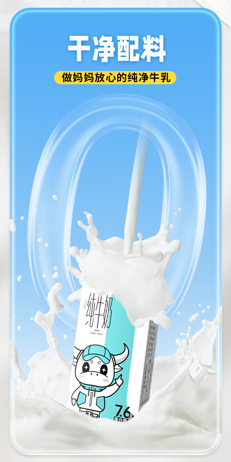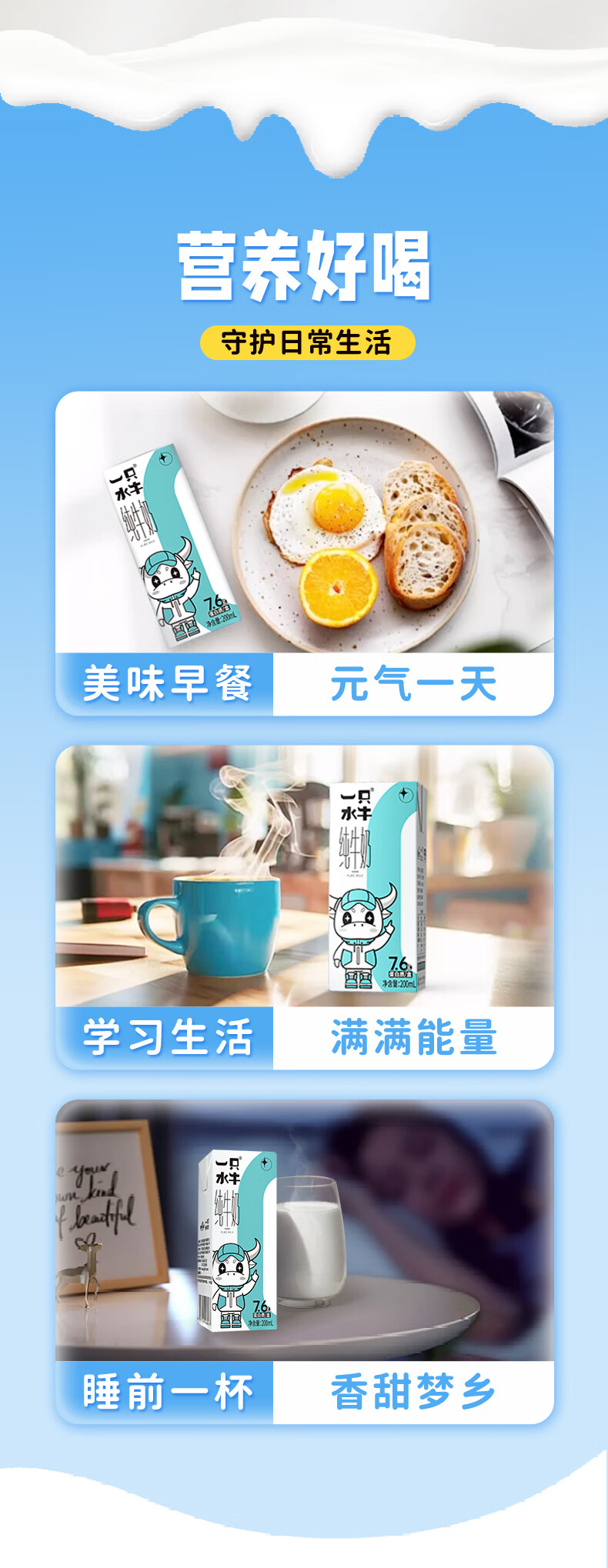 一只水牛皇氏儿童宝宝低脂纯牛奶 7.6g蛋白质 【2箱】低脂纯牛奶200ml*10盒