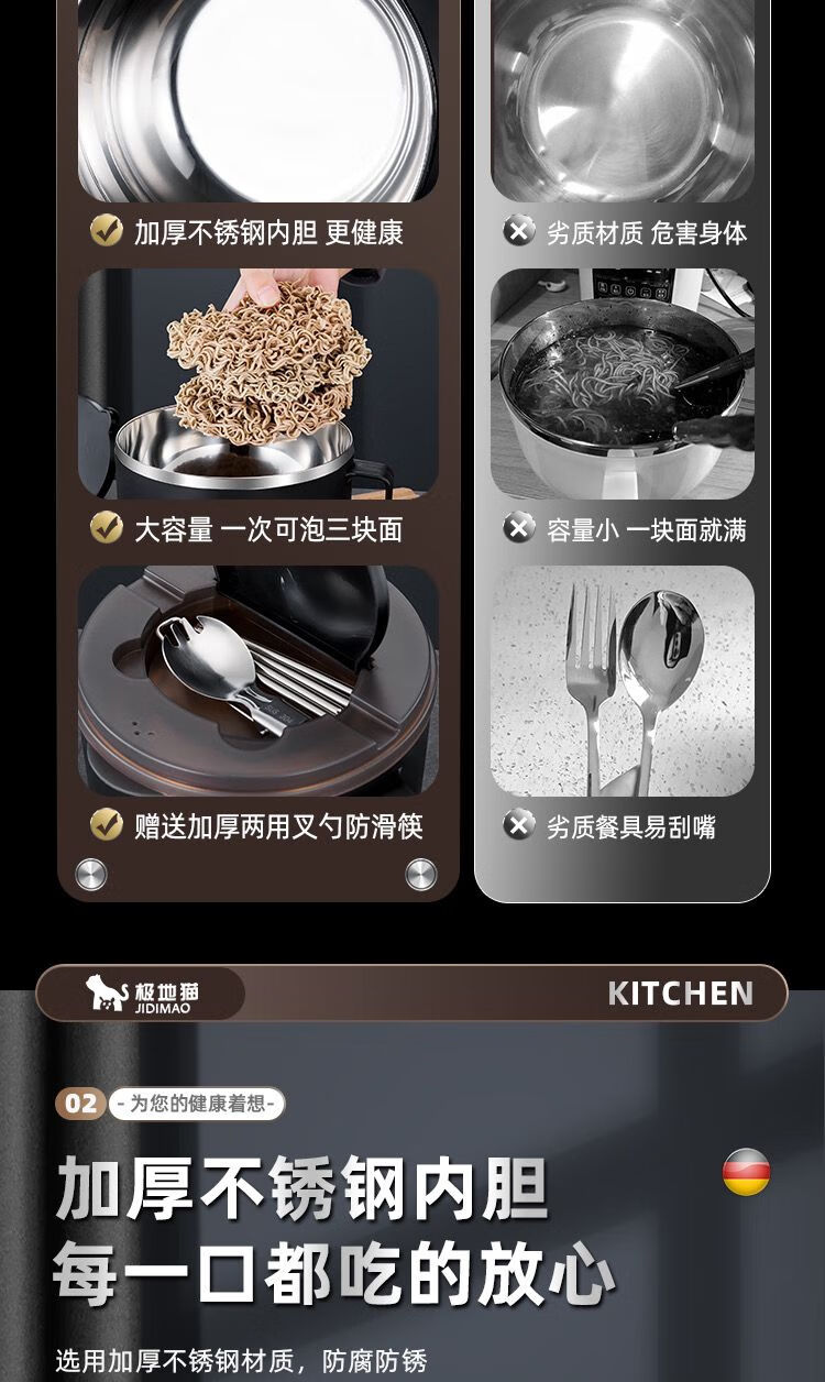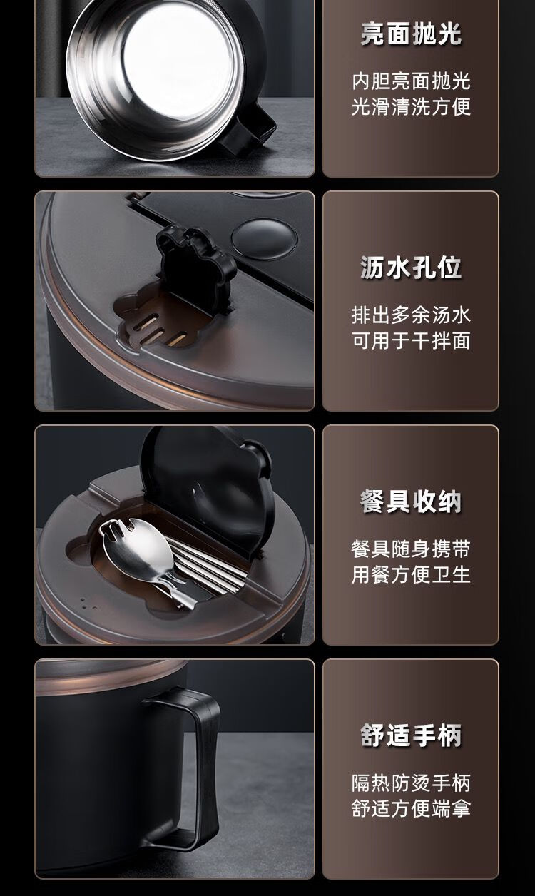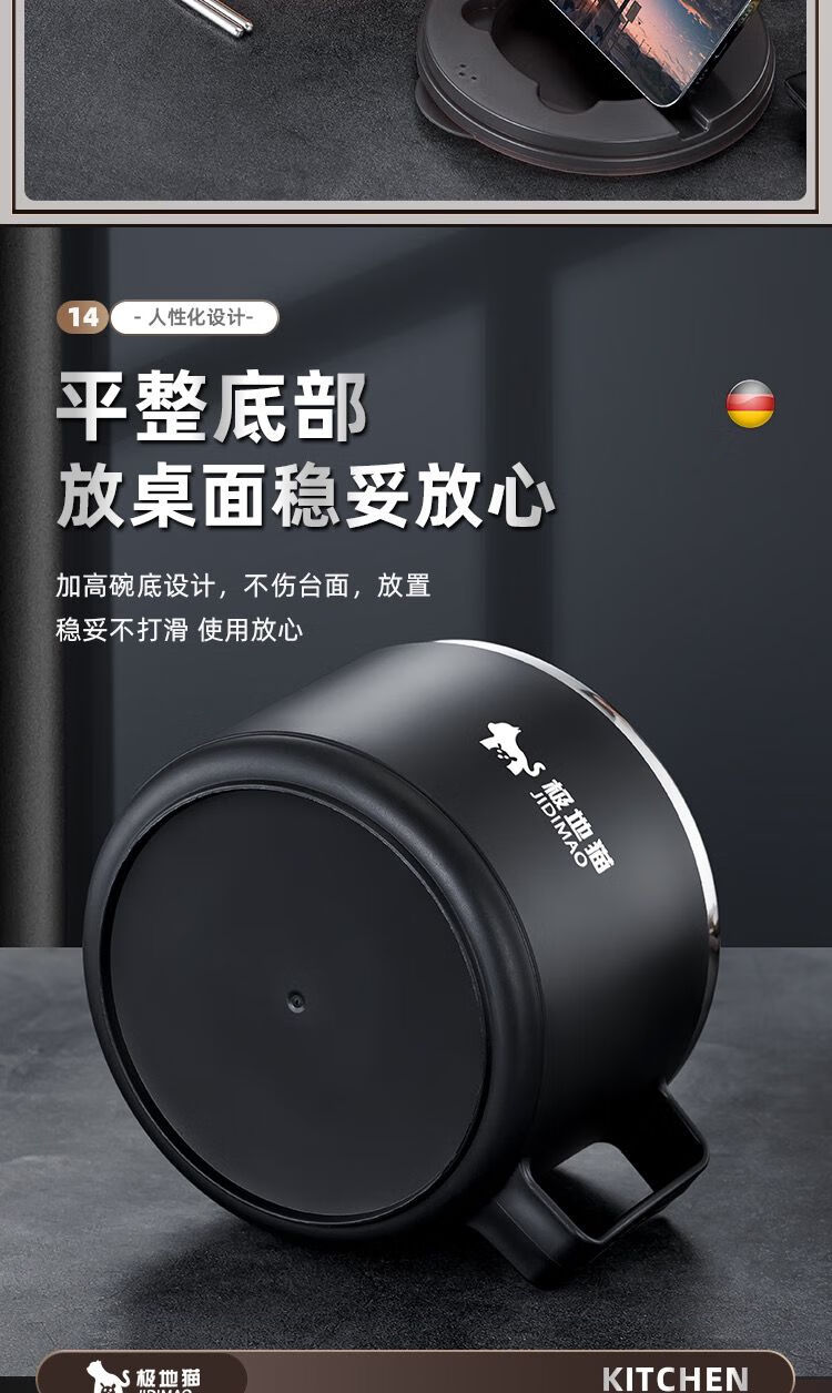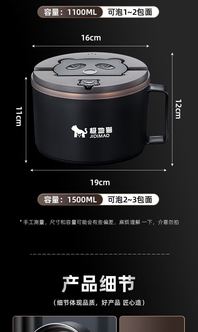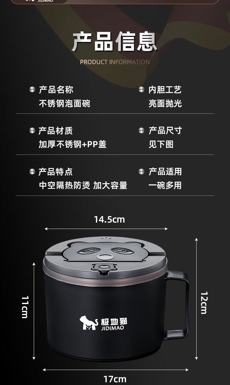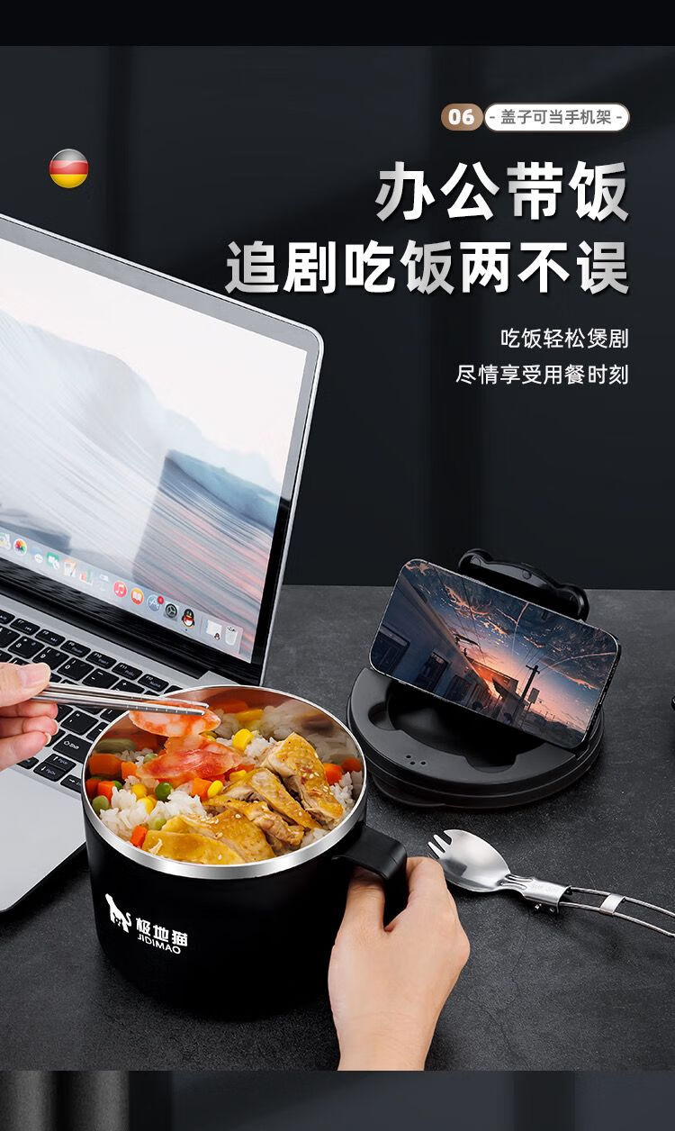 DEATKN不锈钢泡面碗带盖大容量日式可沥水方便面碗学生饭碗筷套装 JDM新款【不锈钢内胆】1500ml 泡面碗+餐具收纳盖+不锈钢折叠筷勺