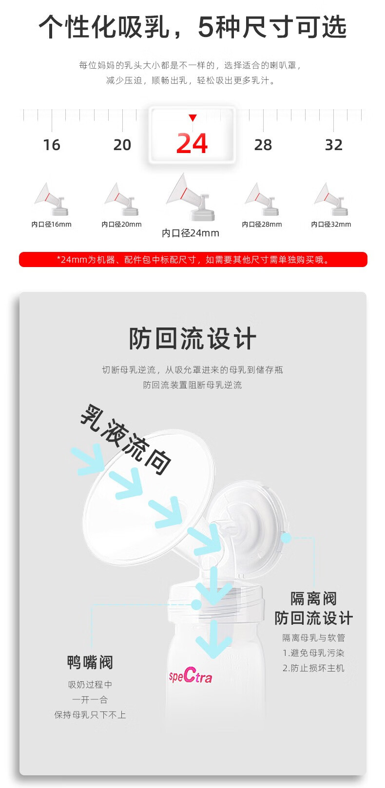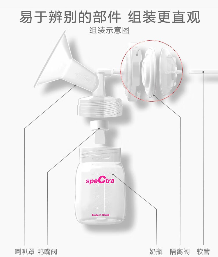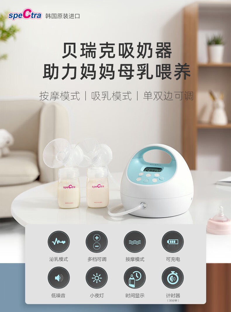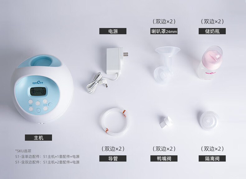 贝瑞克(spectra)电动吸奶器S1智能按摩可双边舒适泌乳吸乳器高频微震吸力可调节 S1双边配件包【可充电】