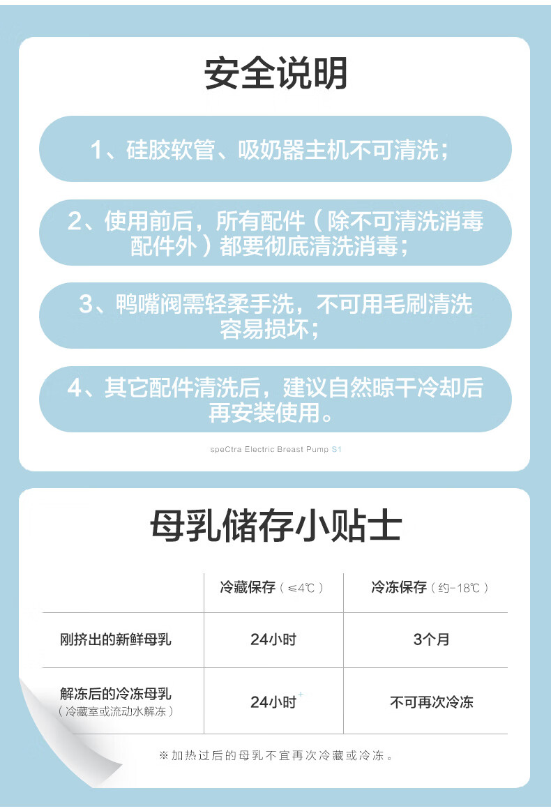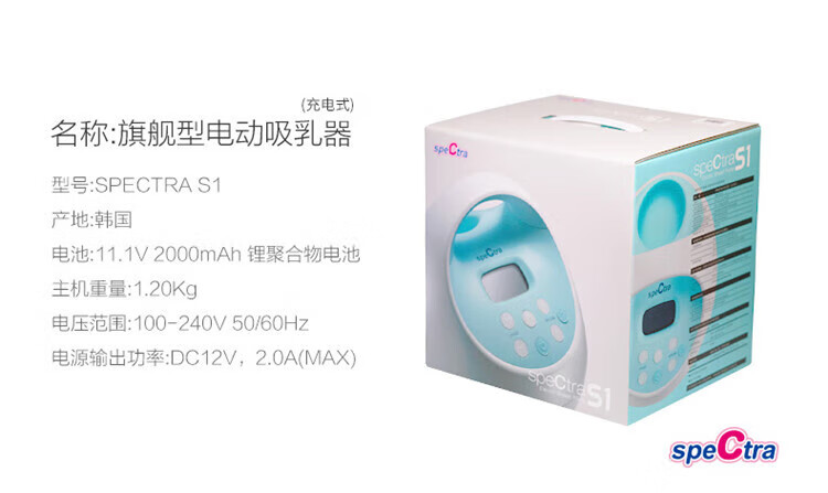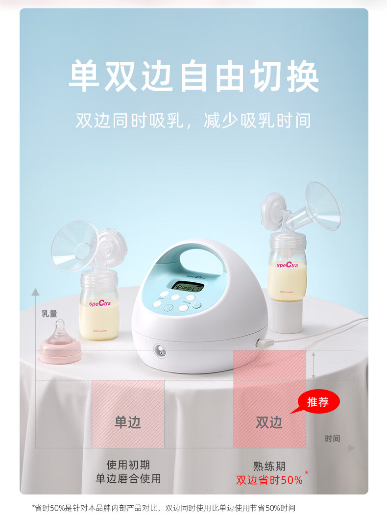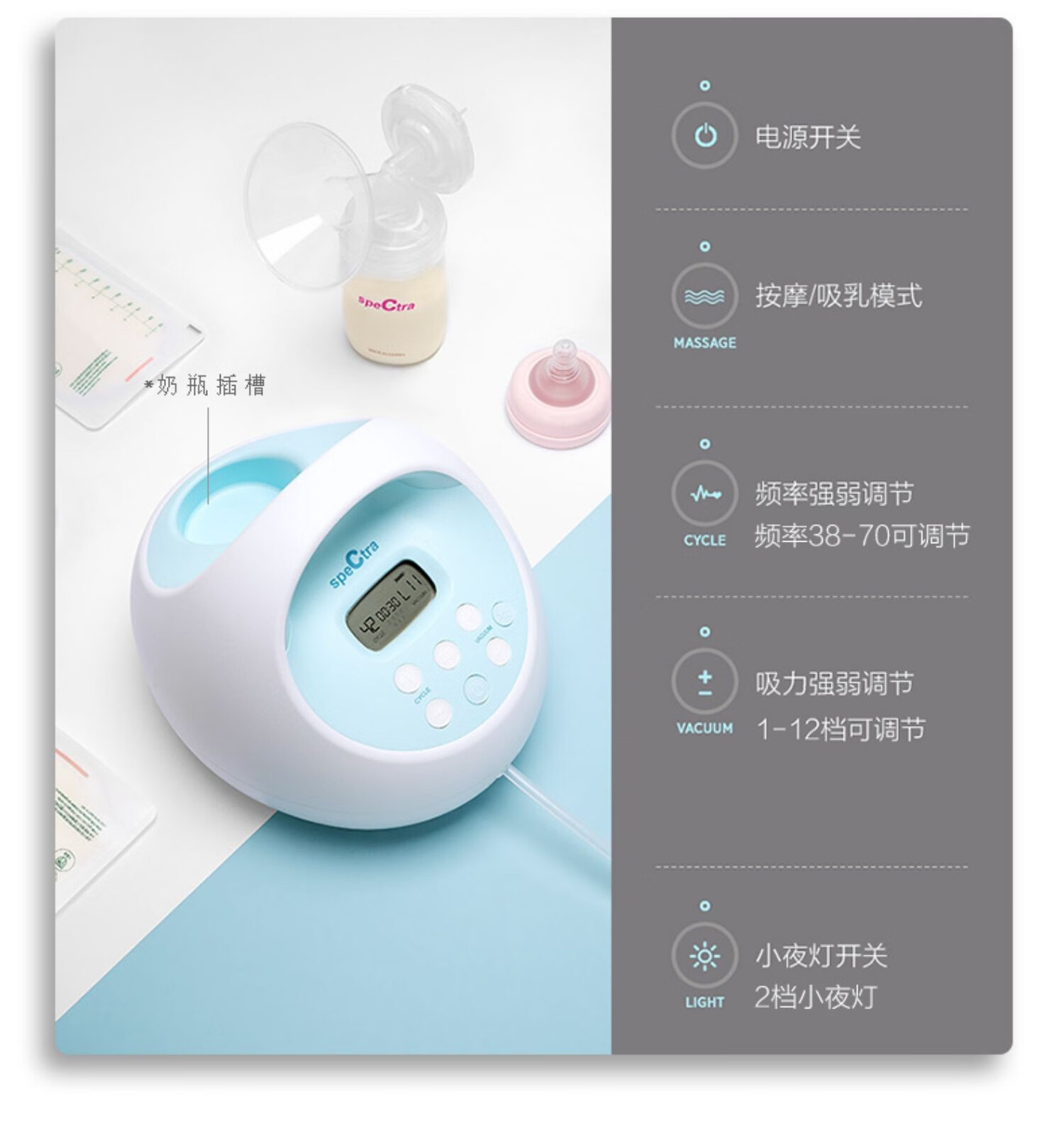 贝瑞克(spectra)电动吸奶器S1智能按摩可双边舒适泌乳吸乳器高频微震吸力可调节 S1双边配件包【可充电】