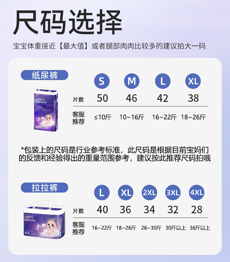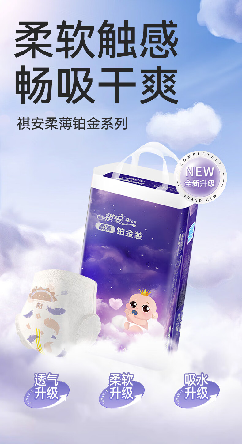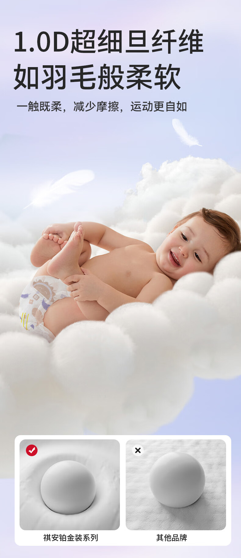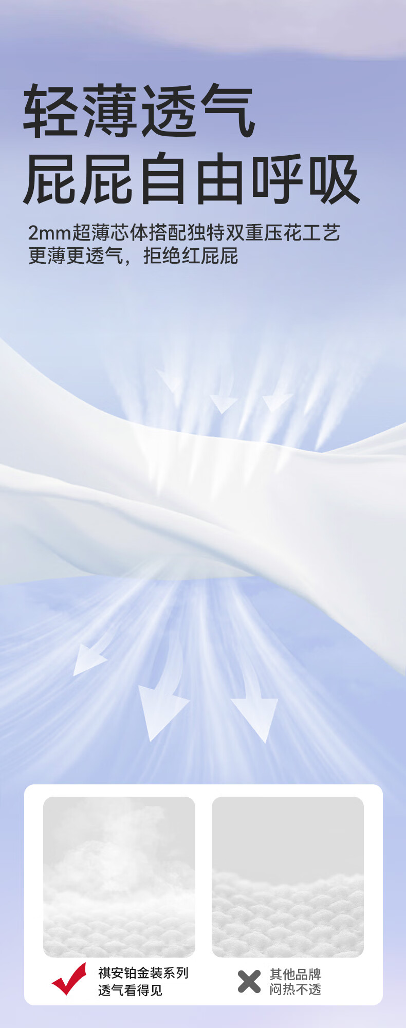 祺安柔薄铂金装超薄透气婴儿纸尿裤M码46片10-16斤柔软成长裤