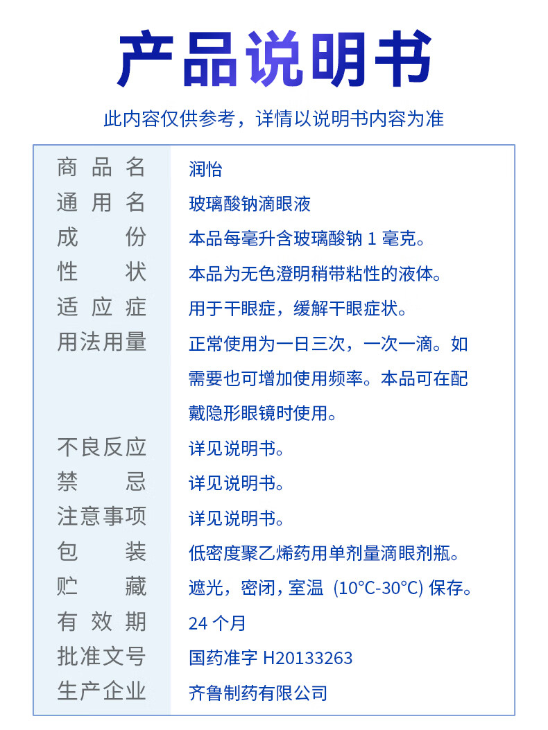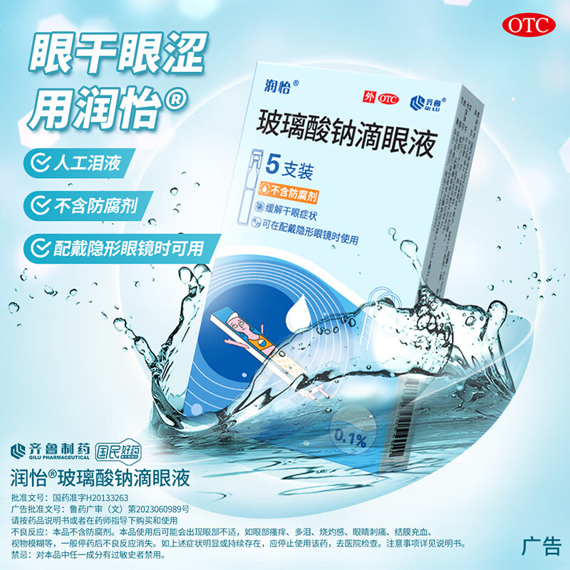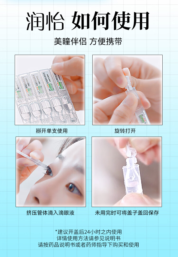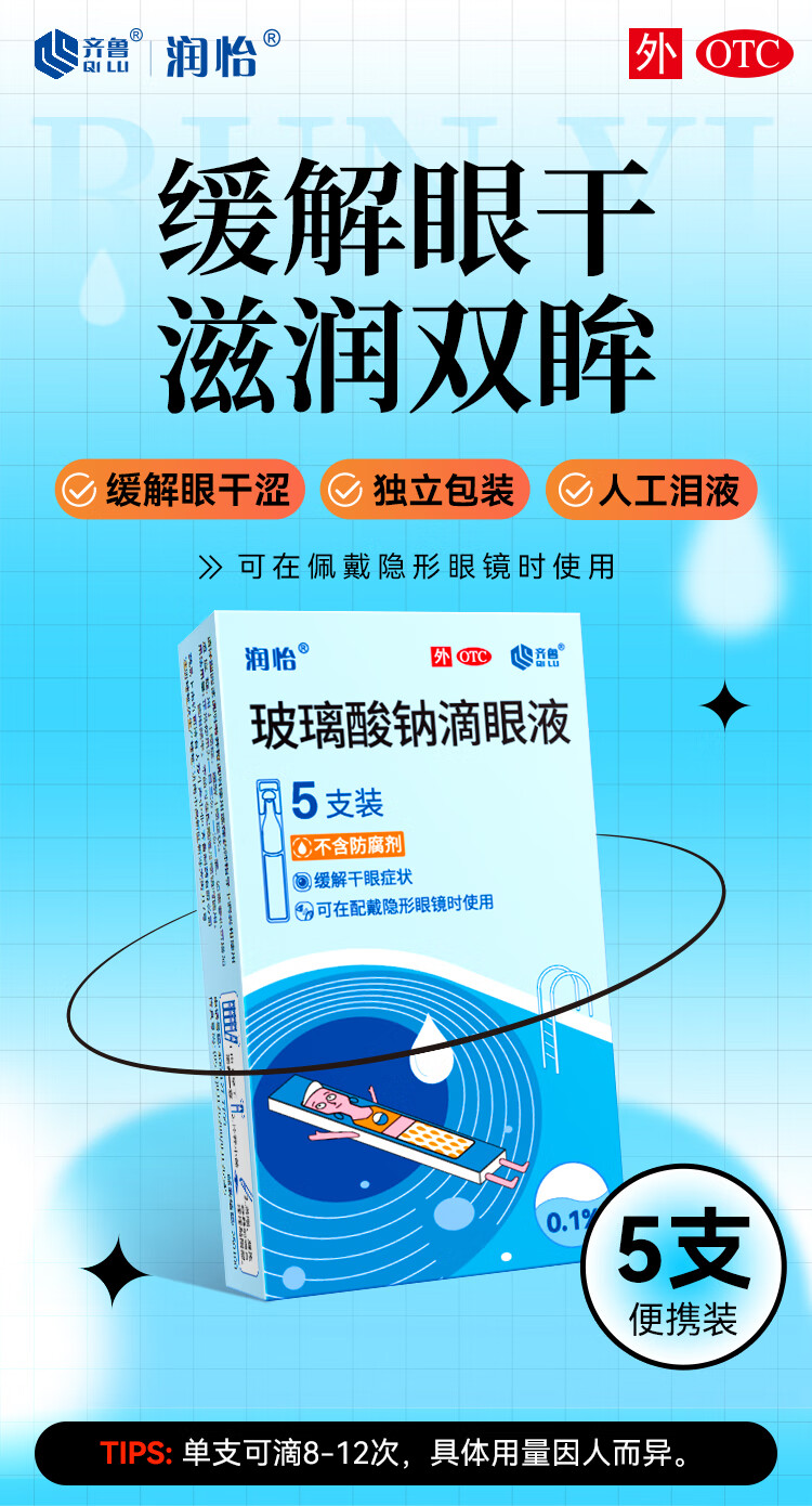 效期至26年1月3日 润怡 玻璃酸钠滴眼液 5支装 人工泪液 缓解干眼 隐形眼镜适用
