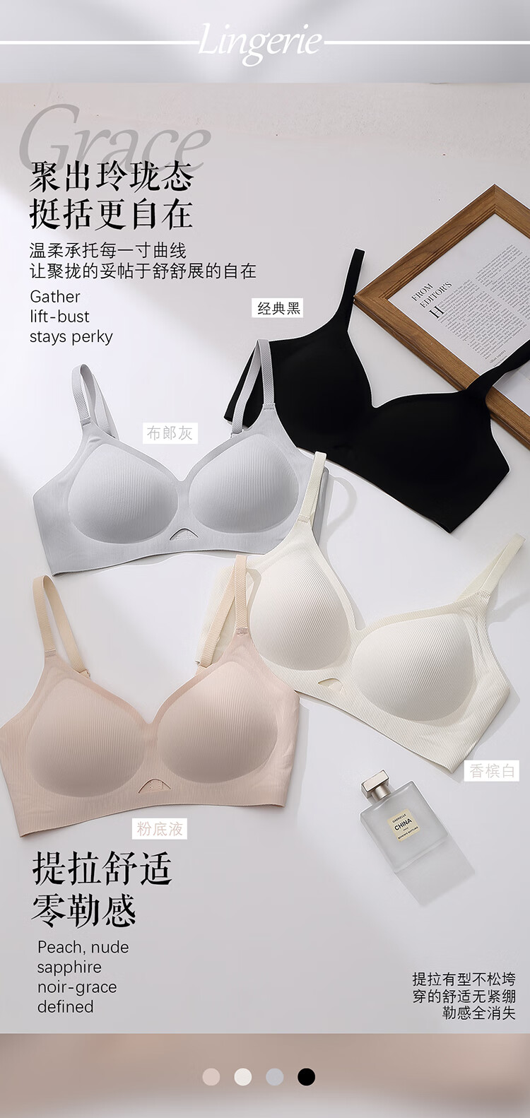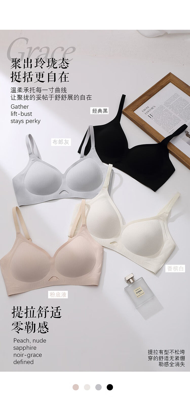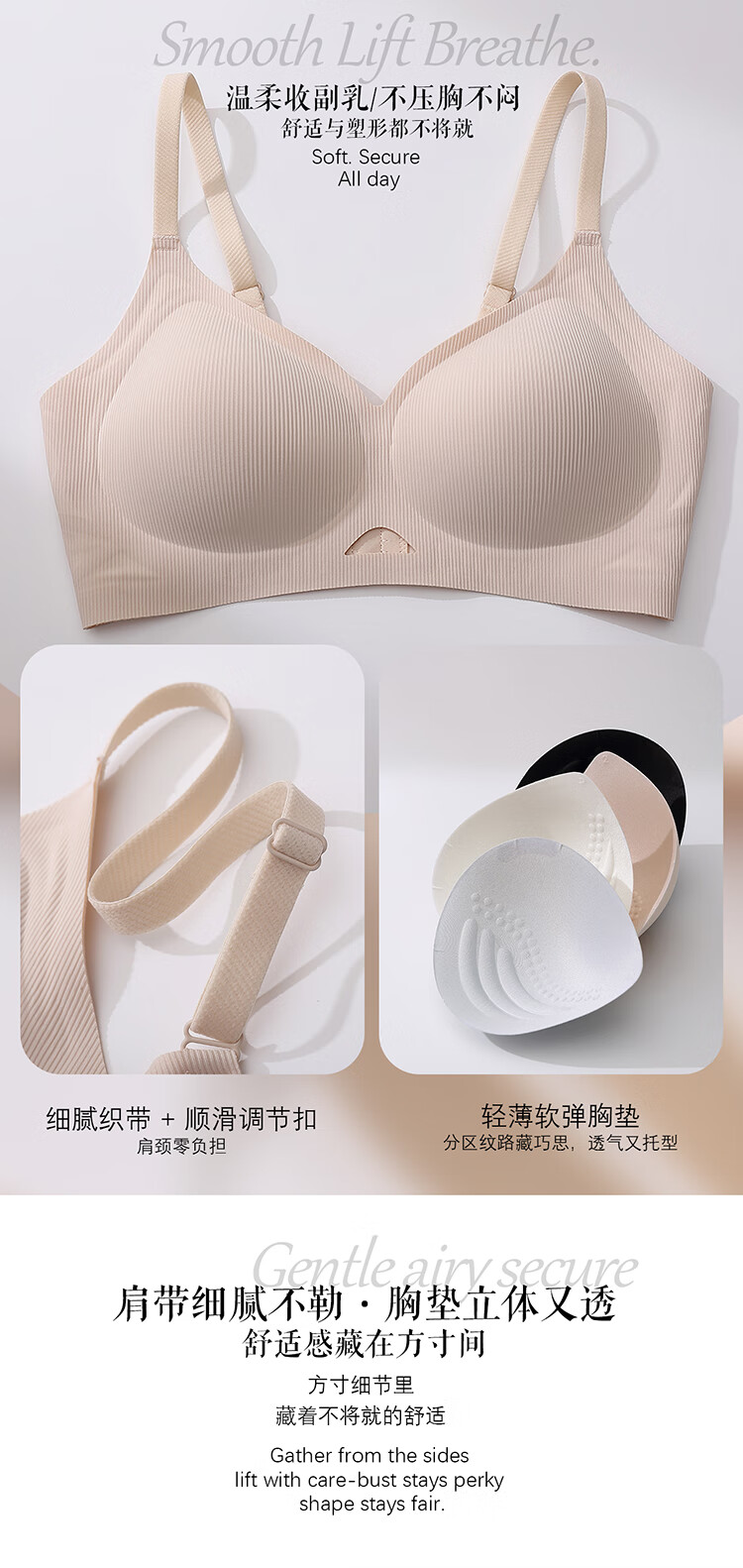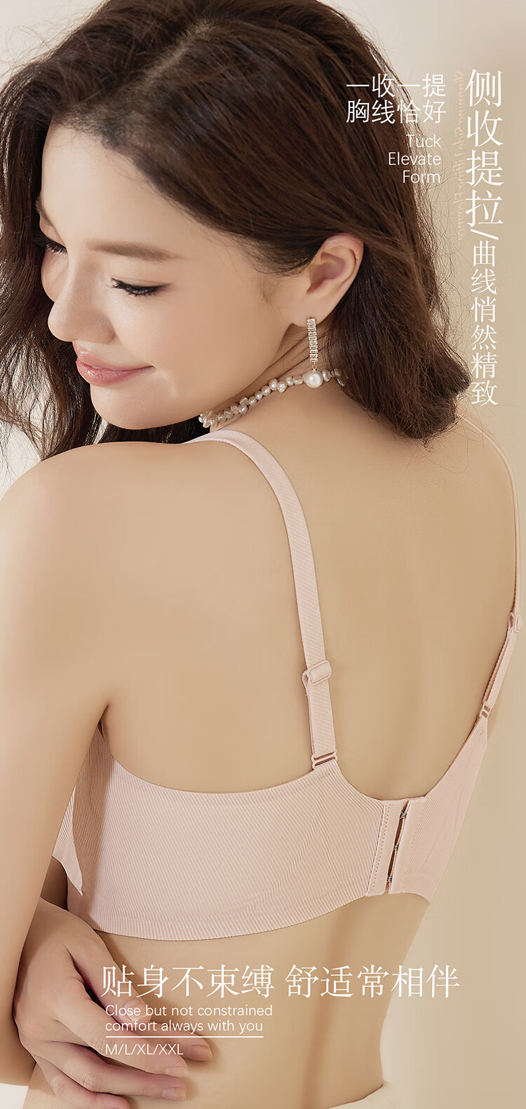 欧迪芬无痕内衣女无感透气轻薄聚拢上托收副乳胸罩无钢圈提拉防下垂文胸 香槟白+粉底液 L 建议体重105-120斤
