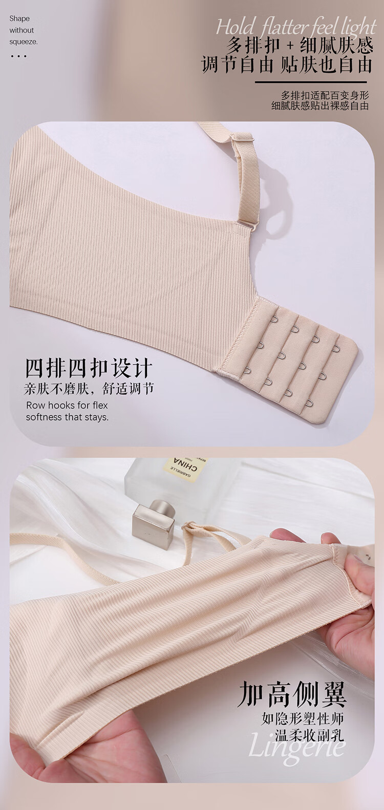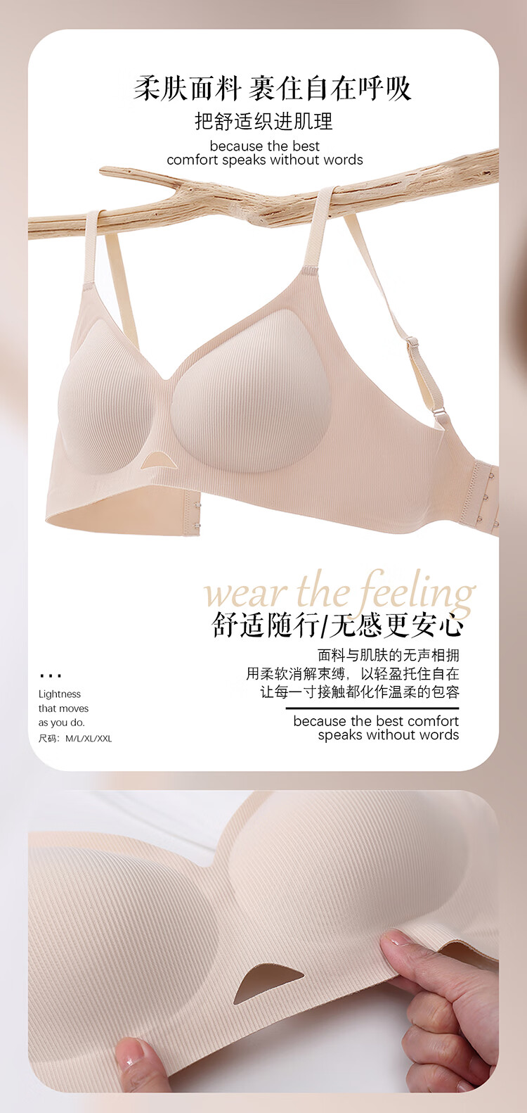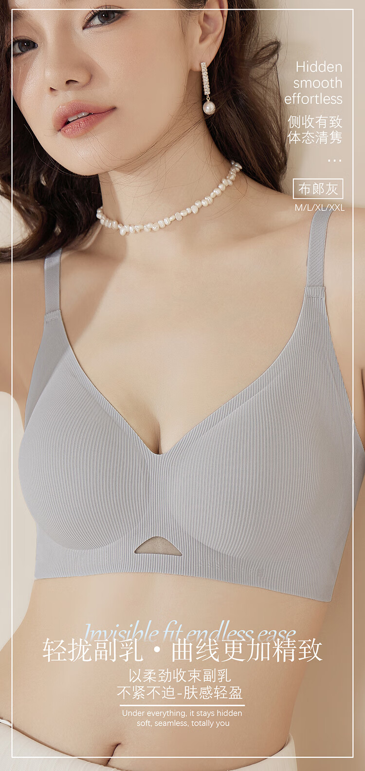 欧迪芬无痕内衣女无感透气轻薄聚拢上托收副乳胸罩无钢圈提拉防下垂文胸 香槟白+粉底液 L 建议体重105-120斤