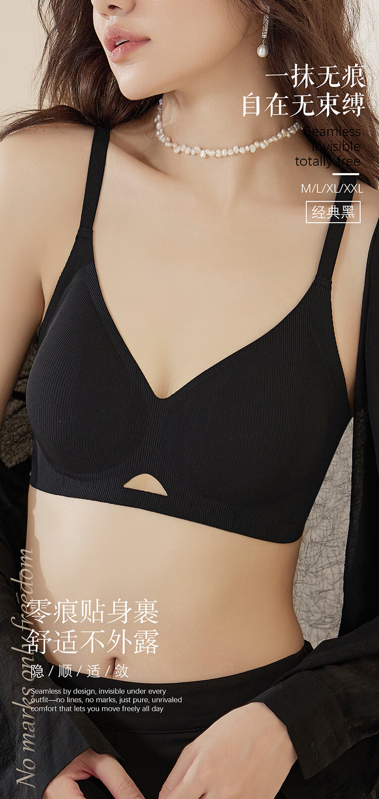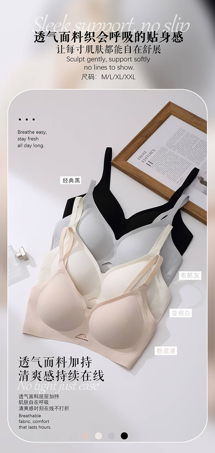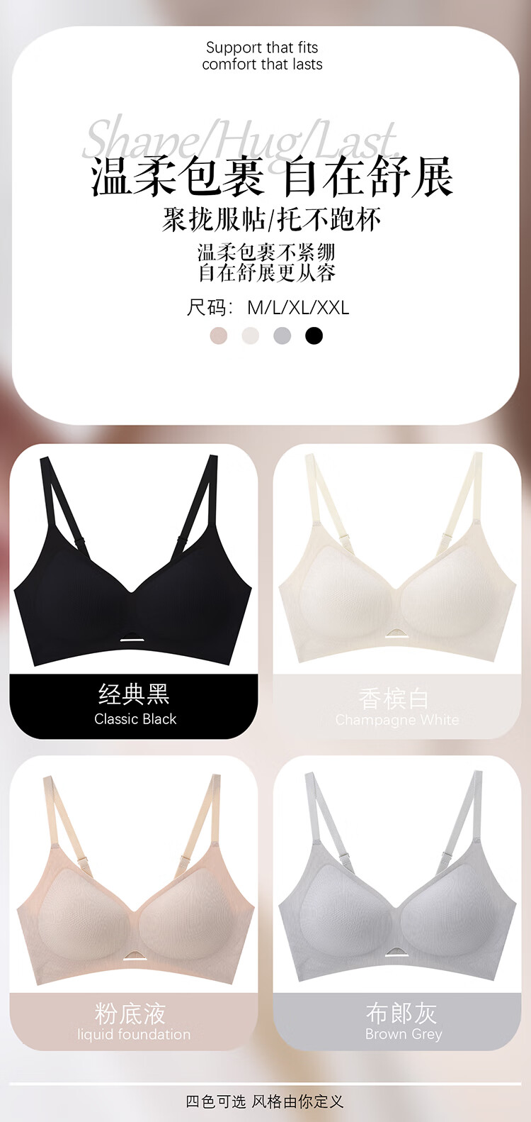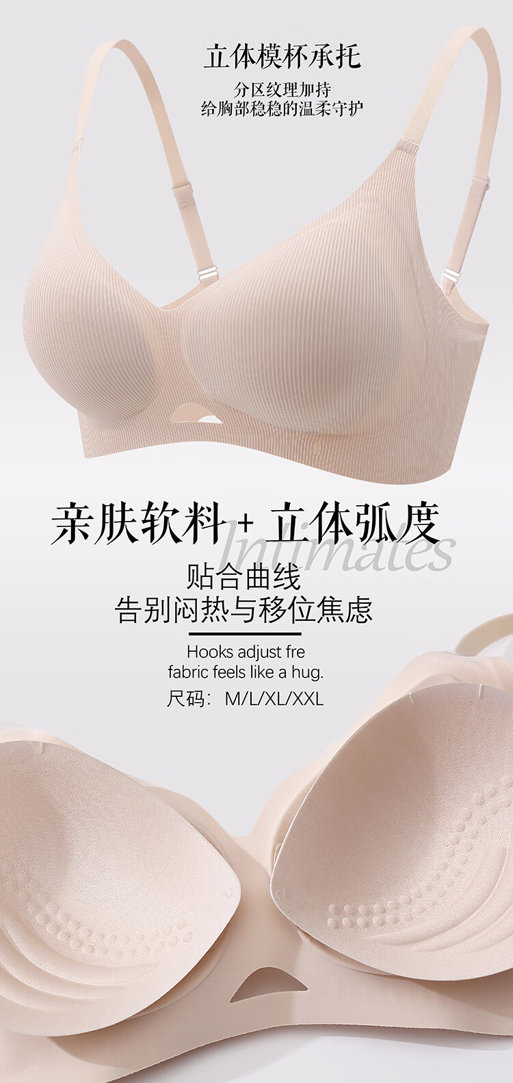 欧迪芬无痕内衣女无感透气轻薄聚拢上托收副乳胸罩无钢圈提拉防下垂文胸 香槟白+粉底液 L 建议体重105-120斤