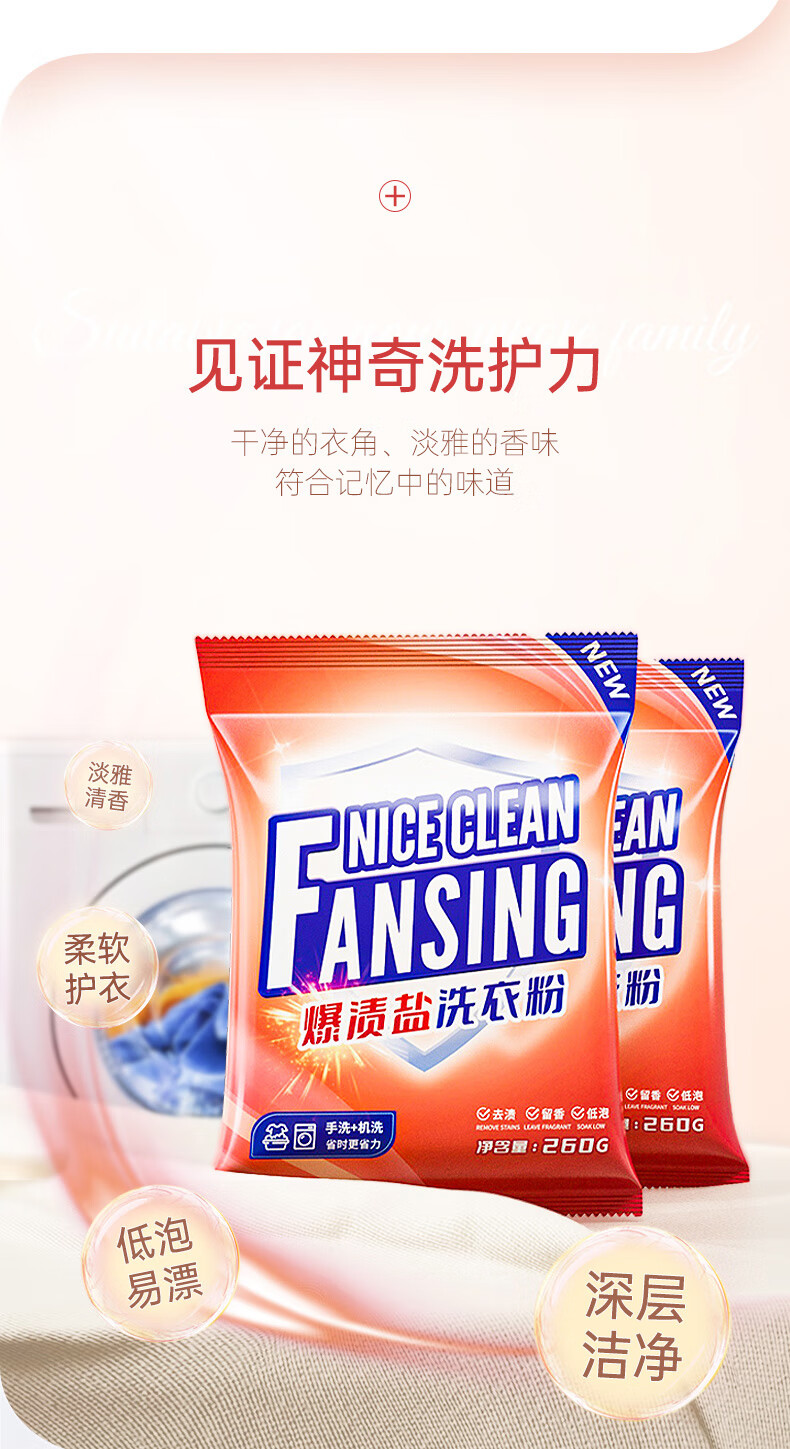 浣馨洗衣粉持久留香强力去污深层清洁家用去渍去油除菌除螨护衣不伤手 【深层去渍】260g*10袋