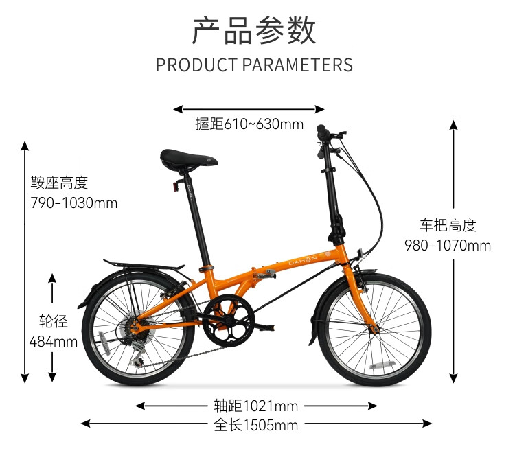 大行(DAHON)折叠自行车20英寸超轻6速通勤折叠单车HAT061 橙色