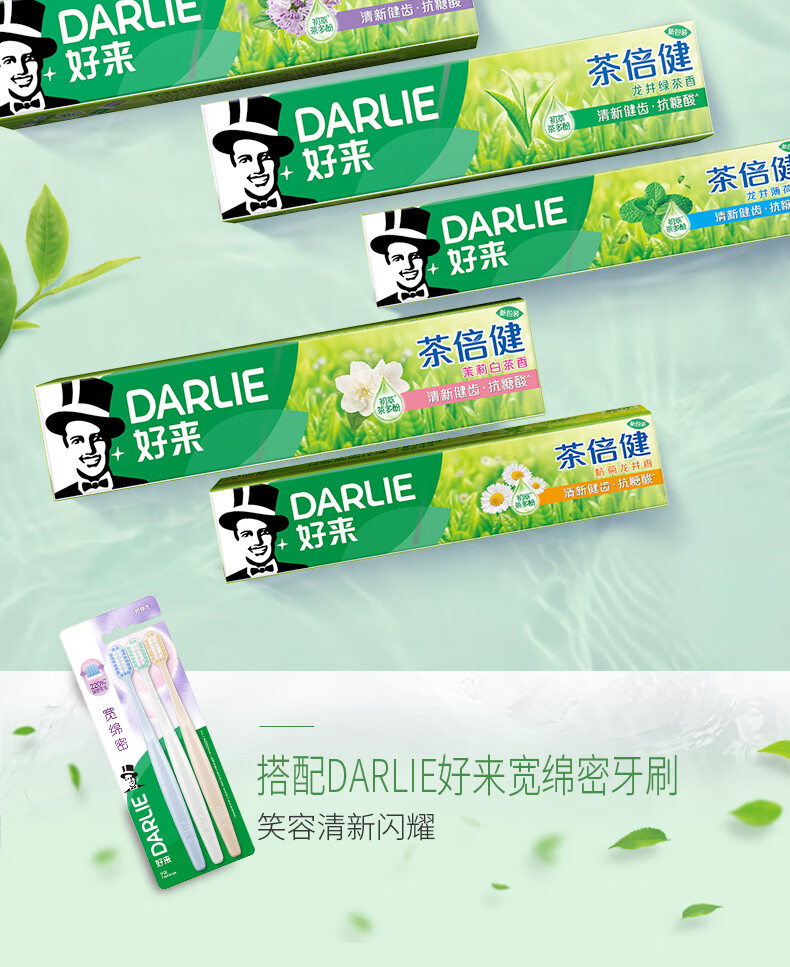 好来(DARLIE) 【白鹿推荐】原黑人牙膏薄荷茶倍健超白套装黄牙清新口气牙渍 【热销爆款】经典套装540G