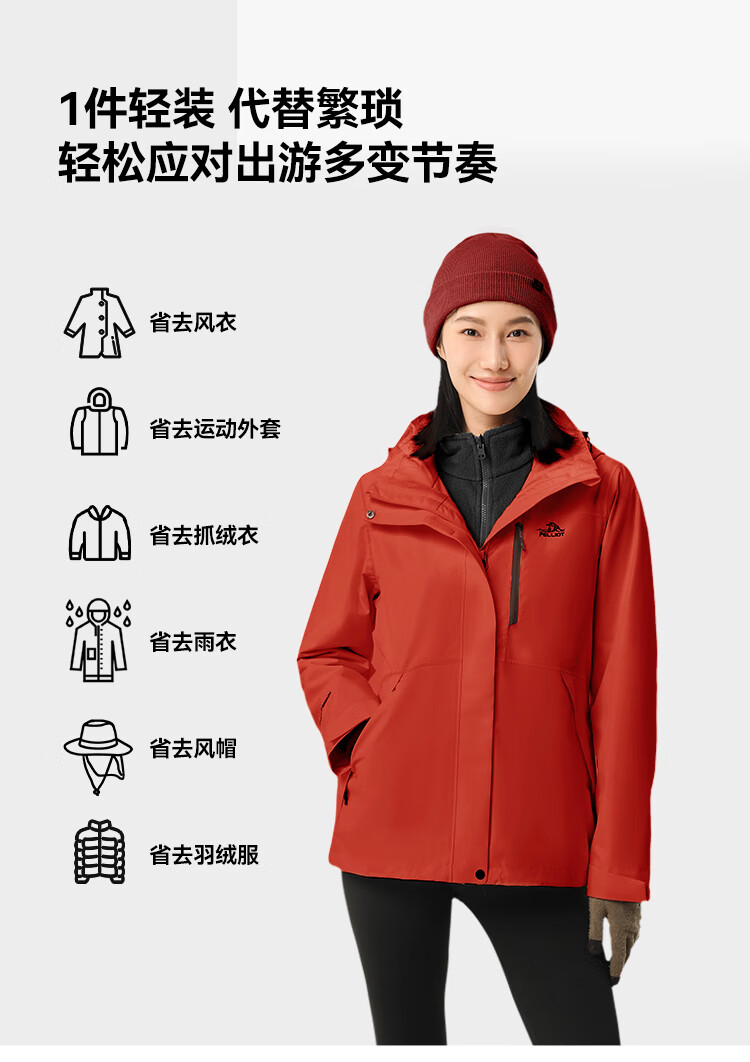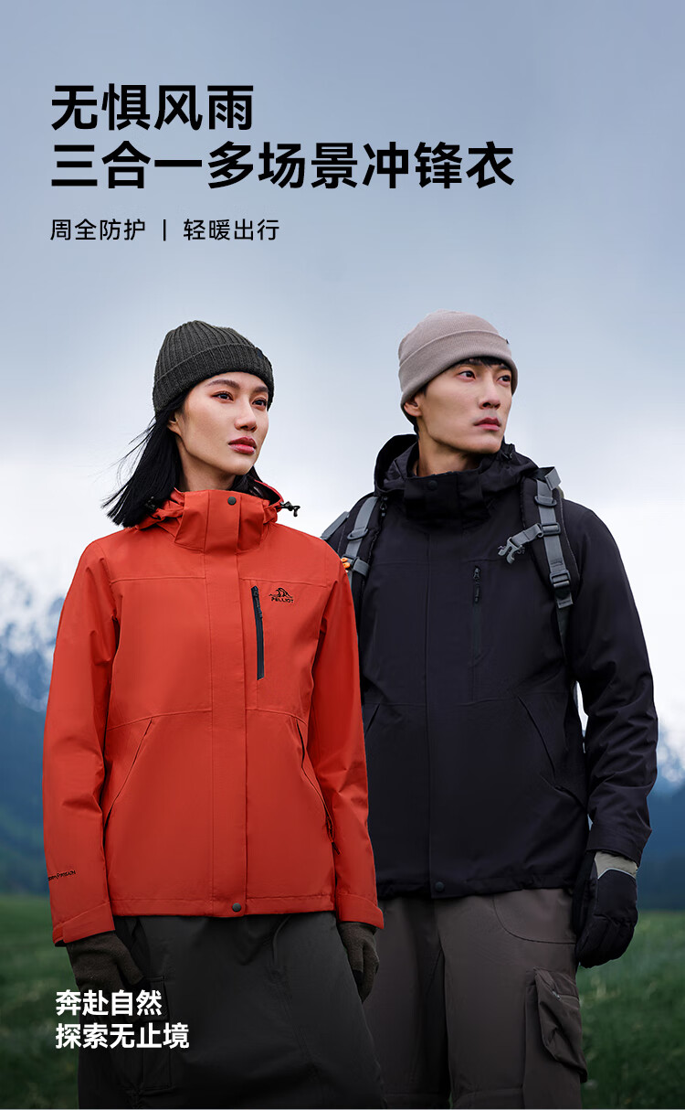 伯希和(Pelliot)【山野经典2.0】冲锋衣男女三合一秋冬保暖外套夹克12340106白S