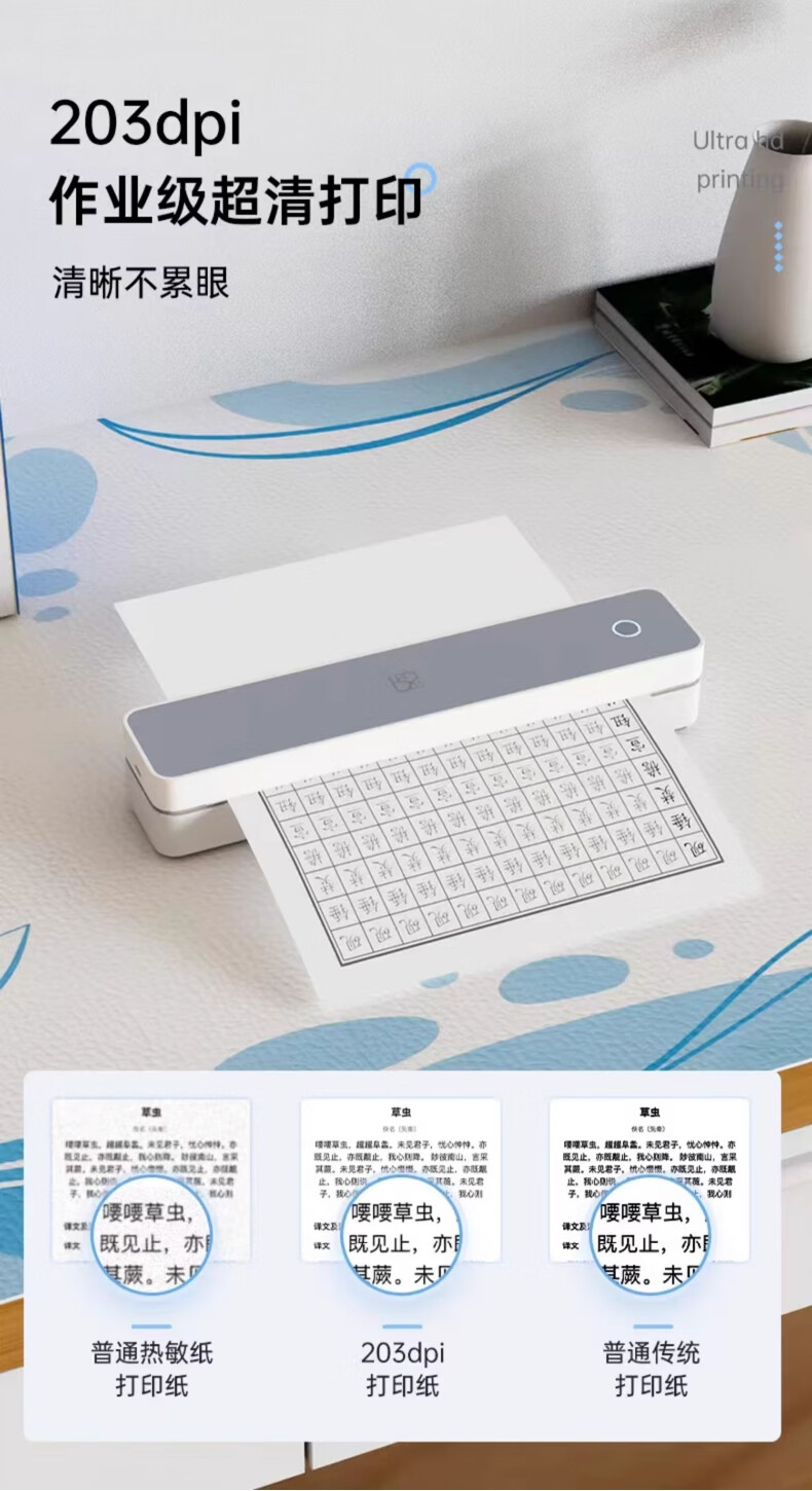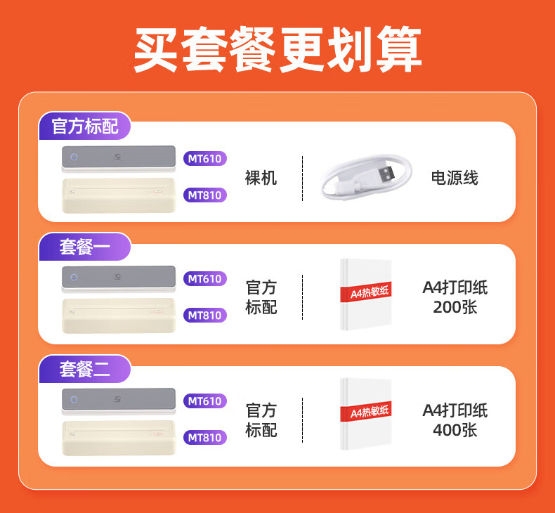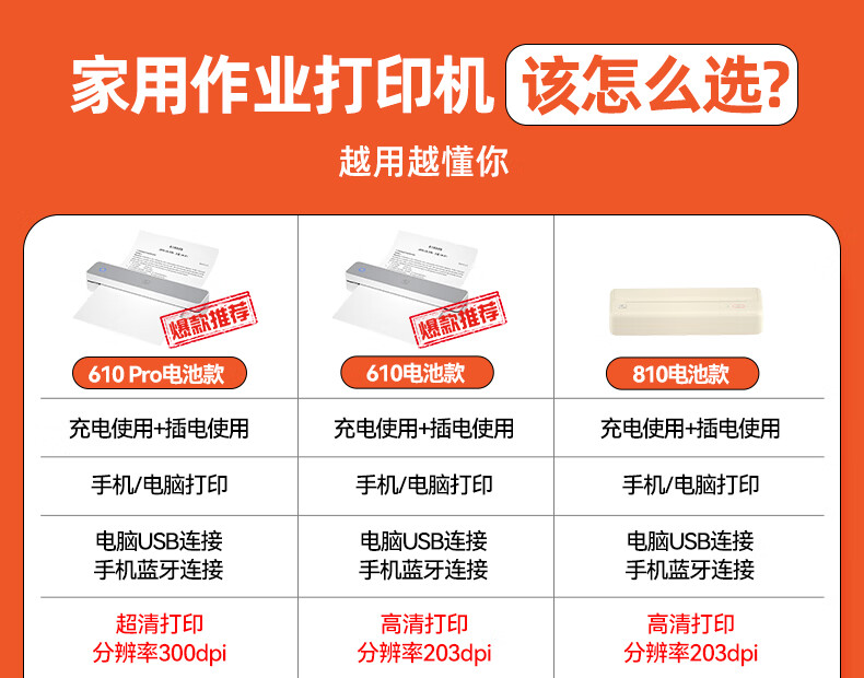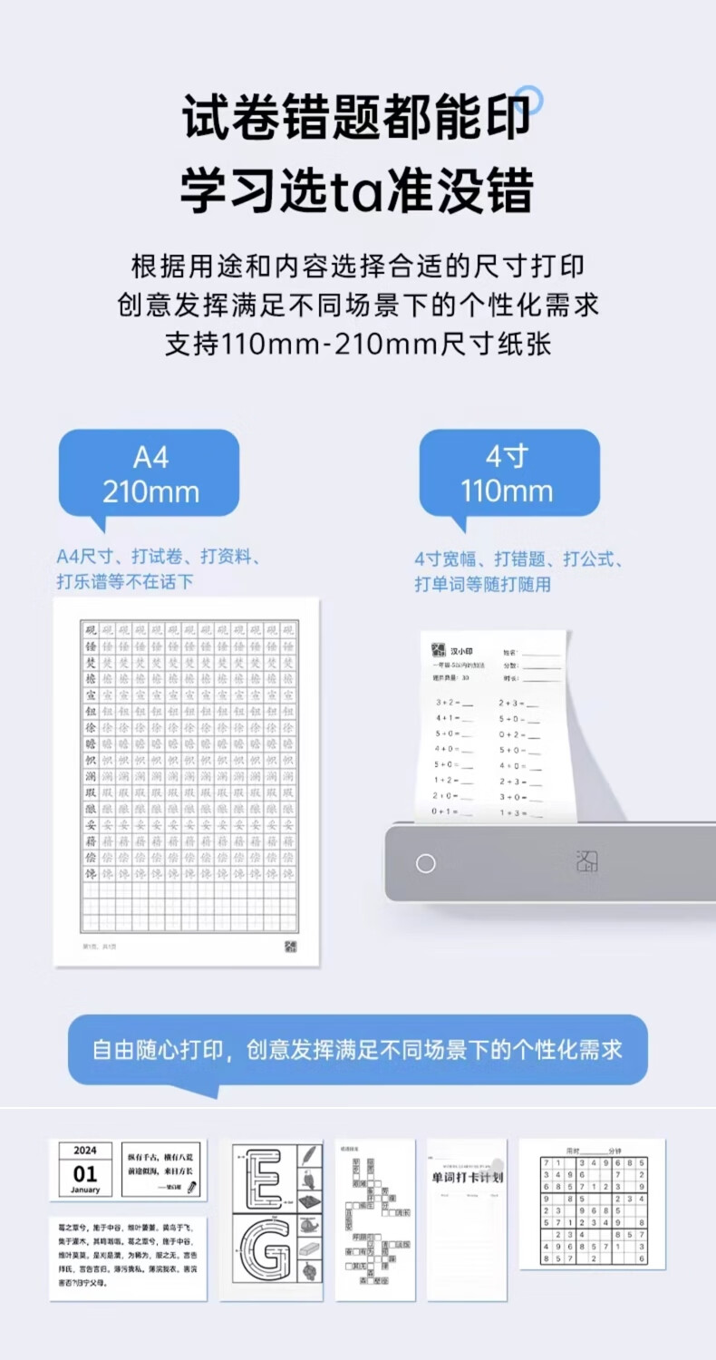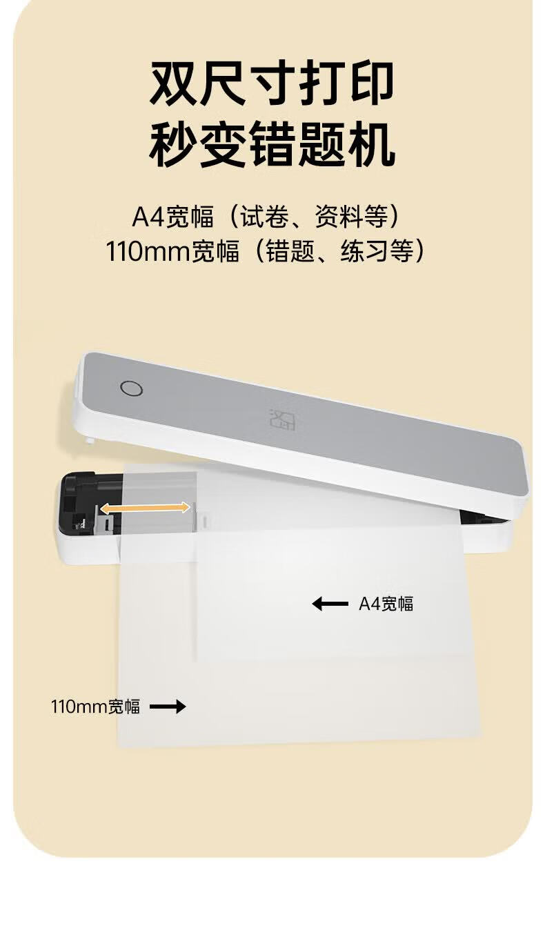 汉印(HPRT)MT610便携式打印机错题机家用作业手机无线蓝牙连接A4迷你消息试卷热敏无墨黑白学生家庭办公 MT610高清版【内置锂电池+免费学习题库】 官方标配【单机+赠10张打印纸】