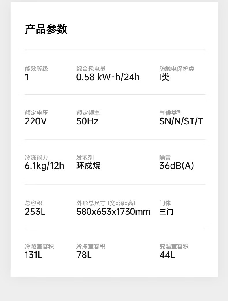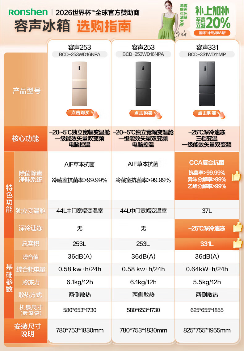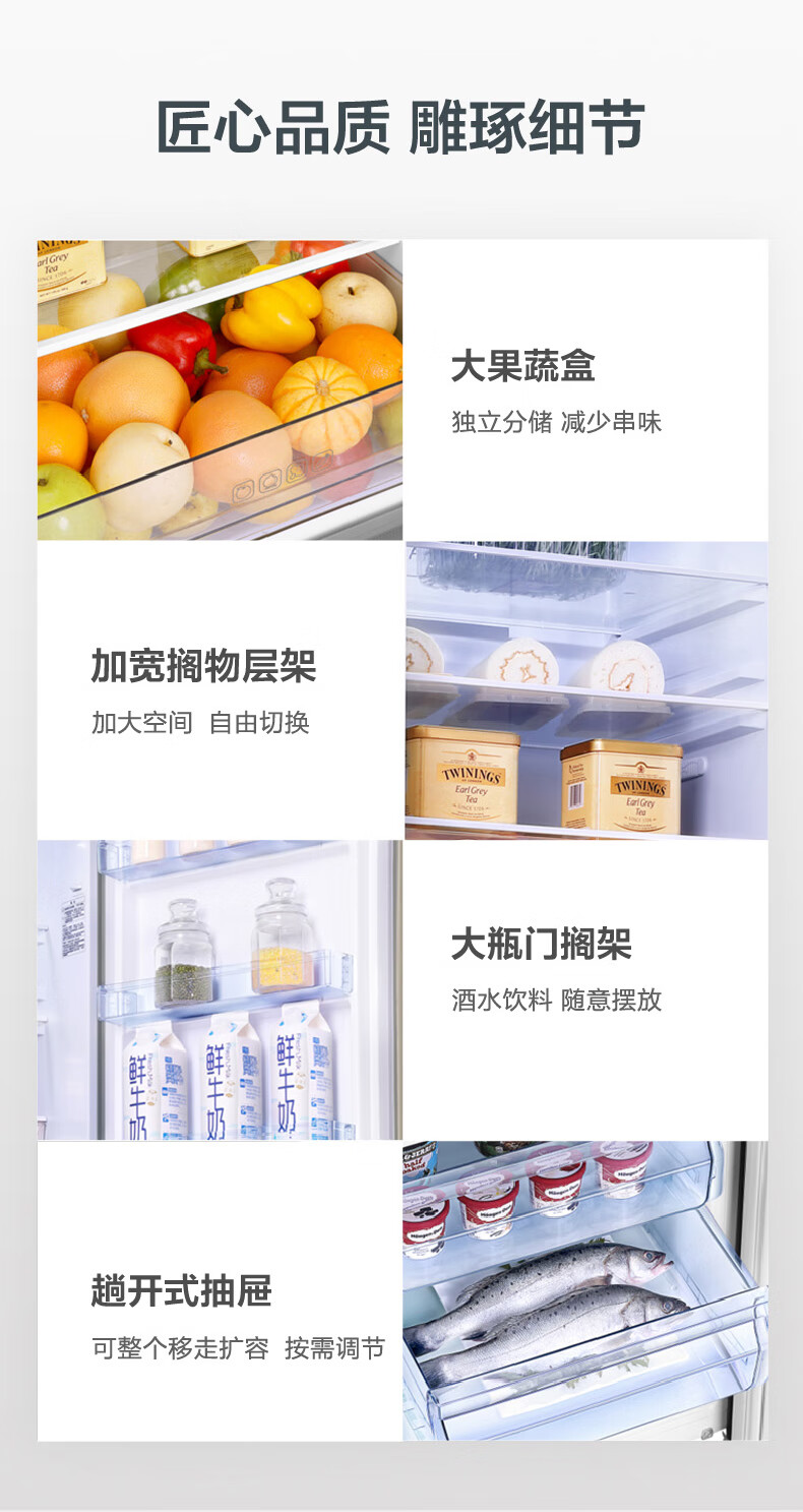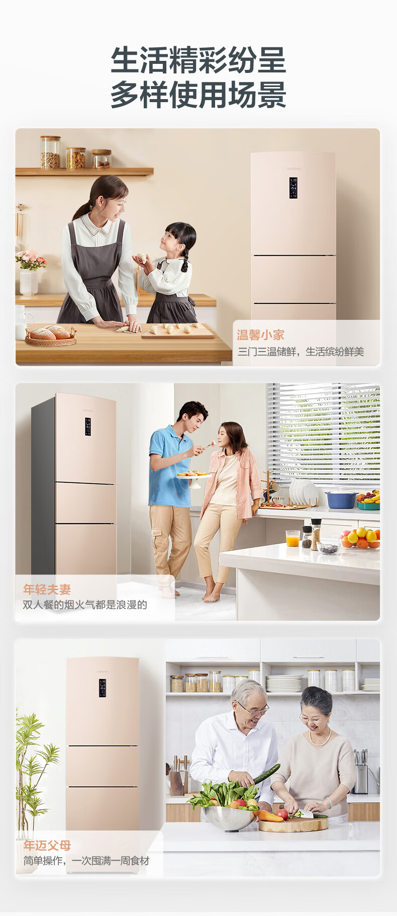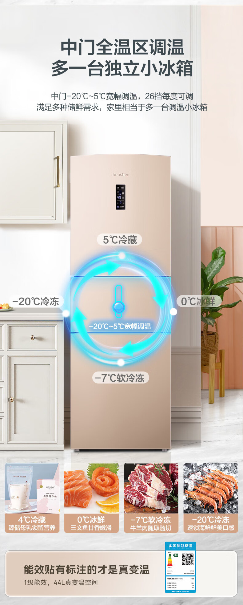容声253升一级能效三开门小电冰箱家用小型风冷无霜节能出租房宿舍BCD-253WD16NPA璀璨金家电国家补贴
