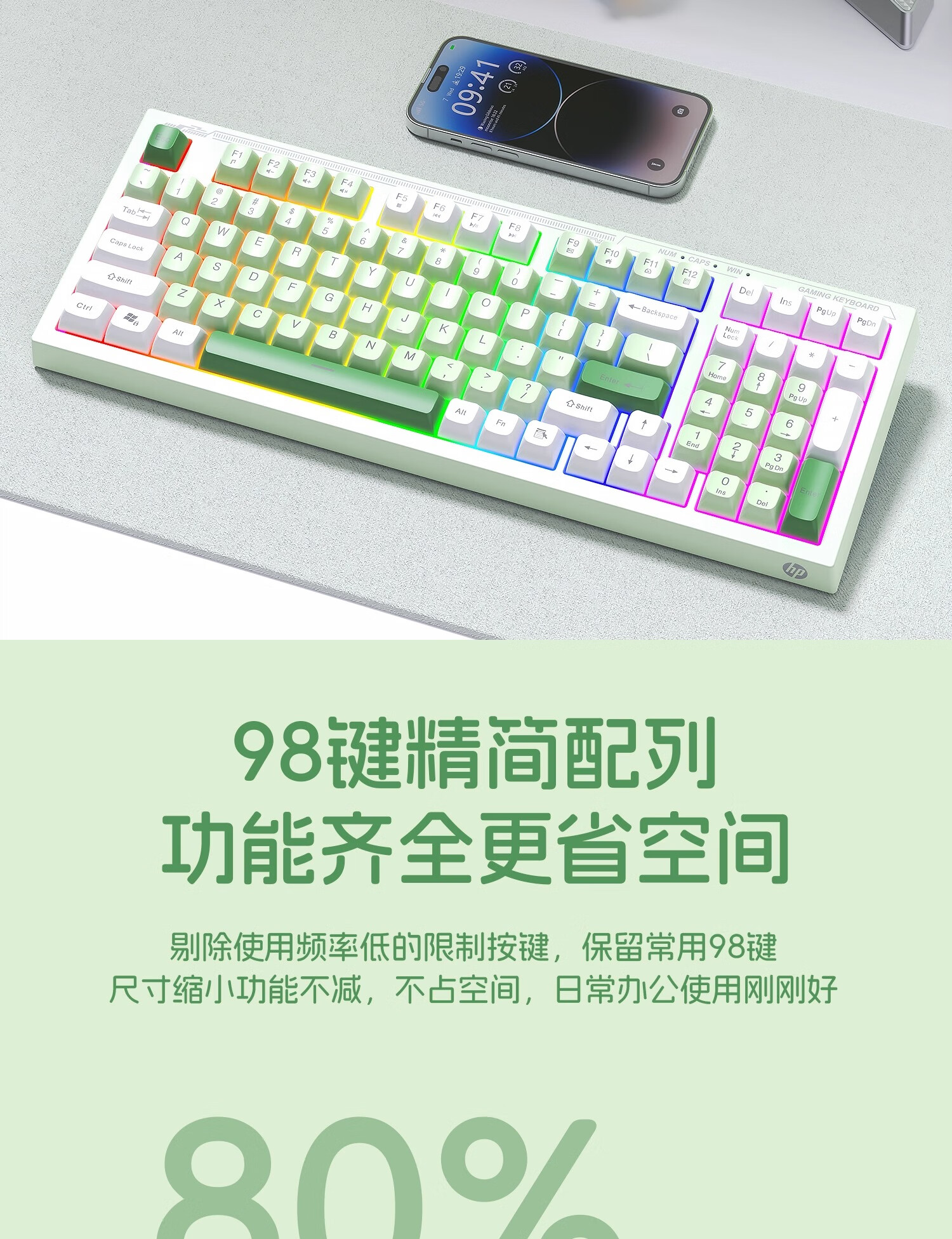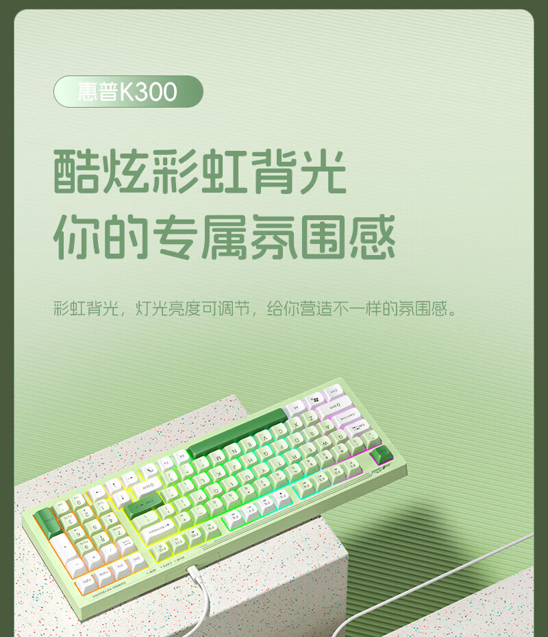 惠普(HP)K300真机械手感键盘高颜值 98客制化配列插拔有线笔记本电脑游戏键盘 轻音低噪耐磨办公键盘