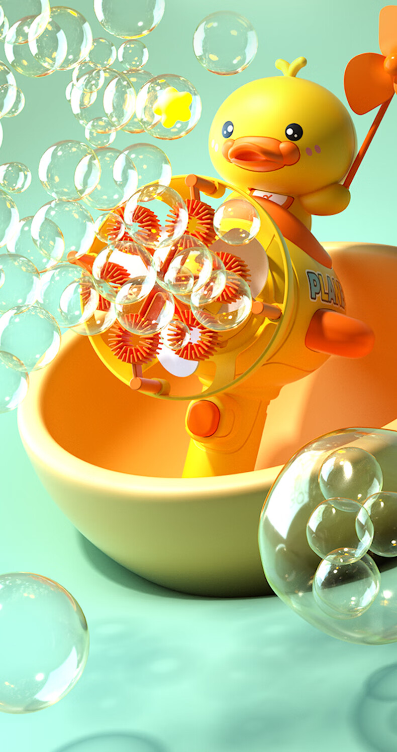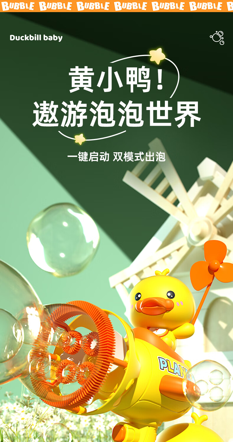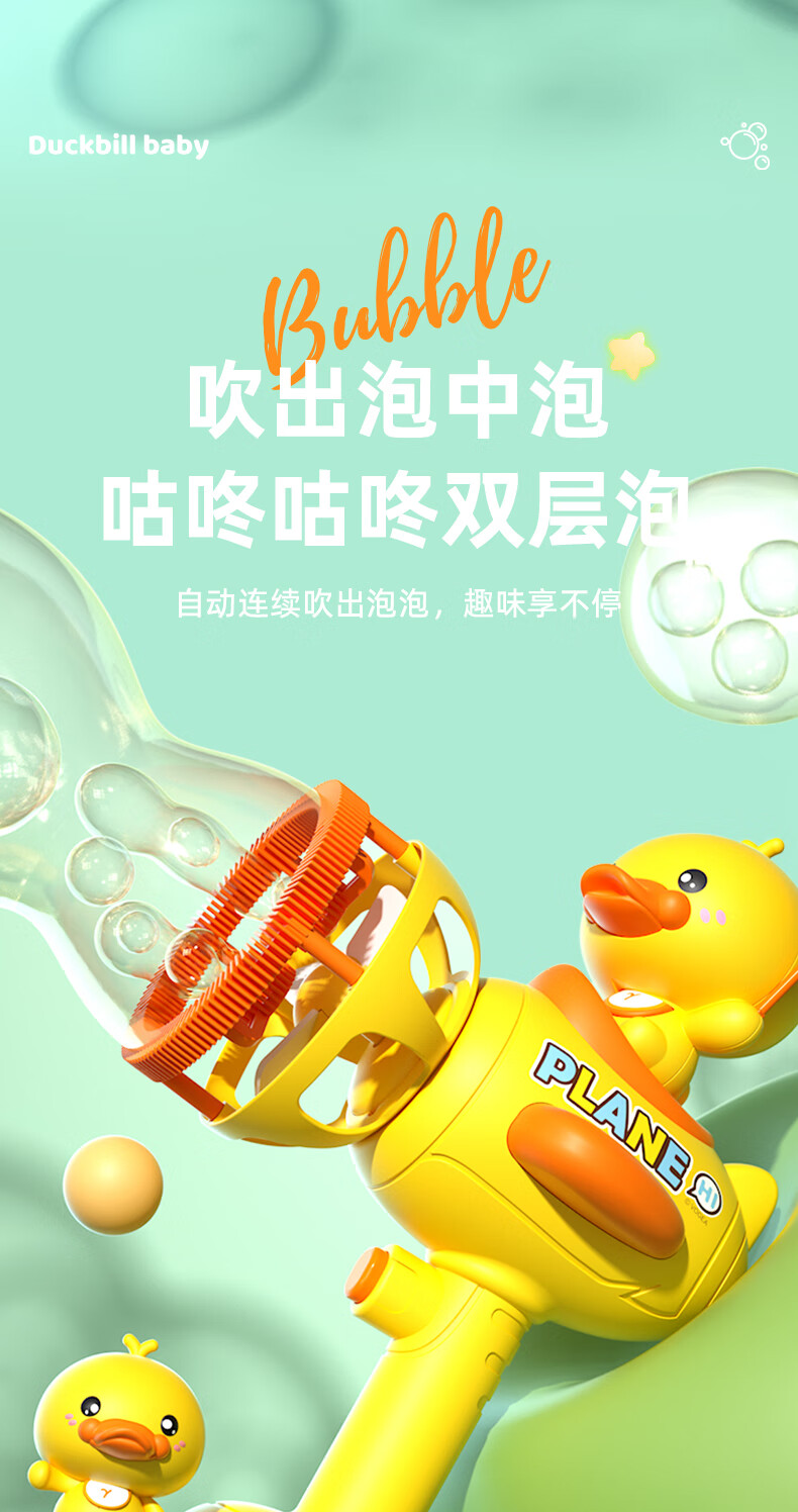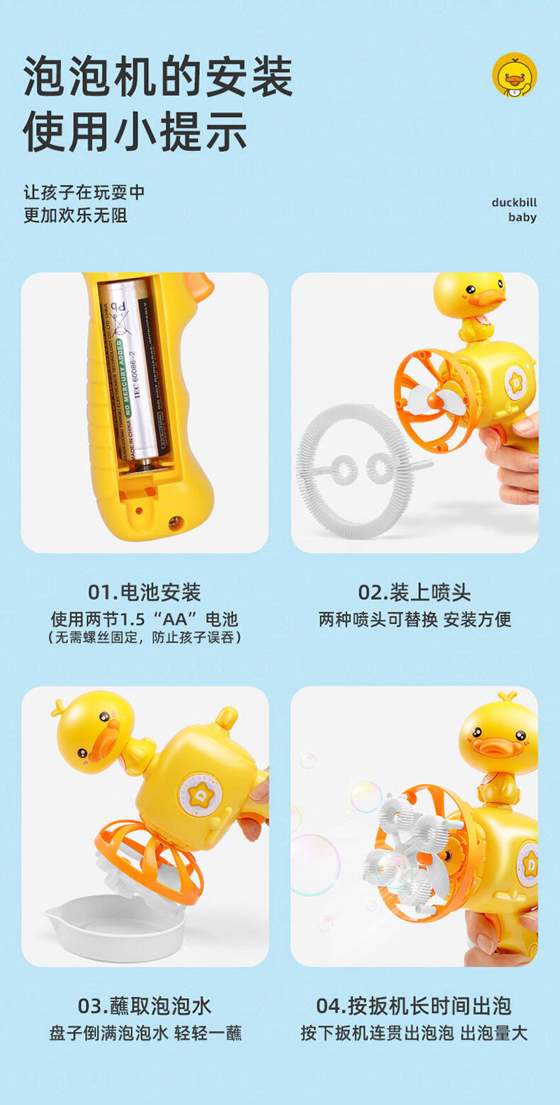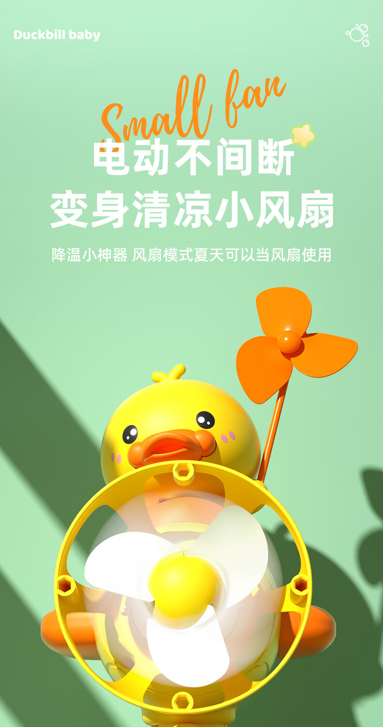 鑫思特(XST)儿童黄鸭风扇泡泡机1-3岁8电动吹大泡泡枪两用不漏水玩具生日礼物