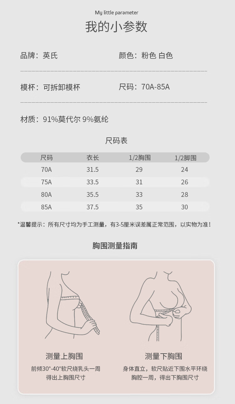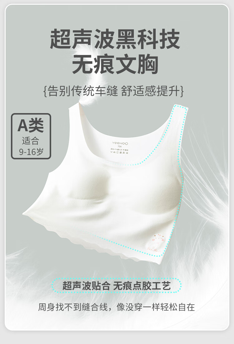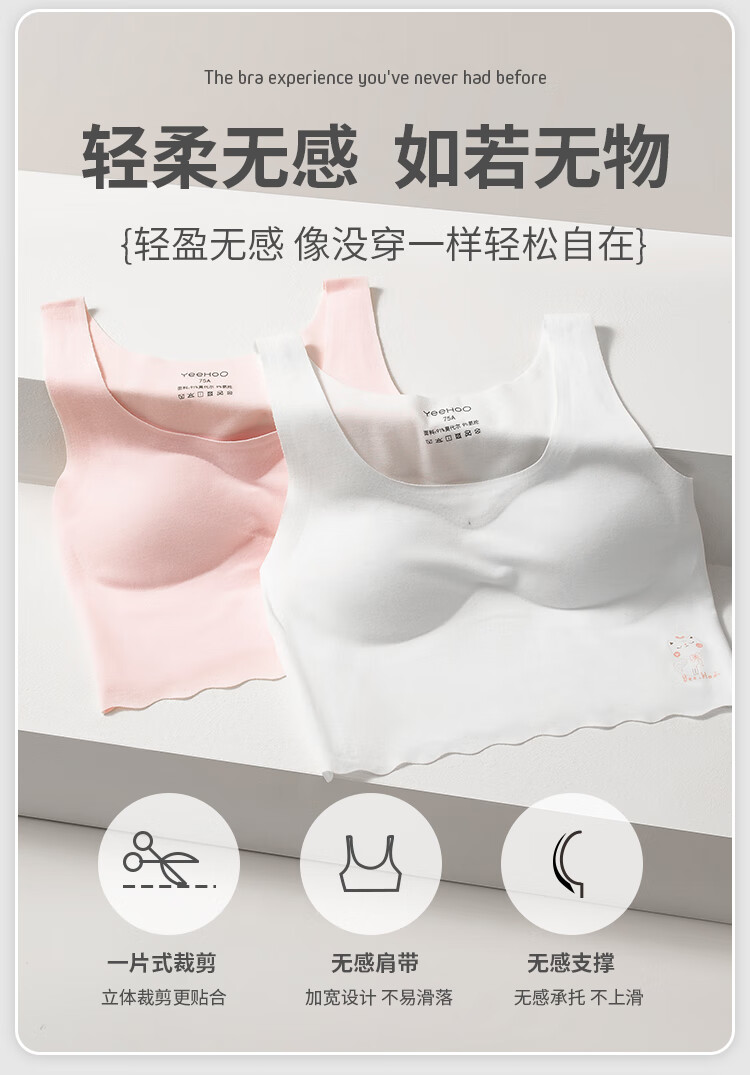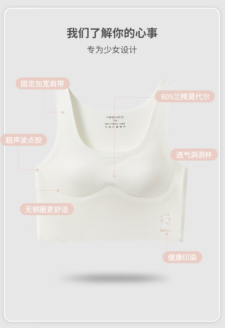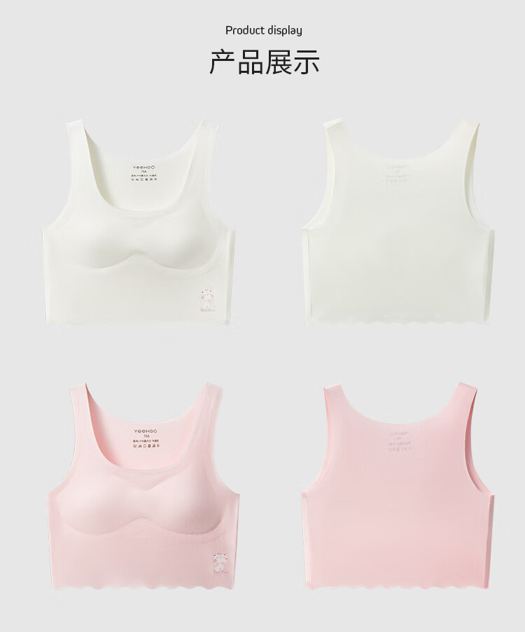 英氏莫代尔女童文胸学生发育期二阶段轻薄透气内衣打底背心粉色 80A
