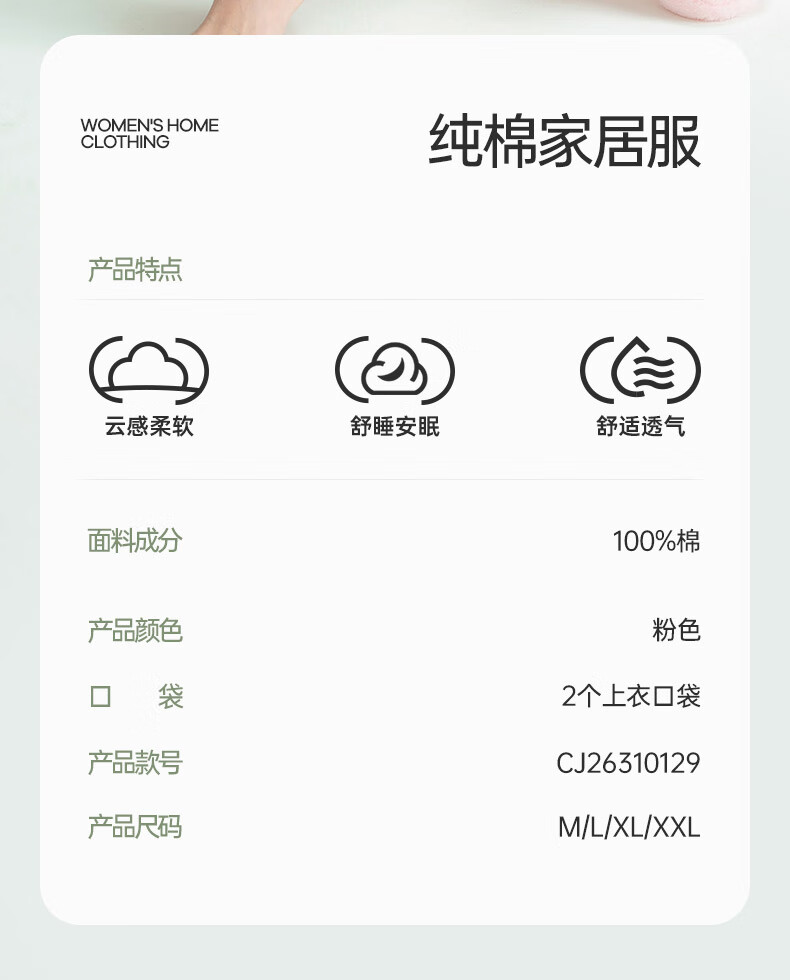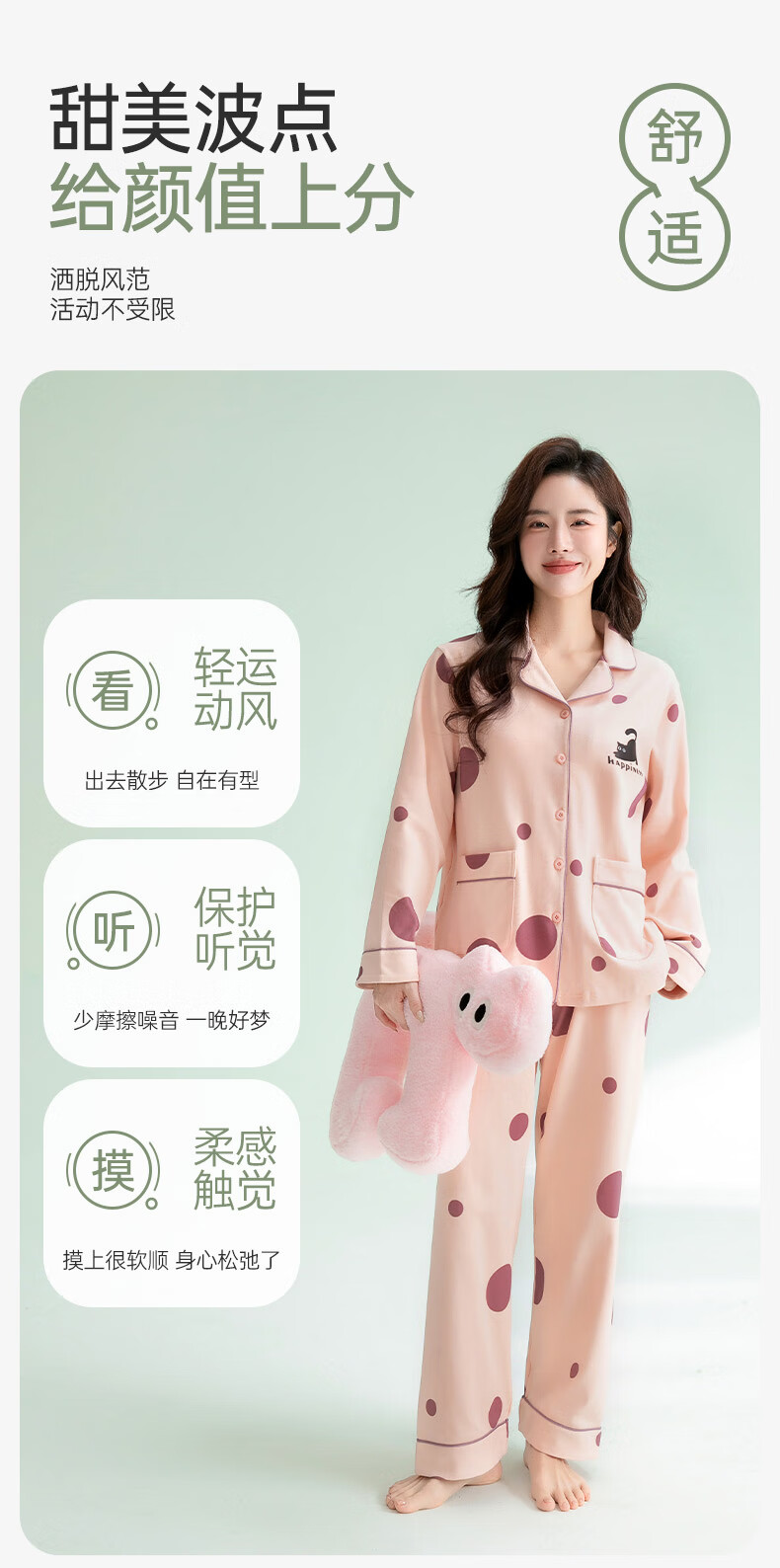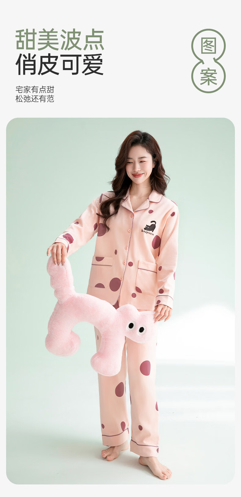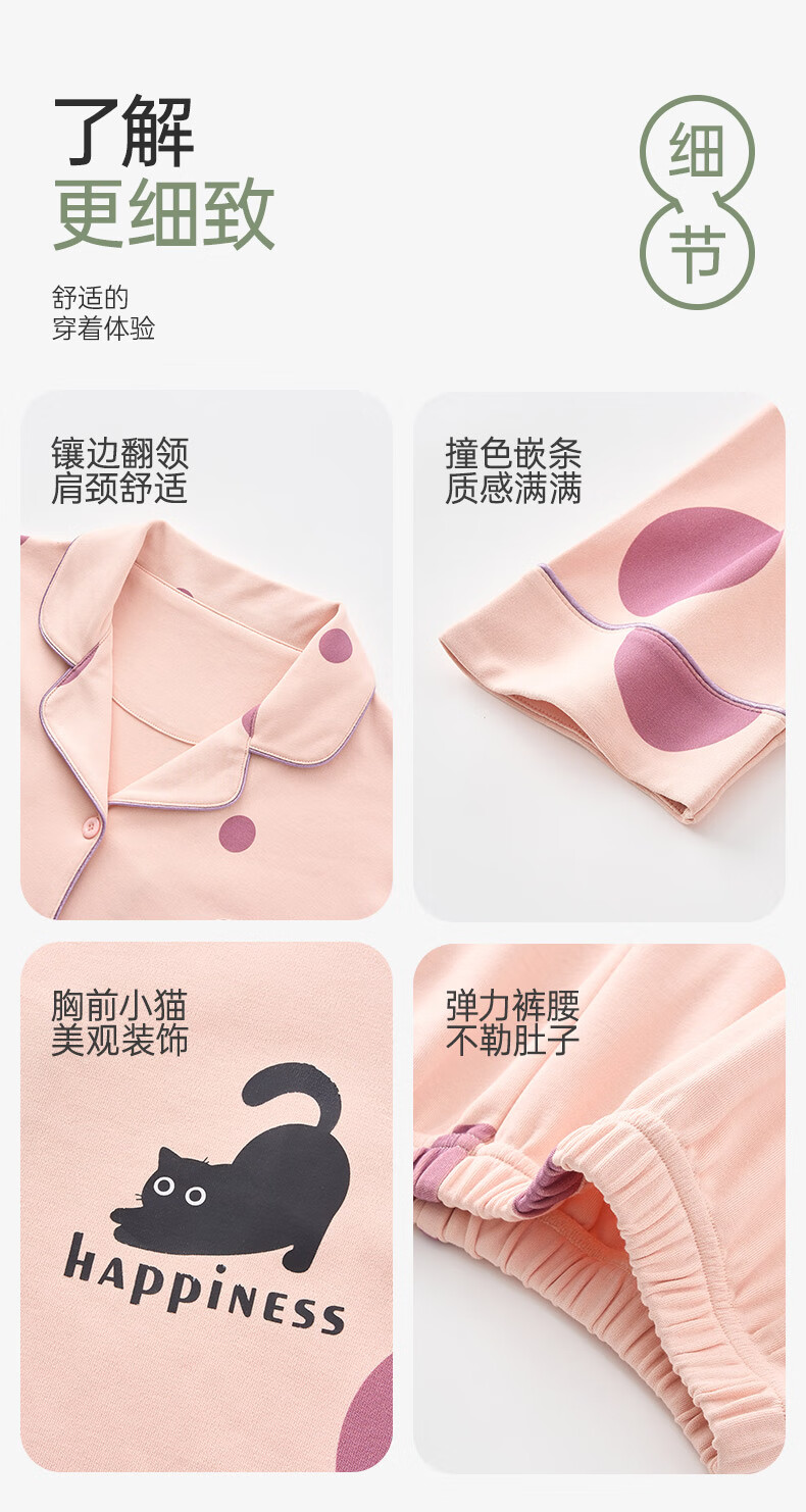 芬腾可安睡衣女【100%纯棉】2025春秋新款翻领长袖套装女士睡衣家居服 粉色 2XL