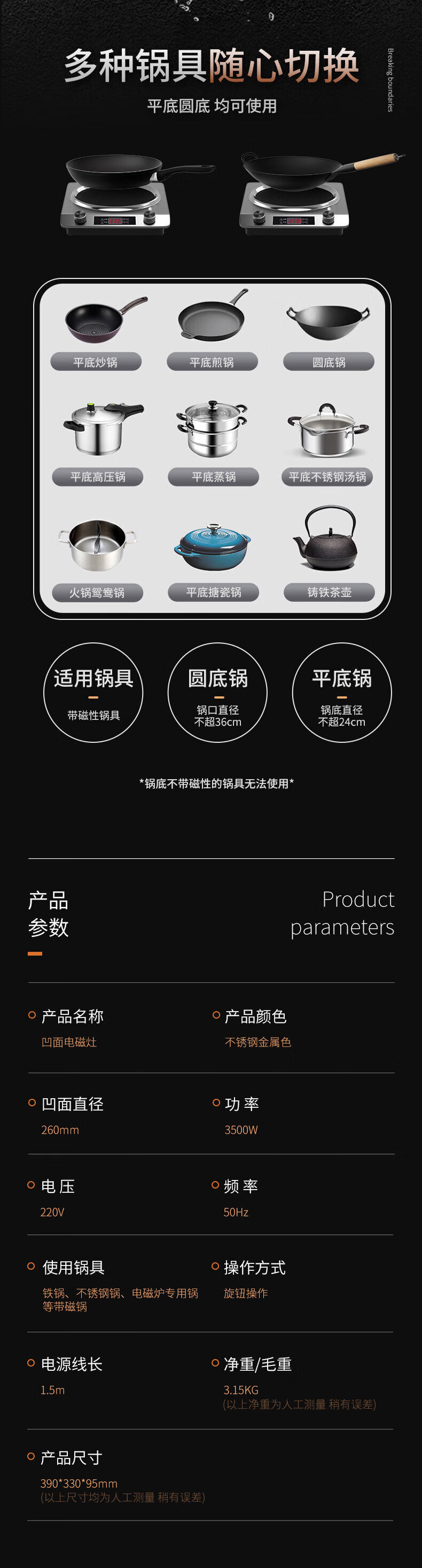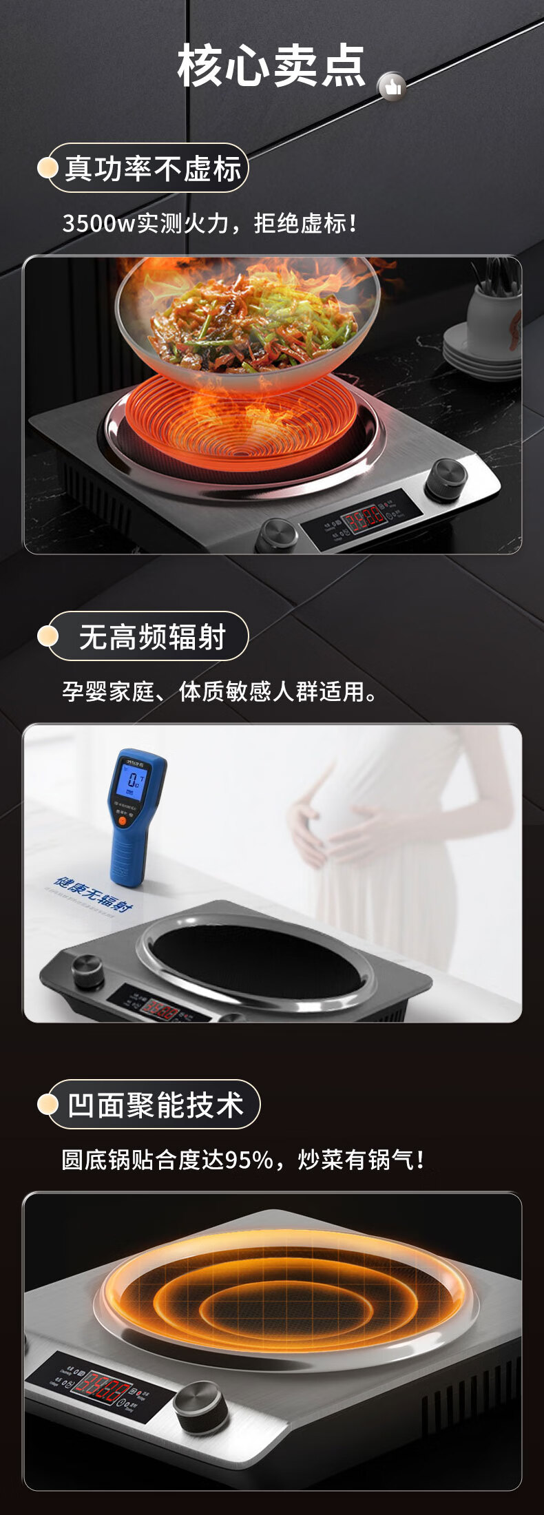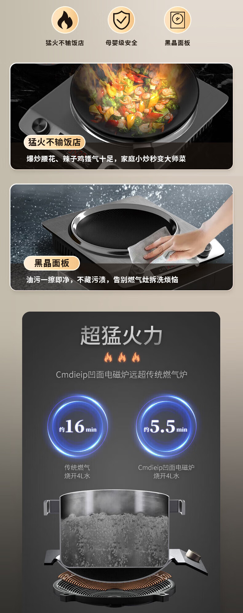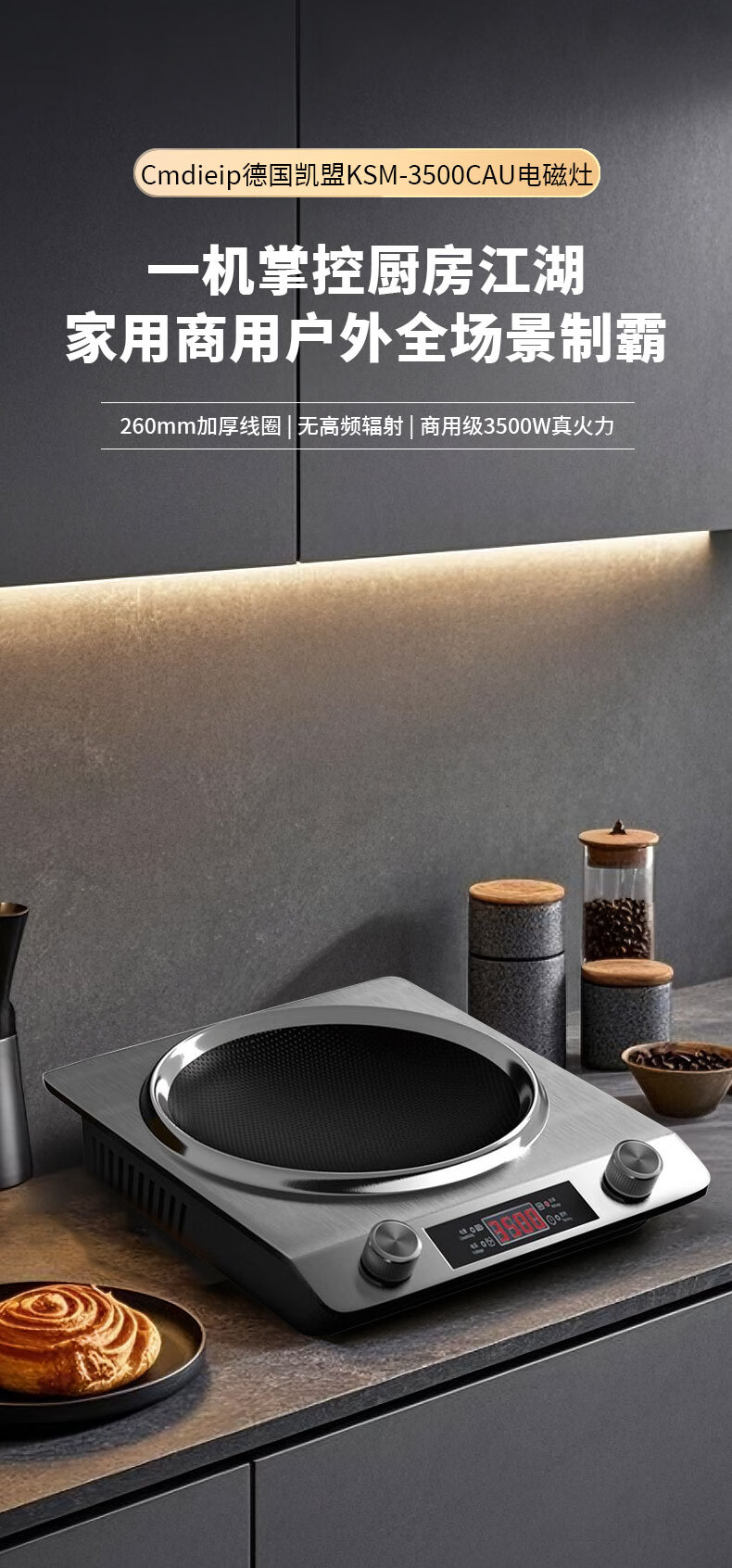 Cmdieip德国凯盟家用凹面电磁炉3500W实测大功率 超薄大锅灶一体全套平面电池炉电磁炉灶炒菜锅政府补贴