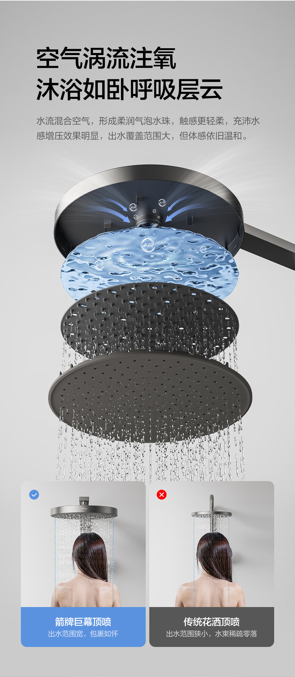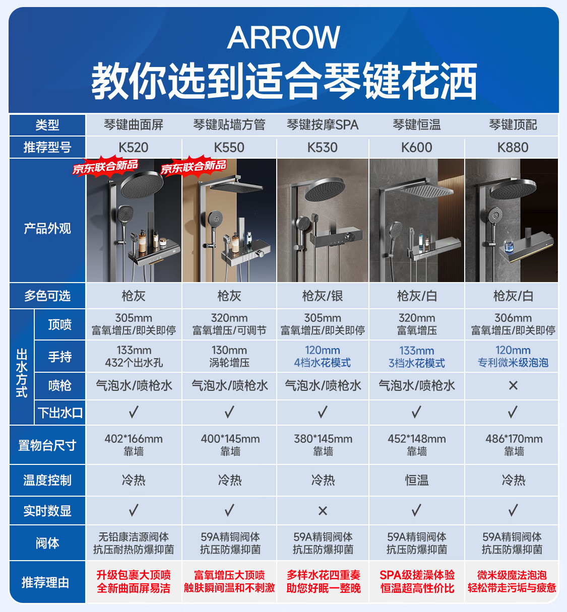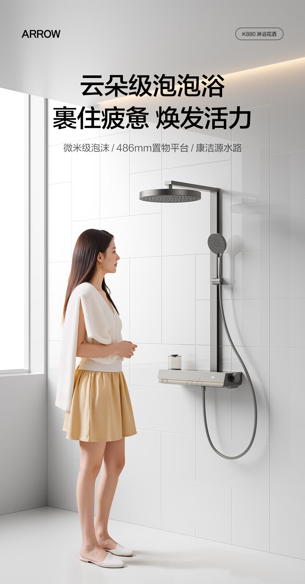 箭牌(ARROW)K880魔法泡泡琴键数显淋浴花洒套装家用多功能花洒AE33900GGW