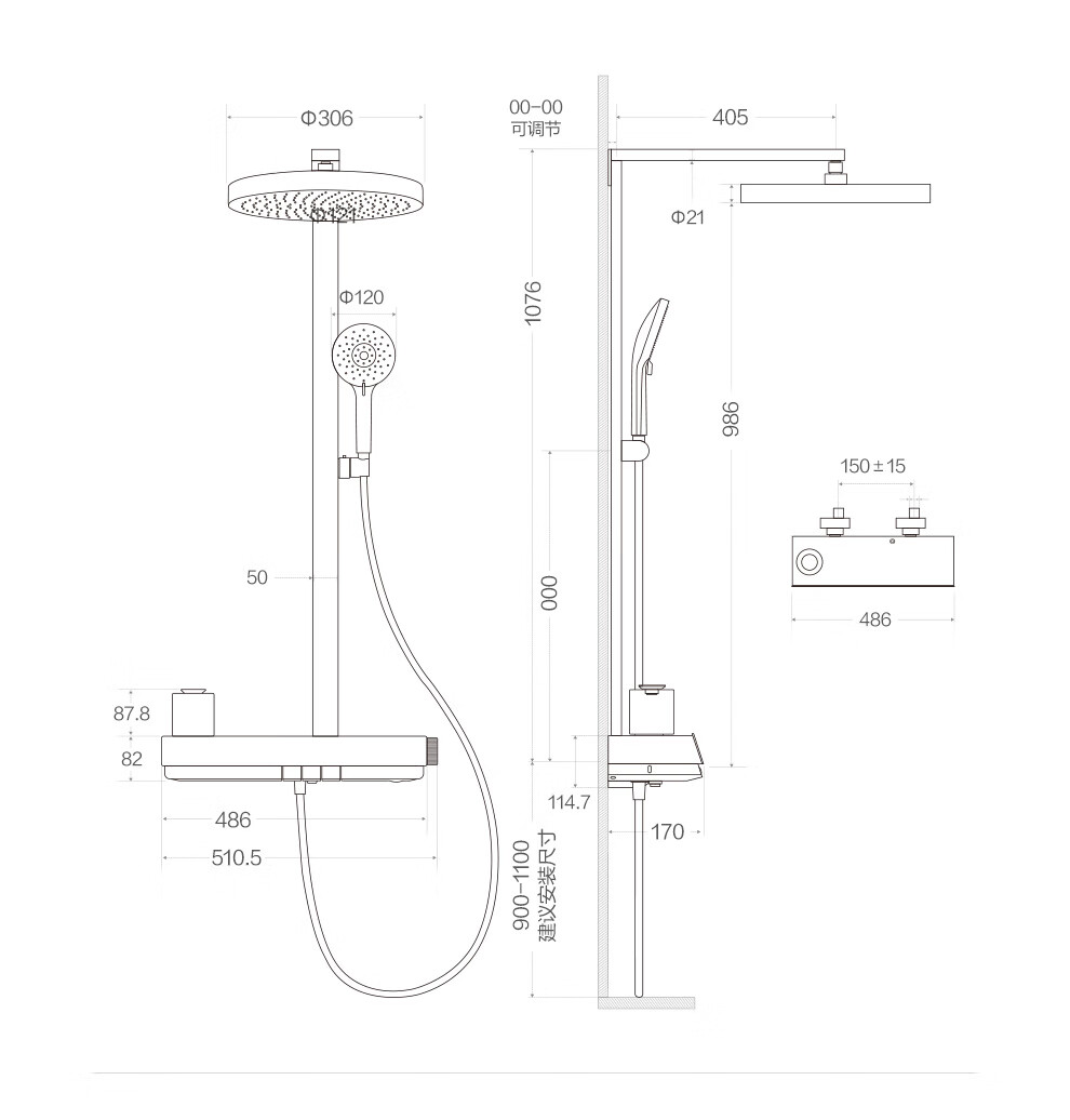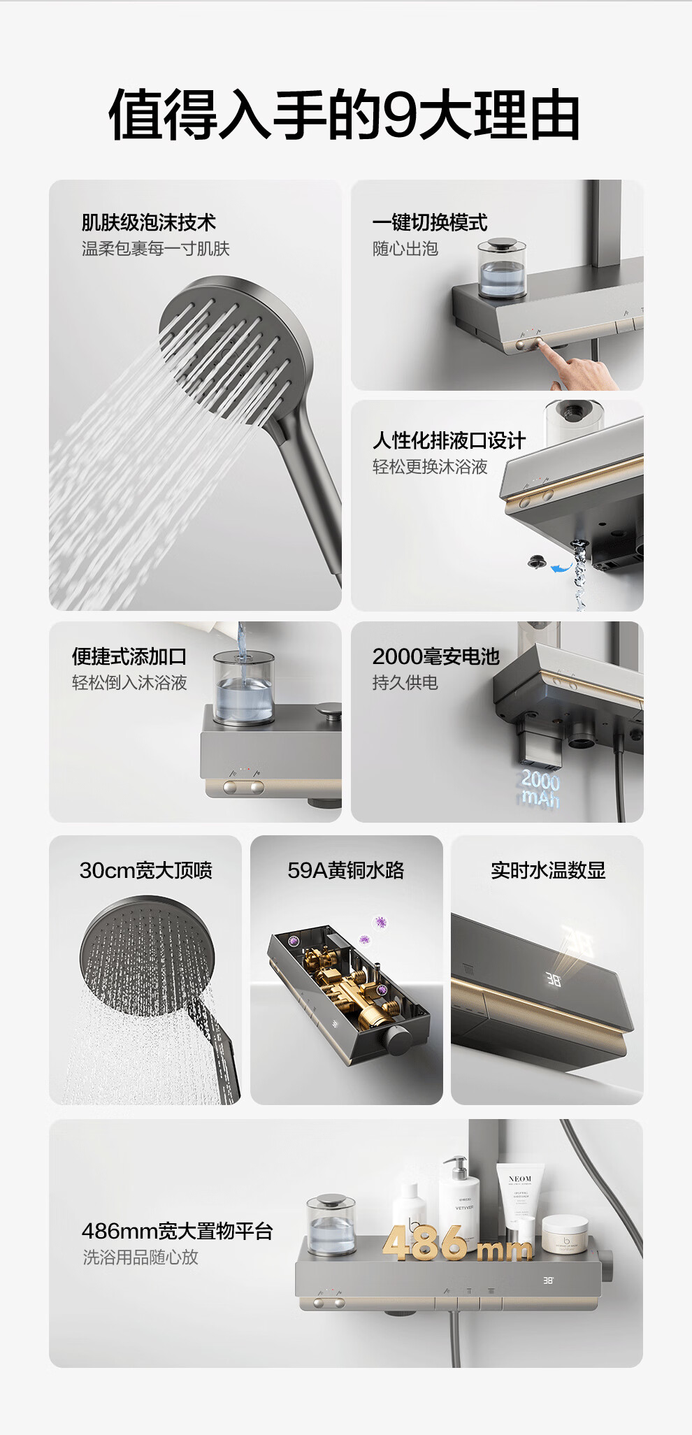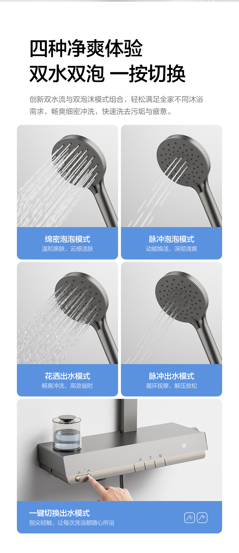 箭牌(ARROW)K880魔法泡泡琴键数显淋浴花洒套装家用多功能花洒AE33900GGW