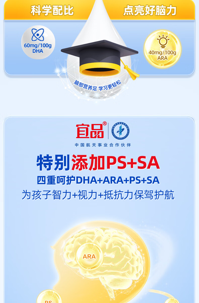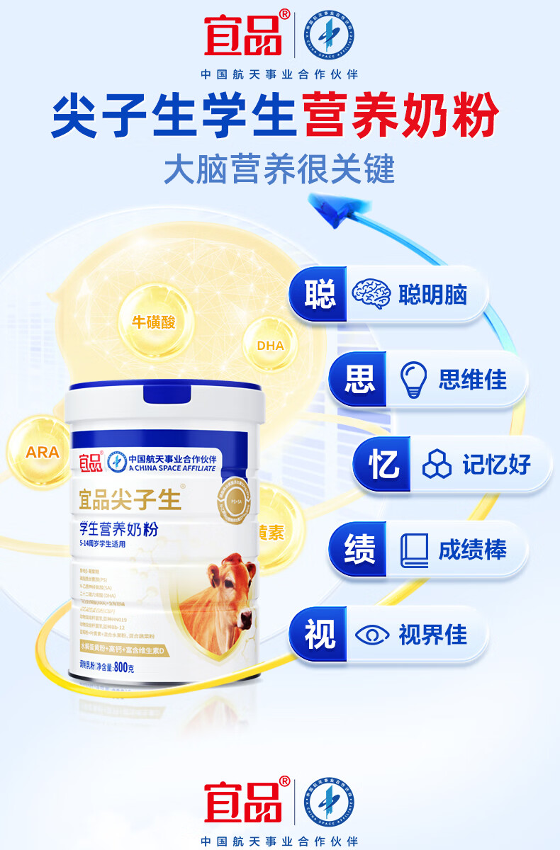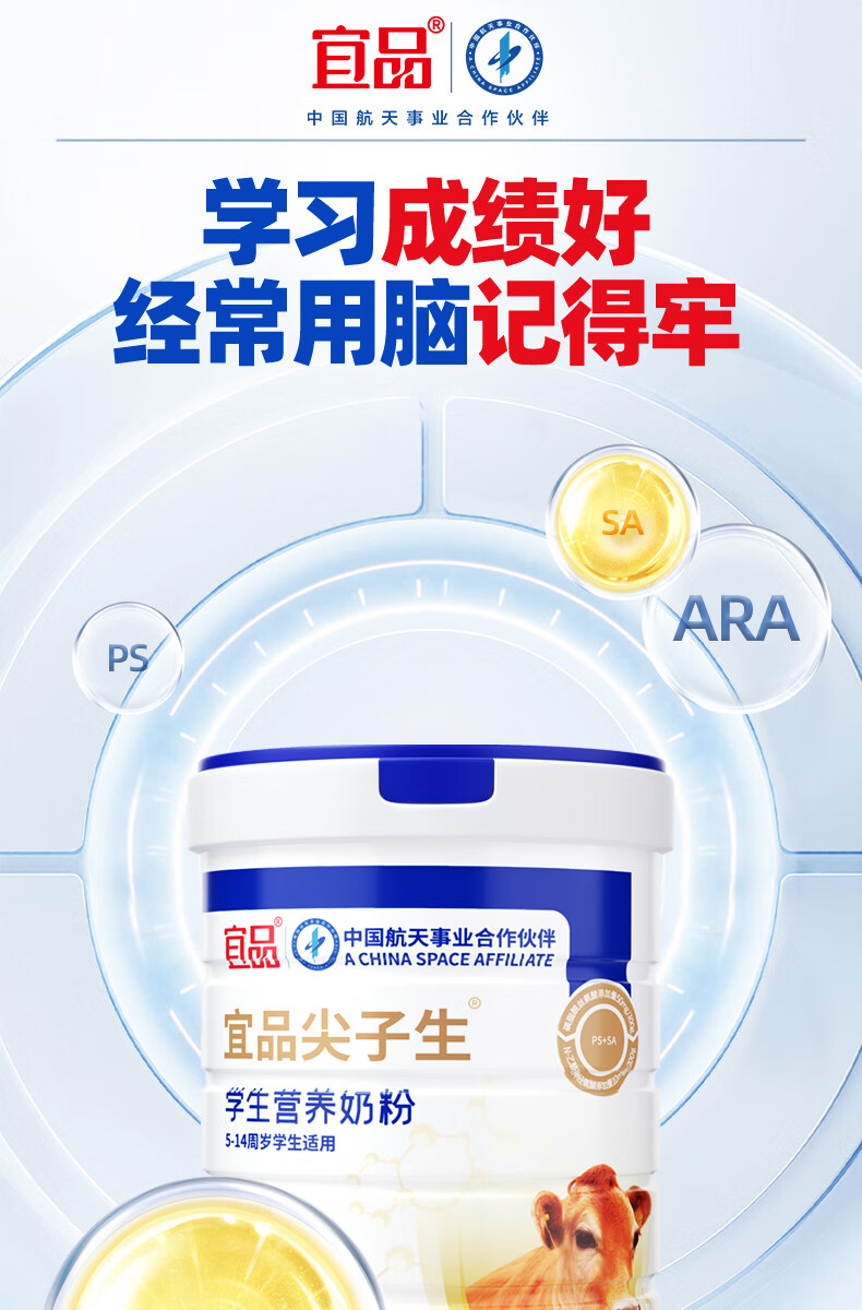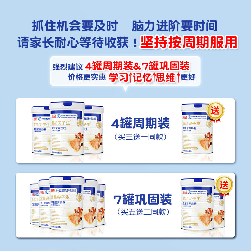 宜品尖子生学生奶粉儿童青少年DHA神经酸可配补脑益智成长高钙奶粉 脑力黑科技4罐【升学备考 记忆满分】