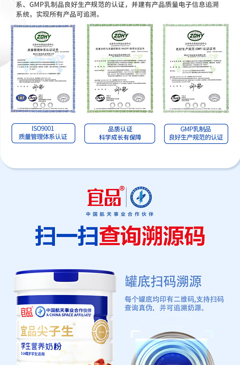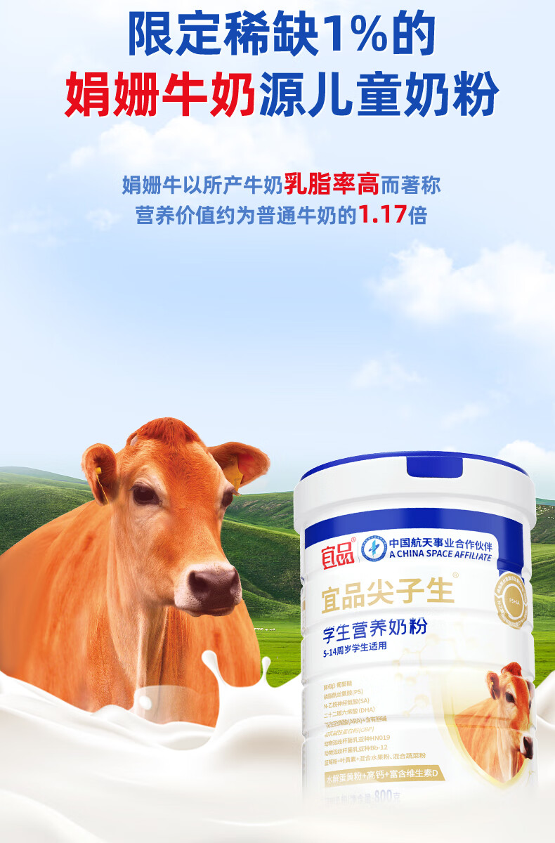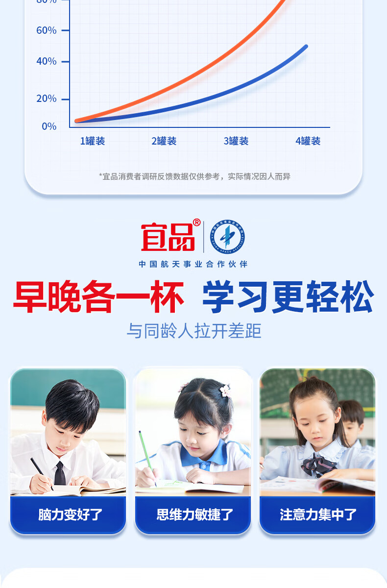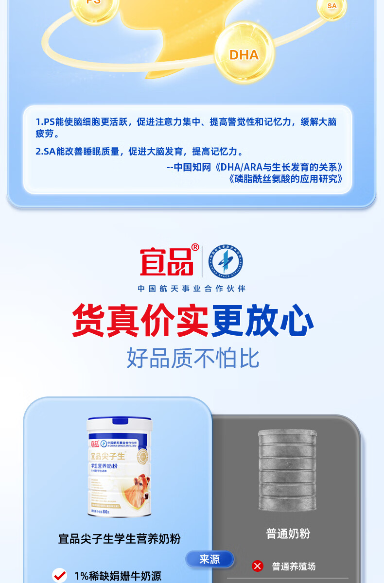 宜品尖子生学生奶粉儿童青少年DHA神经酸可配补脑益智成长高钙奶粉 脑力黑科技4罐【升学备考 记忆满分】