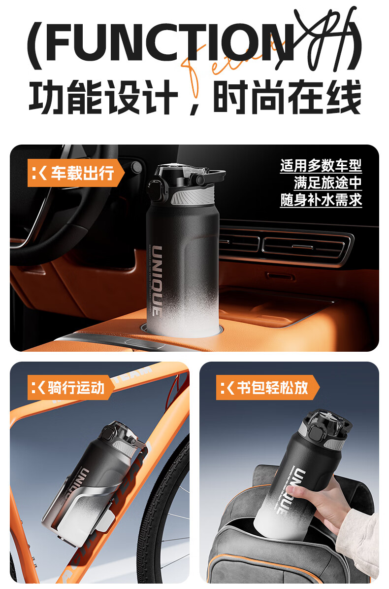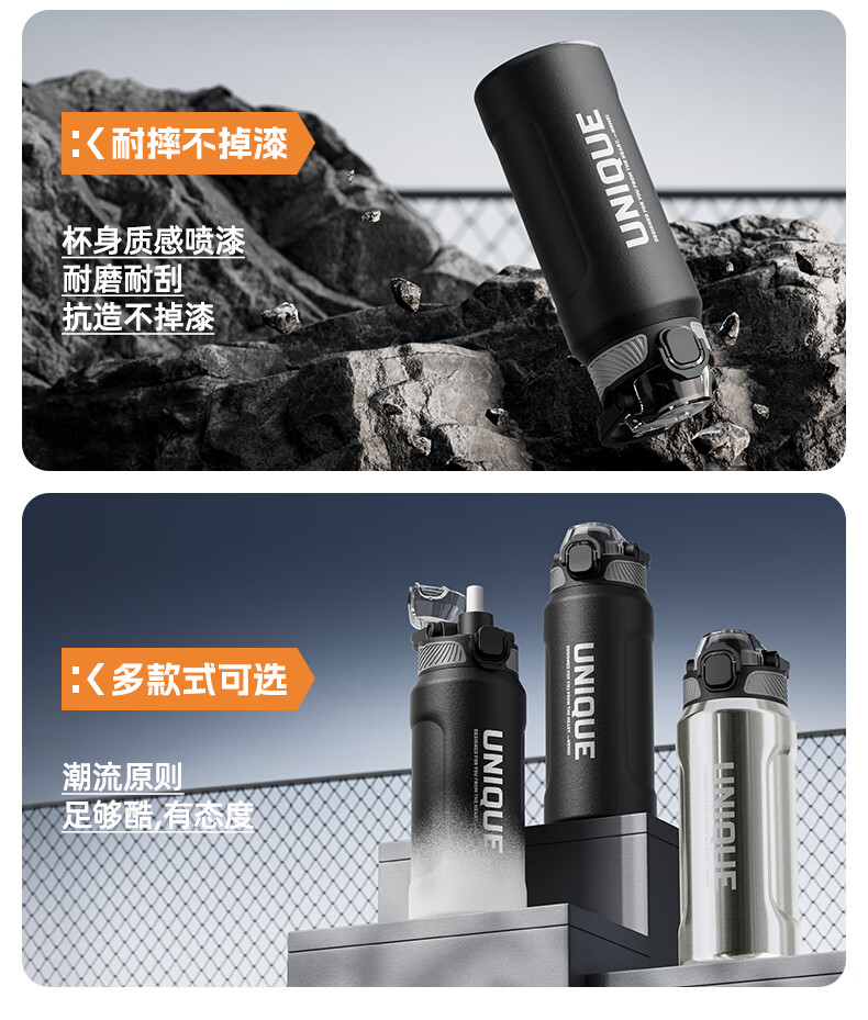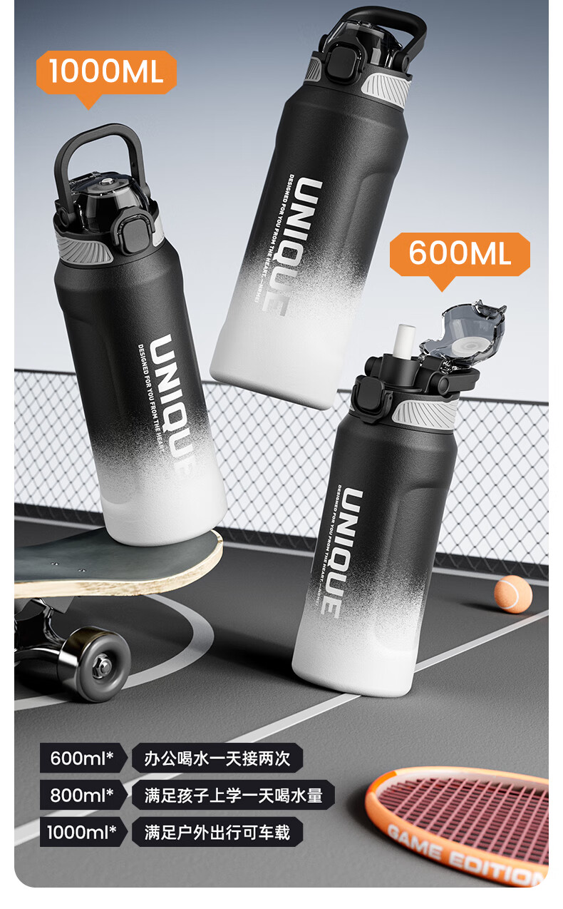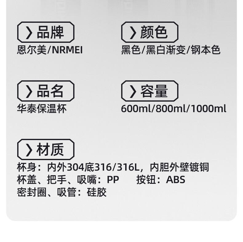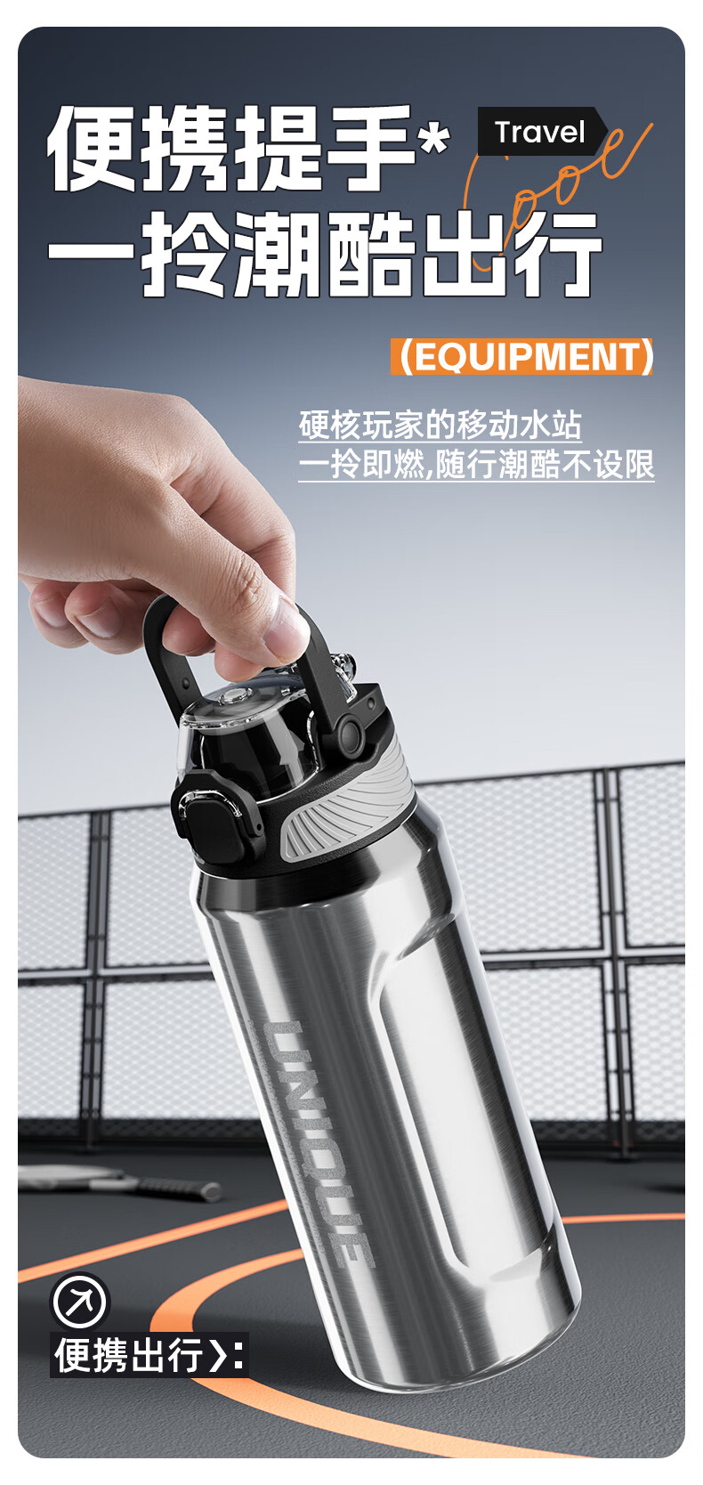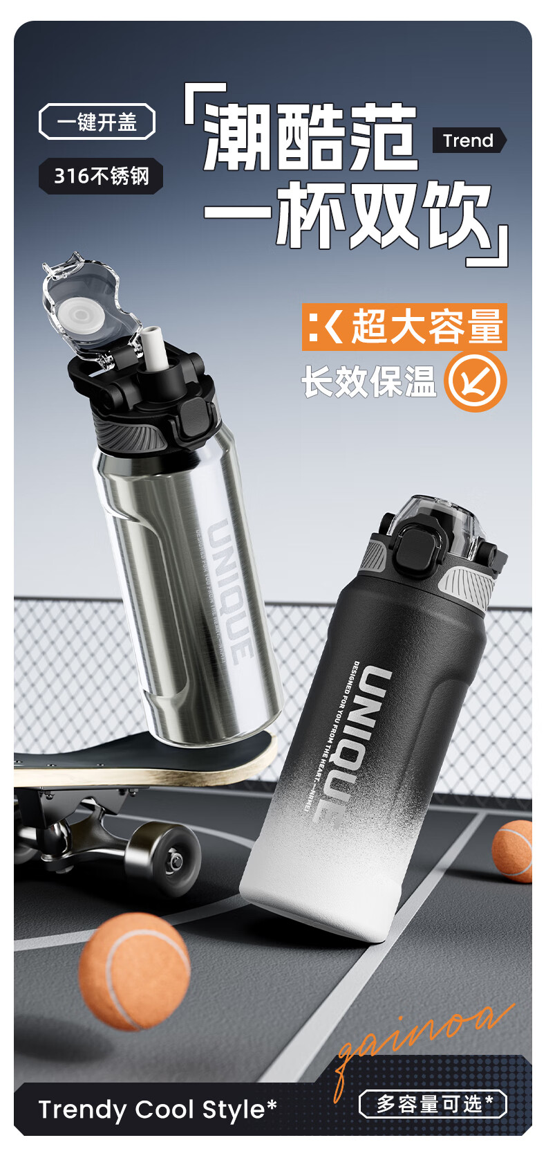 恩尔美(nRMEi)保温杯大容量男款初高中学生上学专用316运动便携式吸管水杯子壶 渐变色800ml【吸管+提手+弹盖】