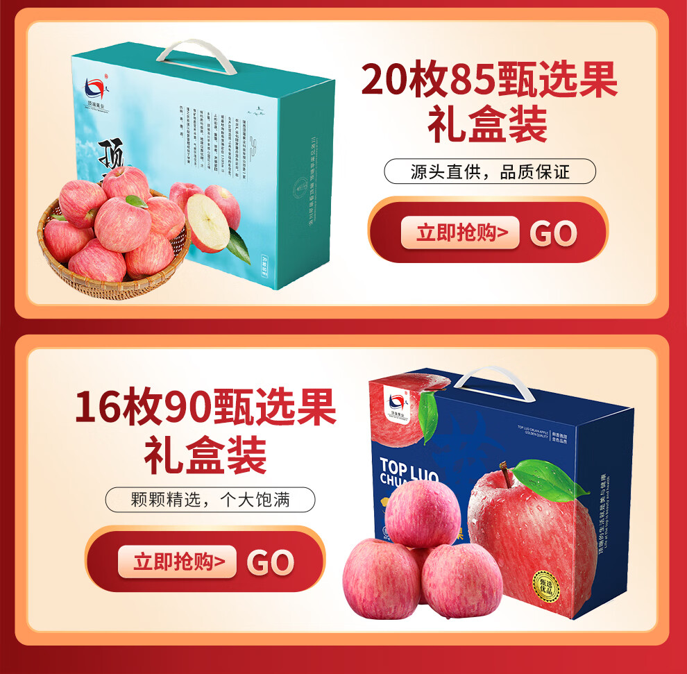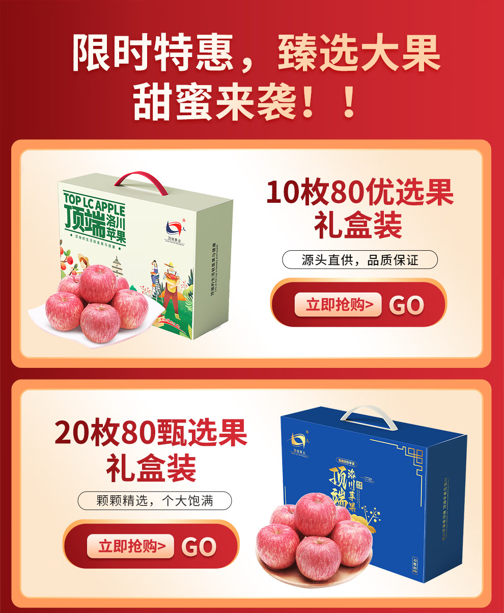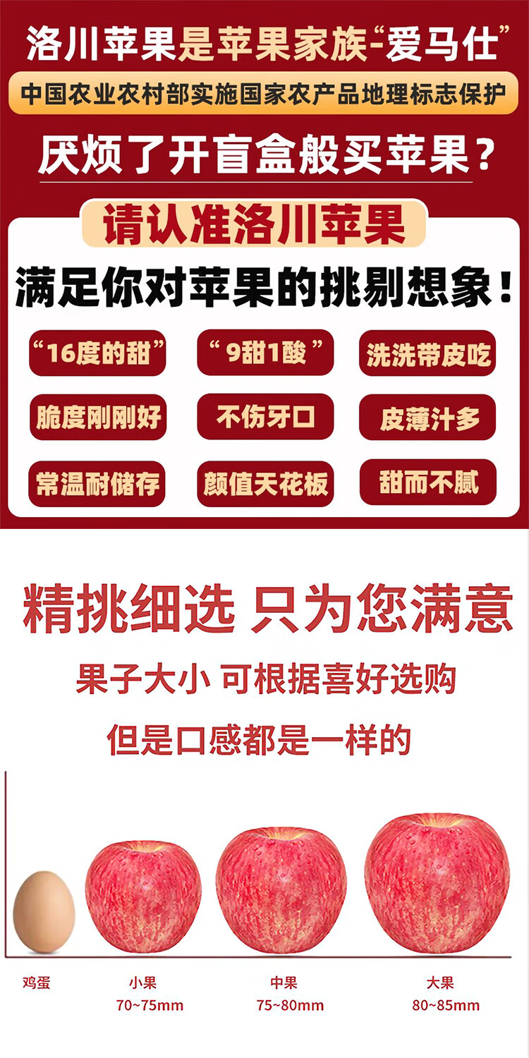 洛川苹果陕西延安特产红富士时令苹果水果礼盒送苹果生鲜新鲜脆甜整箱批发 10斤大果80-85mm(净重8.5斤)