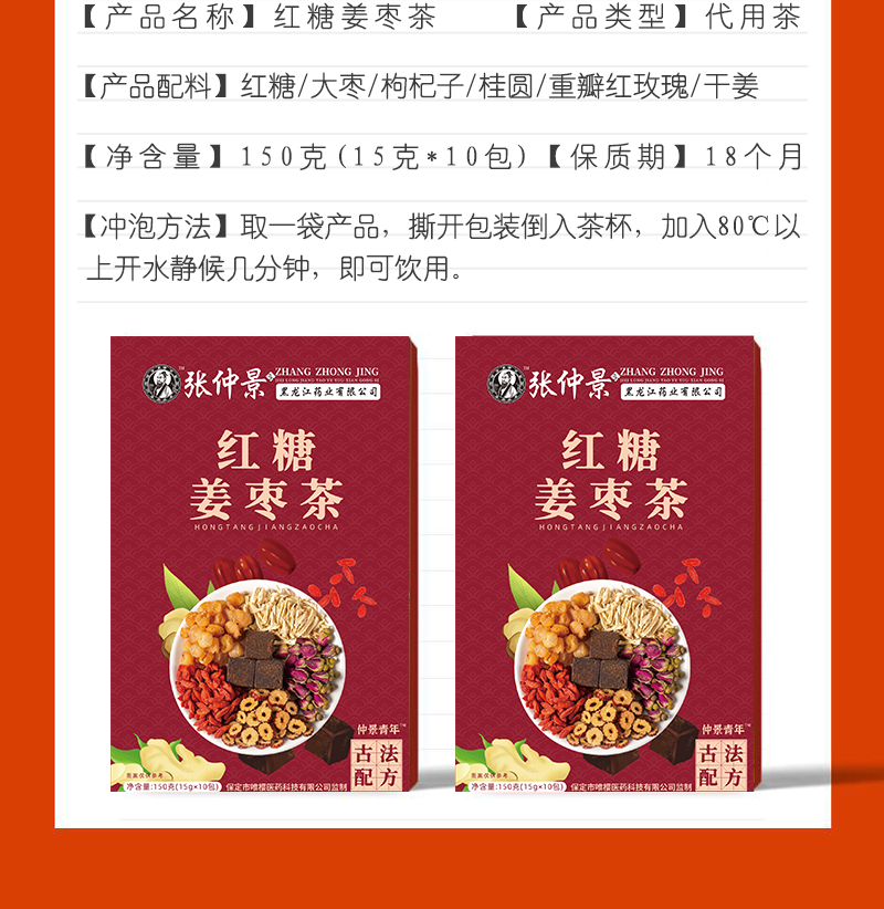 仲景青年红糖姜枣茶枸杞红枣玫瑰桂圆生姜女士大姨妈茶原料包红枣茶送女友养生茶独立小包装多宝茶古法红糖 2盒装