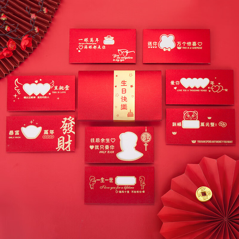 温庭抖音爆款新品七夕镂空创意红包磨砂个性红包520情人节红包烫金款 磨砂8个装+礼盒-生日快乐