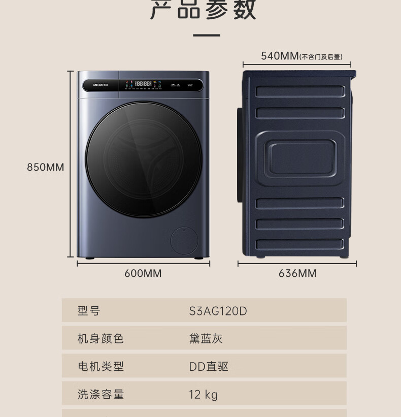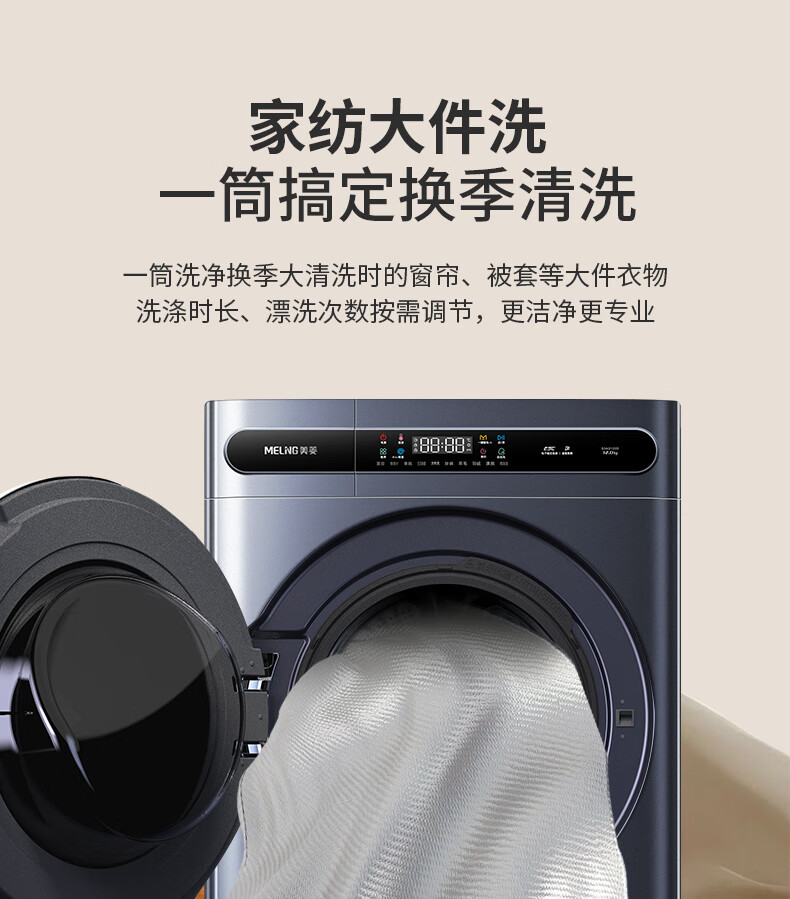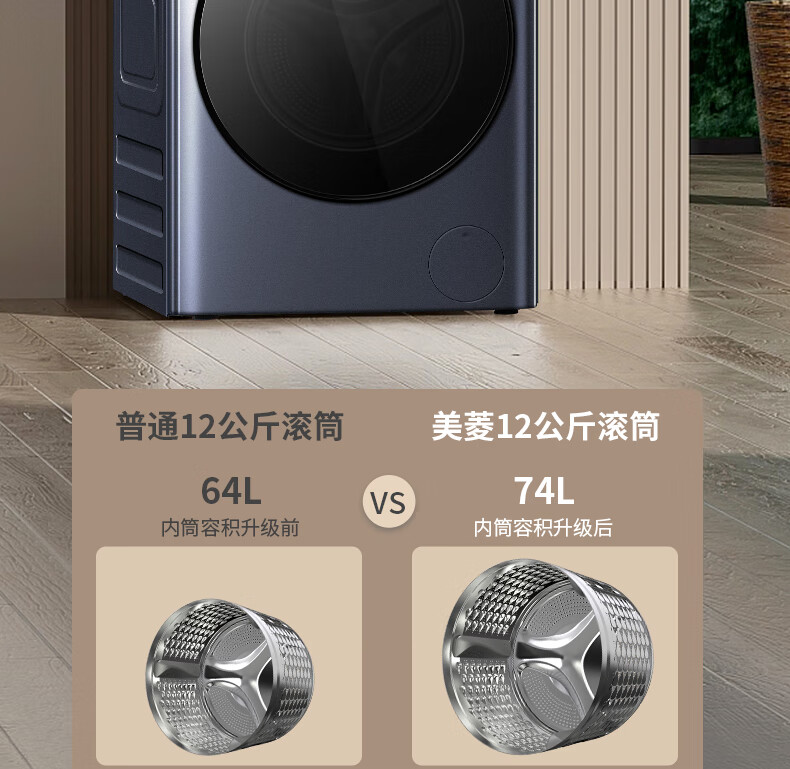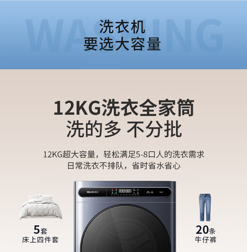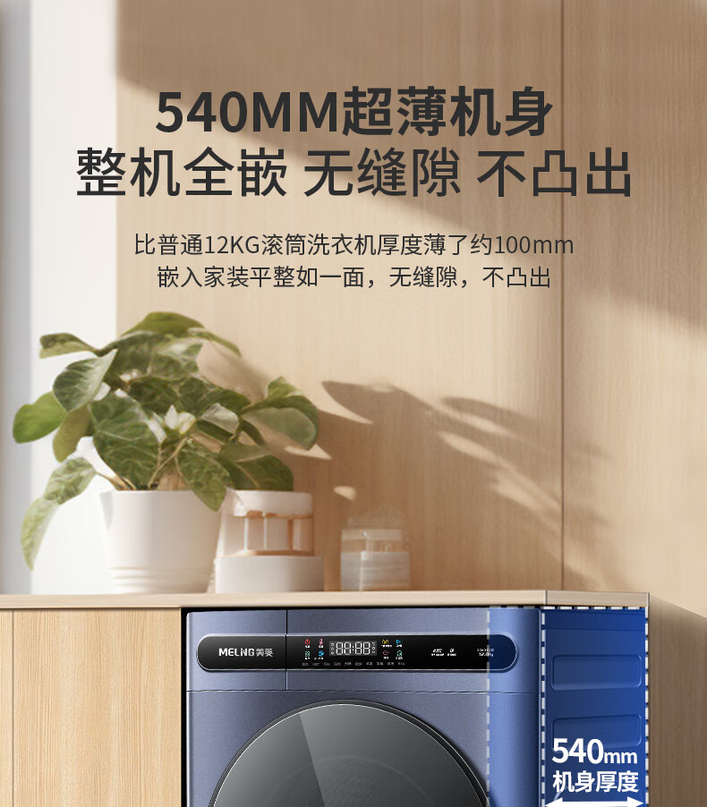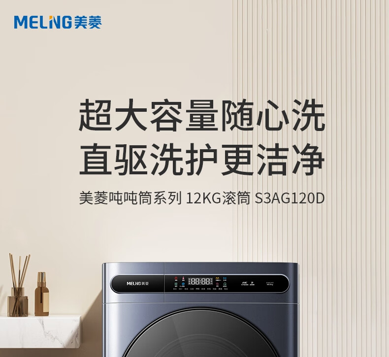 美菱(MeiLing)滚筒洗衣机全自动超薄 12公斤大容量直驱 1.1高洗净比 租房民宿公寓 S3AG120D 送装一体国家补贴
