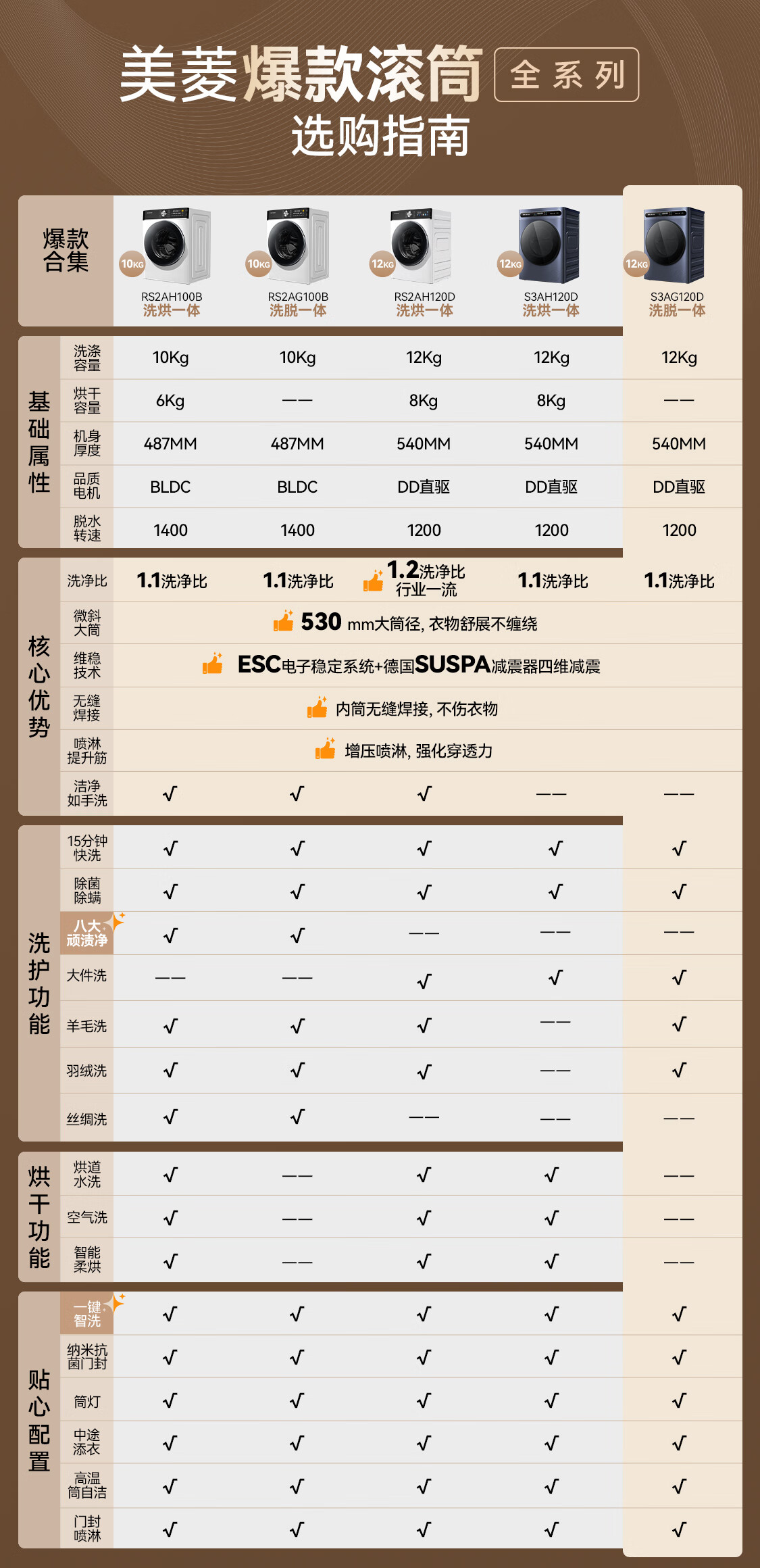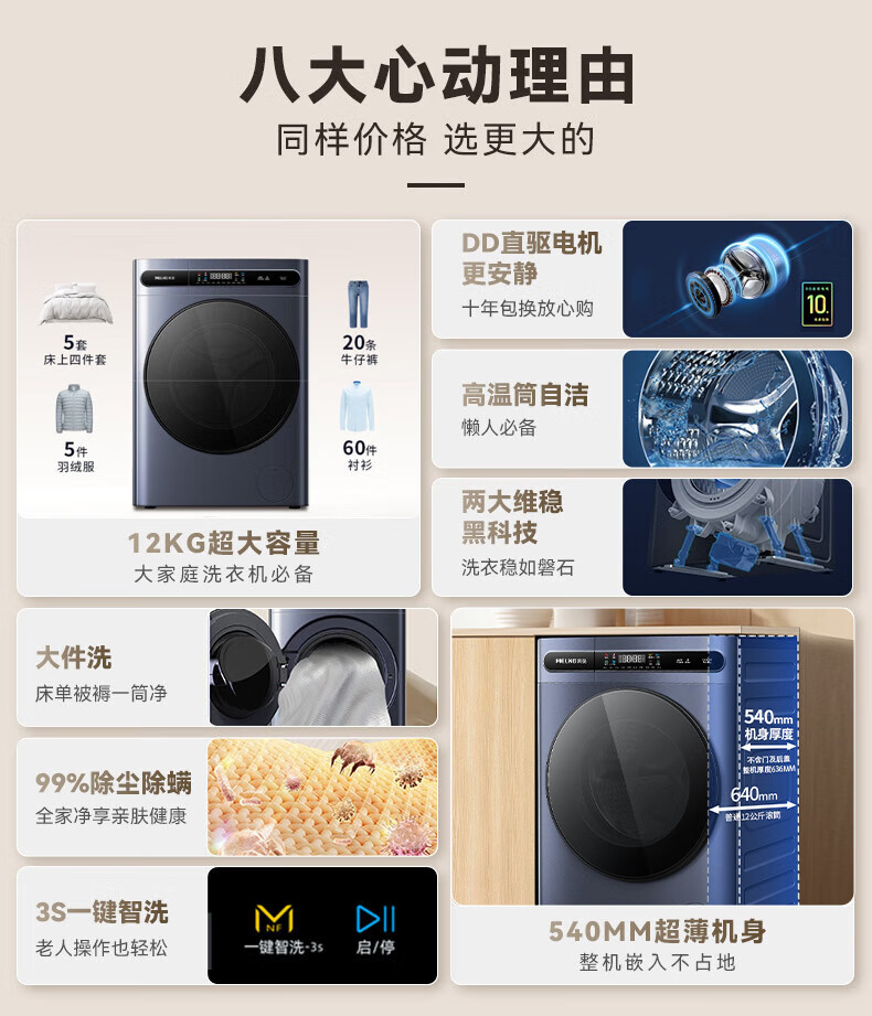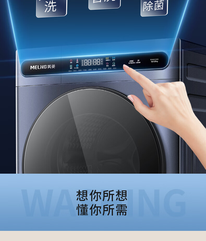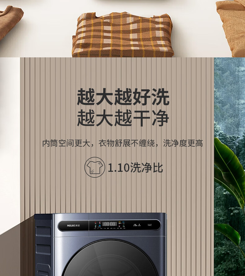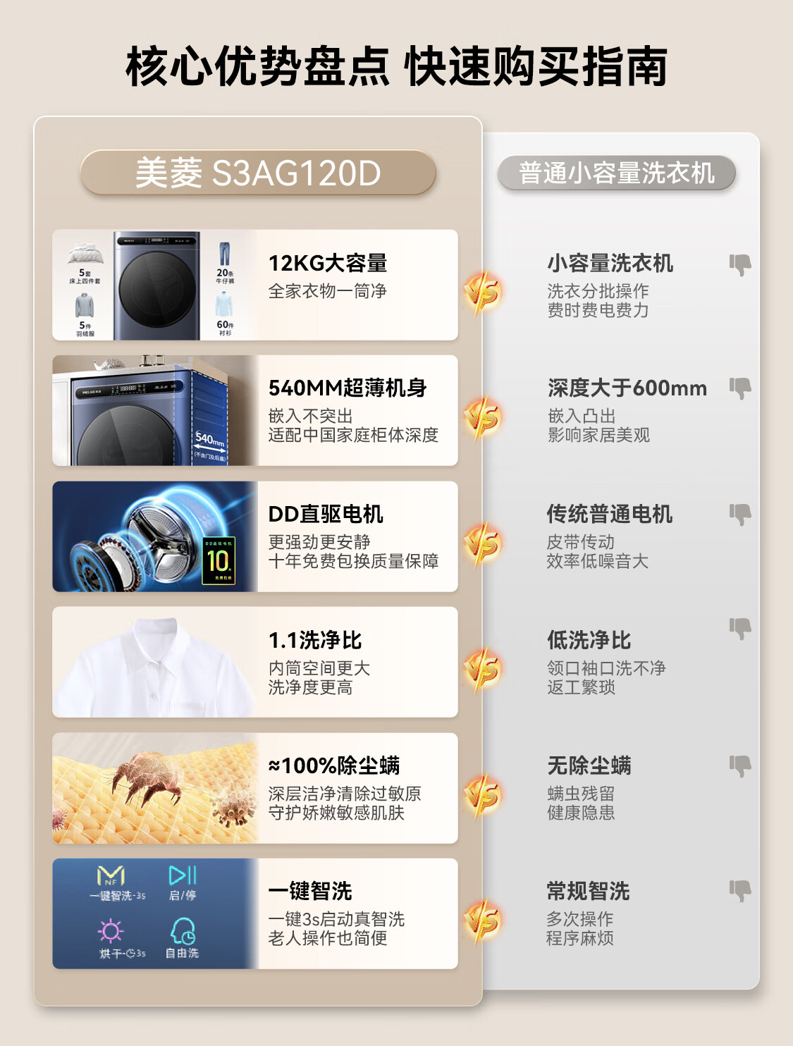 美菱(MeiLing)滚筒洗衣机全自动超薄 12公斤大容量直驱 1.1高洗净比 租房民宿公寓 S3AG120D 送装一体国家补贴
