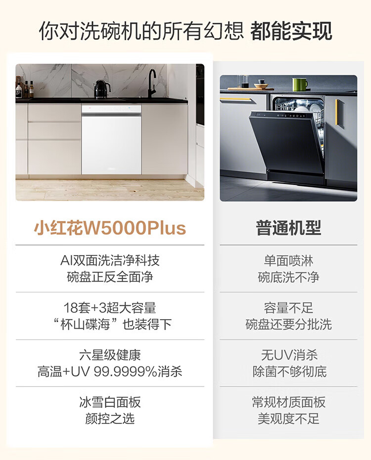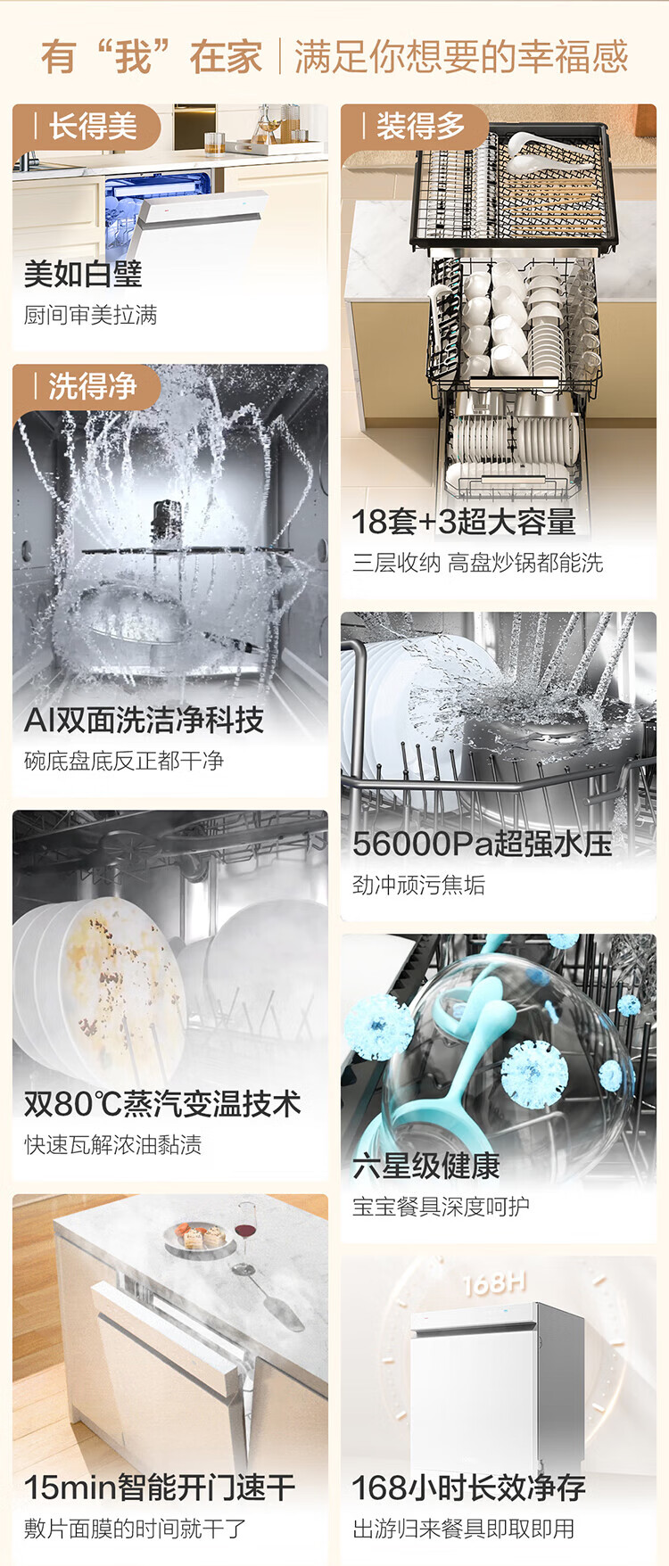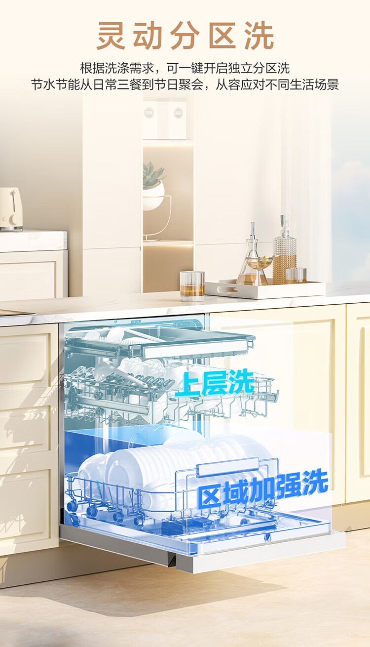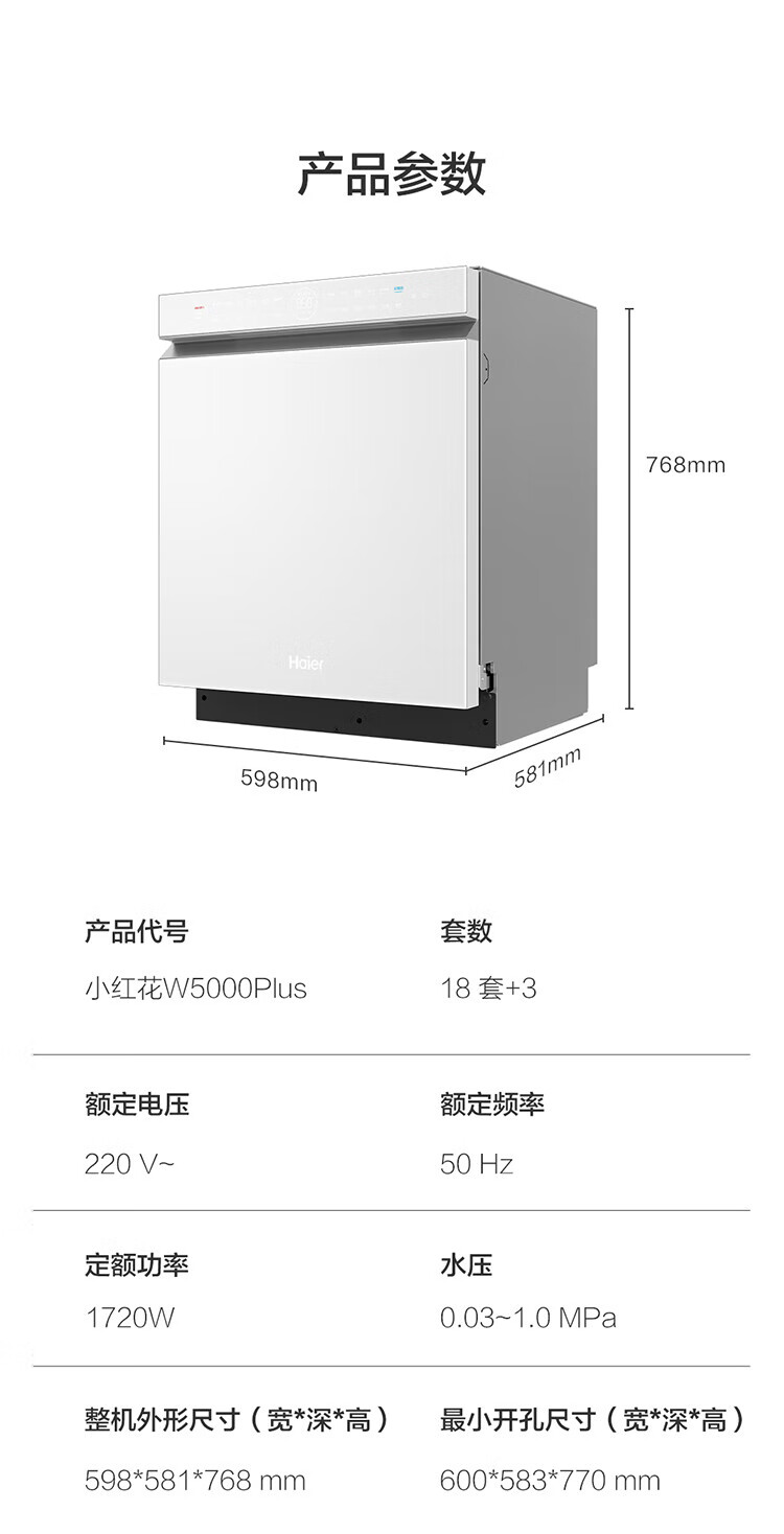 海尔(Haier)嵌入式洗碗机W5000Plus白 升级18套+3大容量双面洗 UV双重除菌 双80℃热风烘干碗柜 【AI双面洗】W5000Plus白18套+3大容量