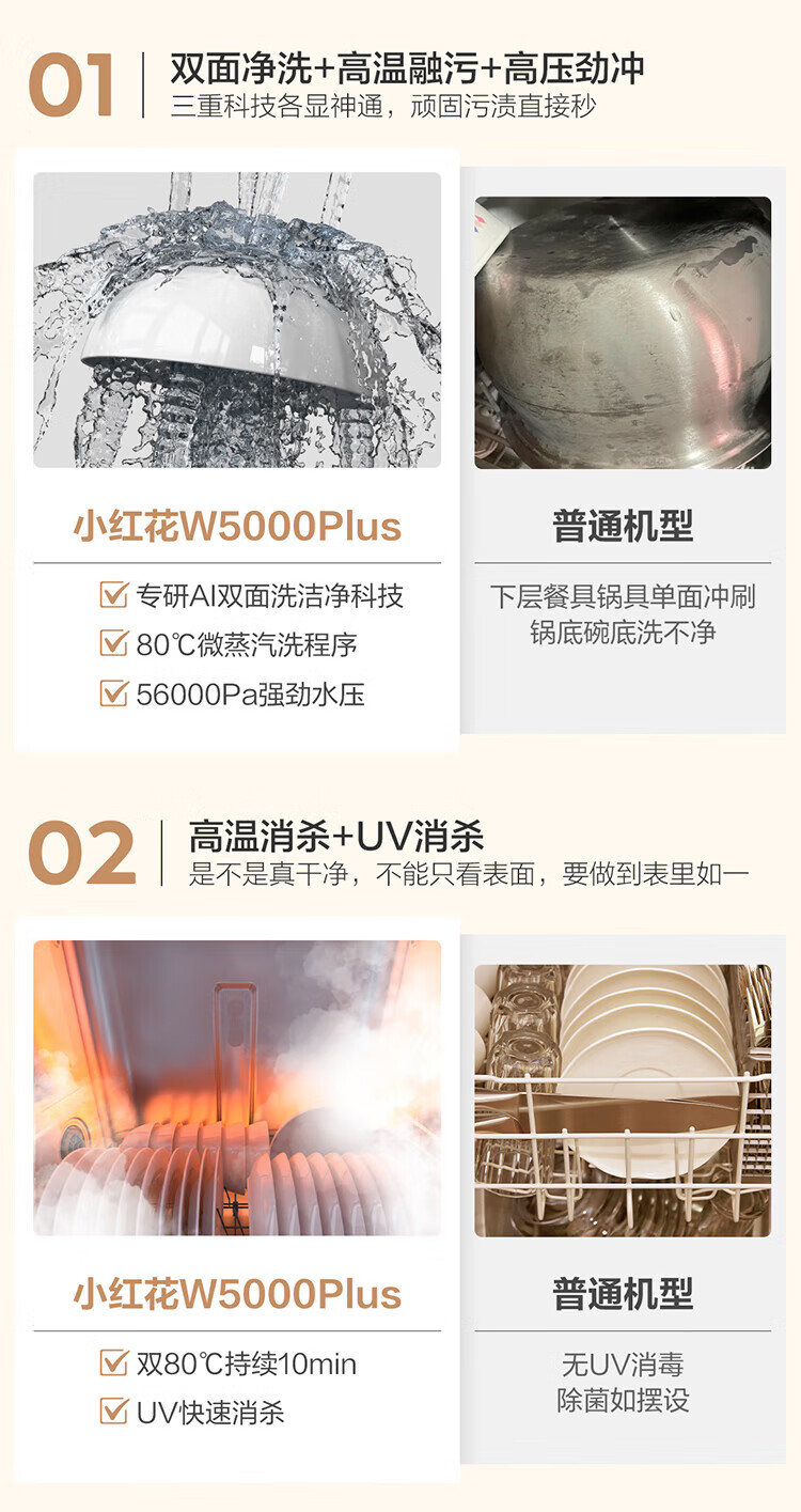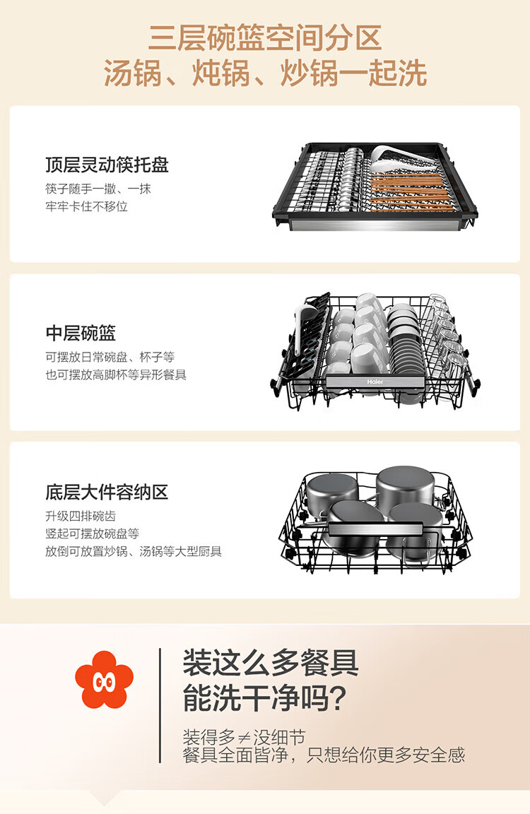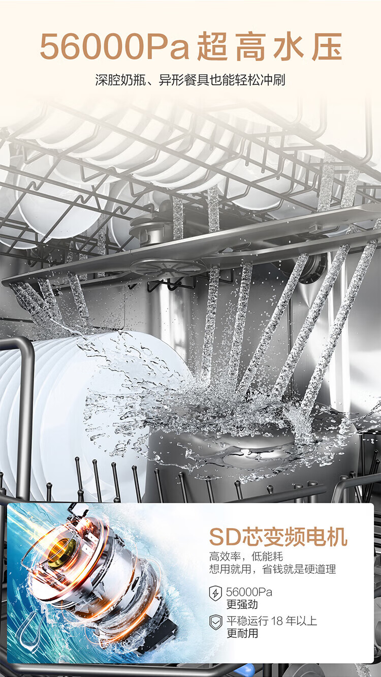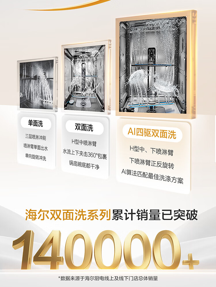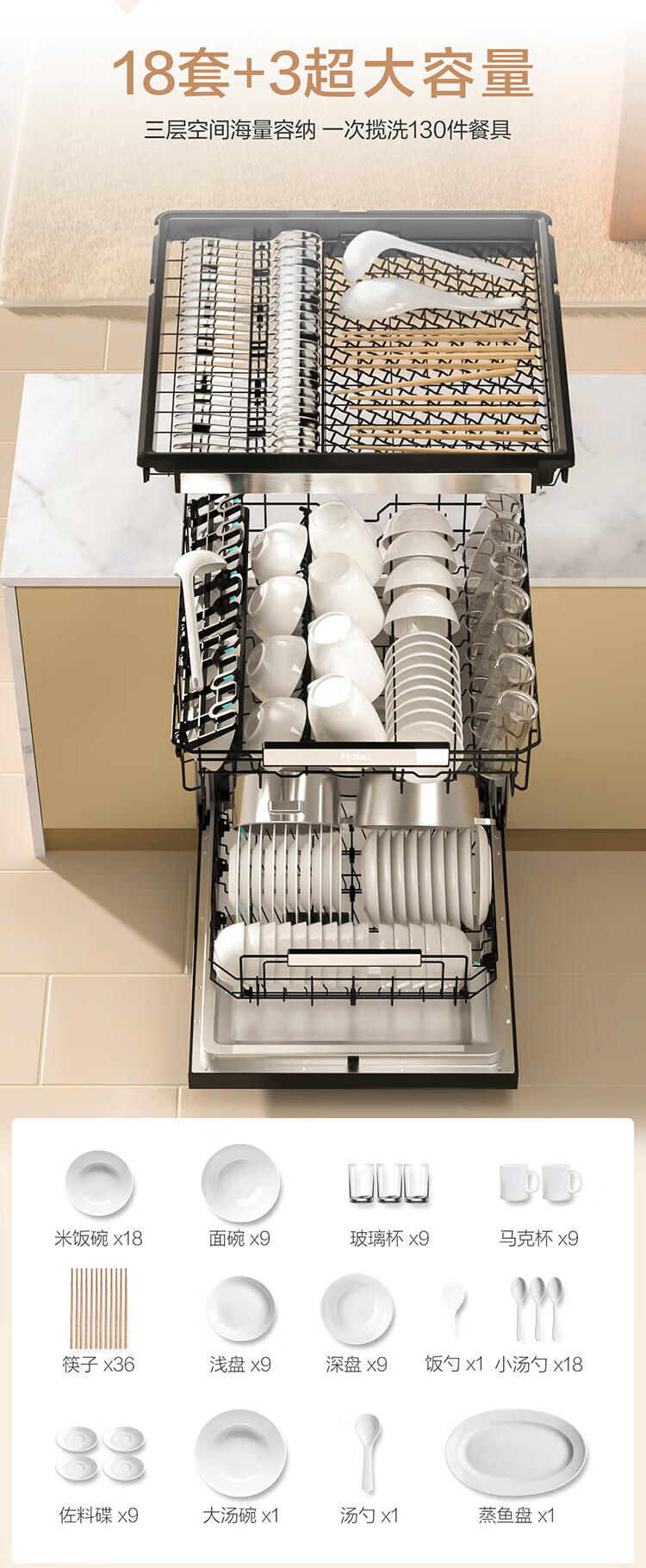 海尔(Haier)嵌入式洗碗机W5000Plus白 升级18套+3大容量双面洗 UV双重除菌 双80℃热风烘干碗柜 【AI双面洗】W5000Plus白18套+3大容量
